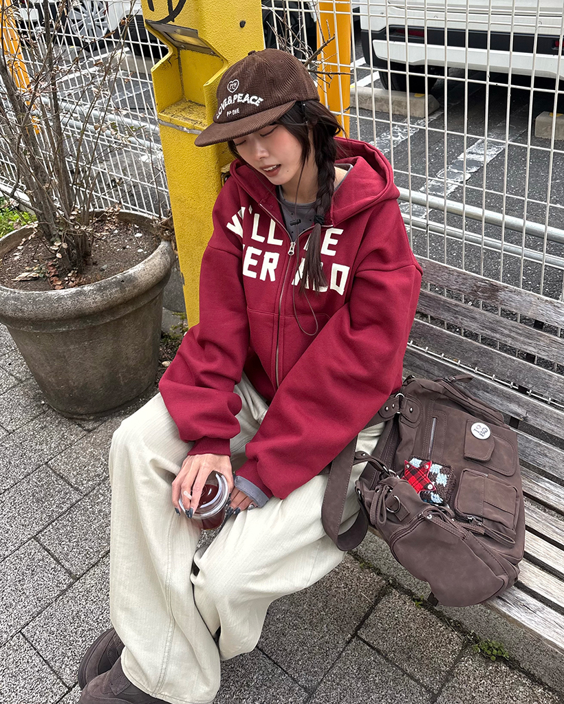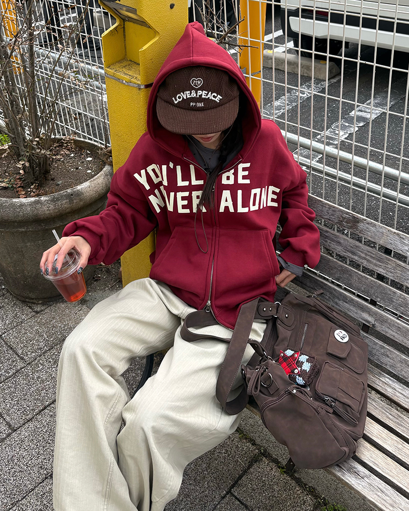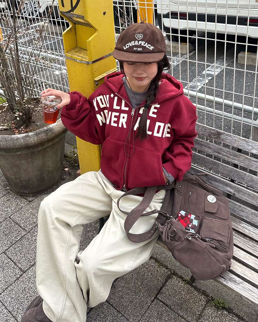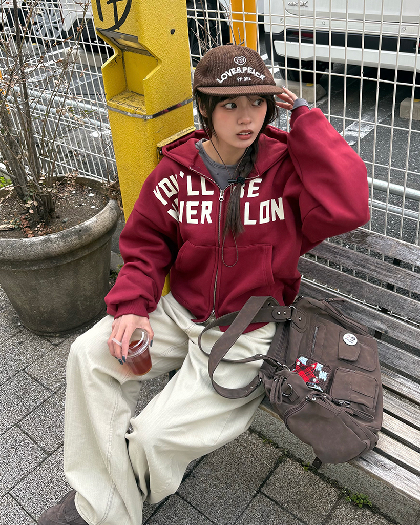 (ユニセックス)レタリングダブルジップ裏起毛パーカー
