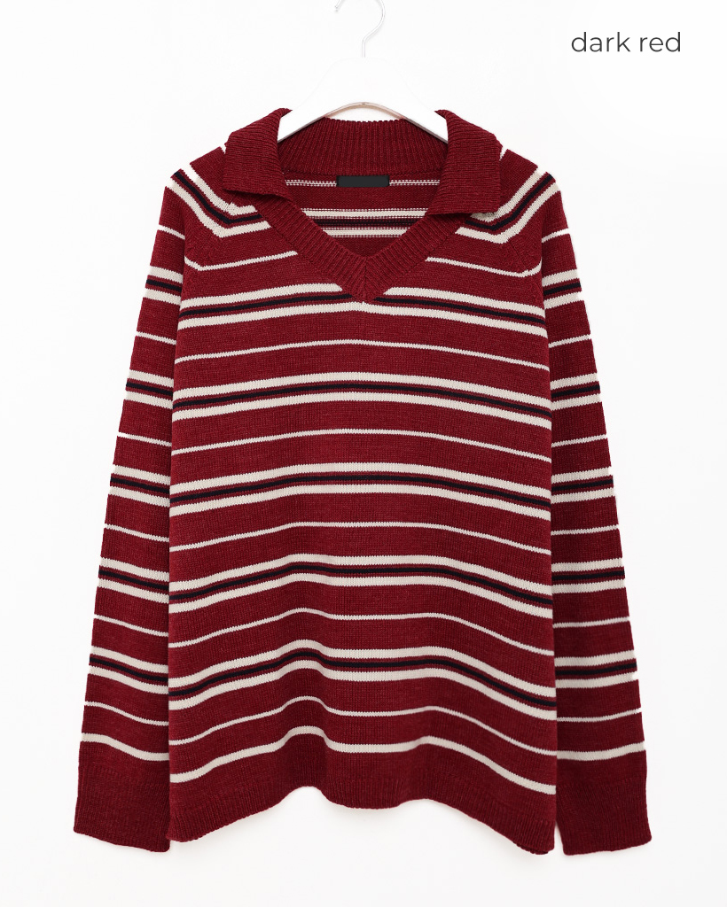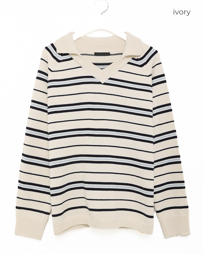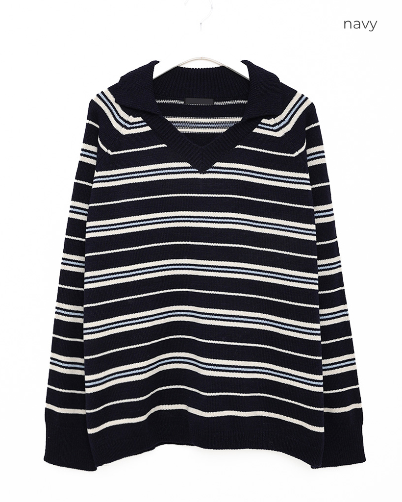 Vネックボーダーニット