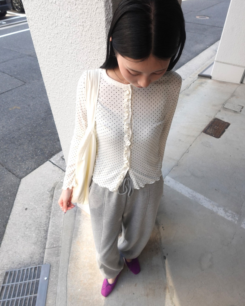 ドットフリルカーディガン