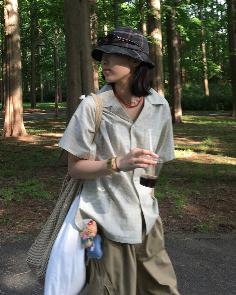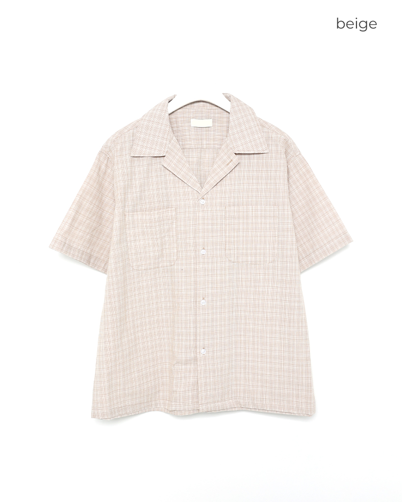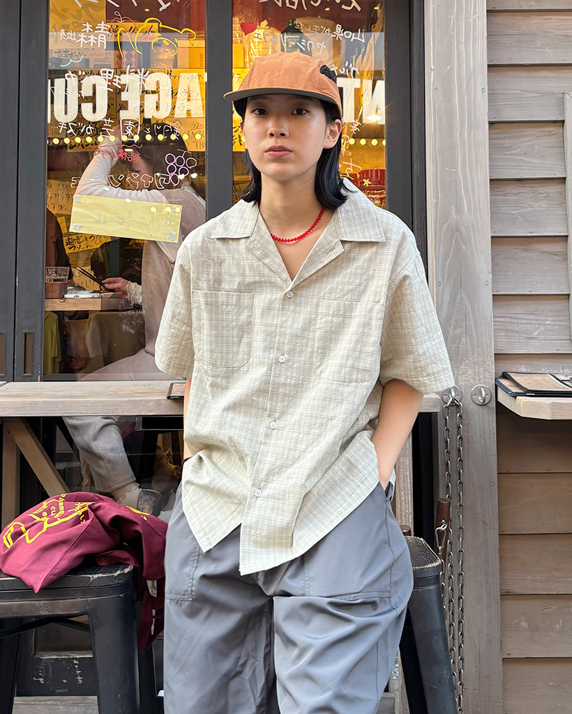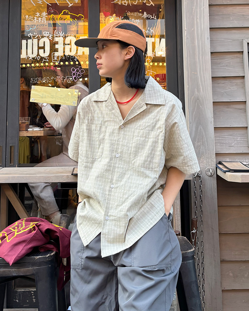 (ユニセックス)ツーポケット半袖チェックシャツ