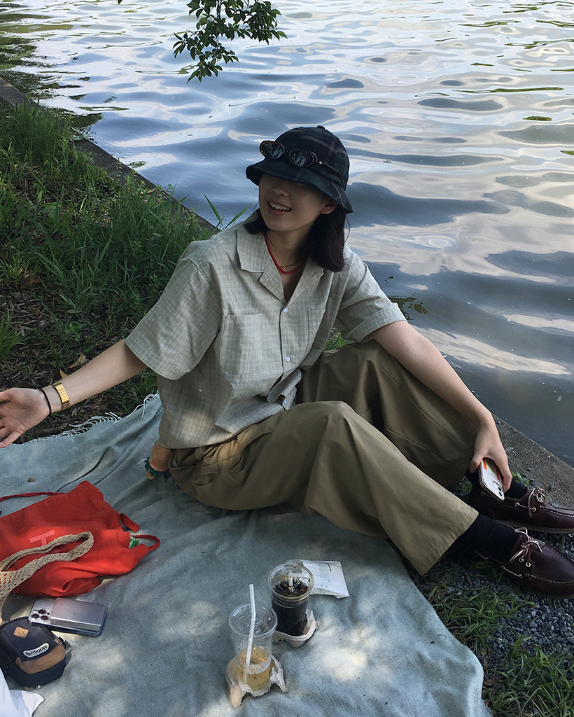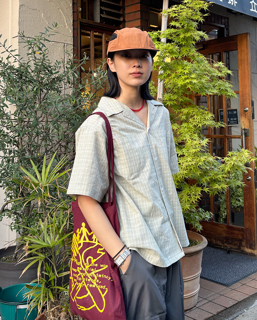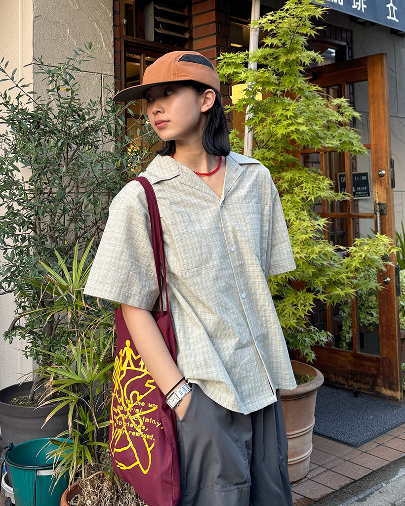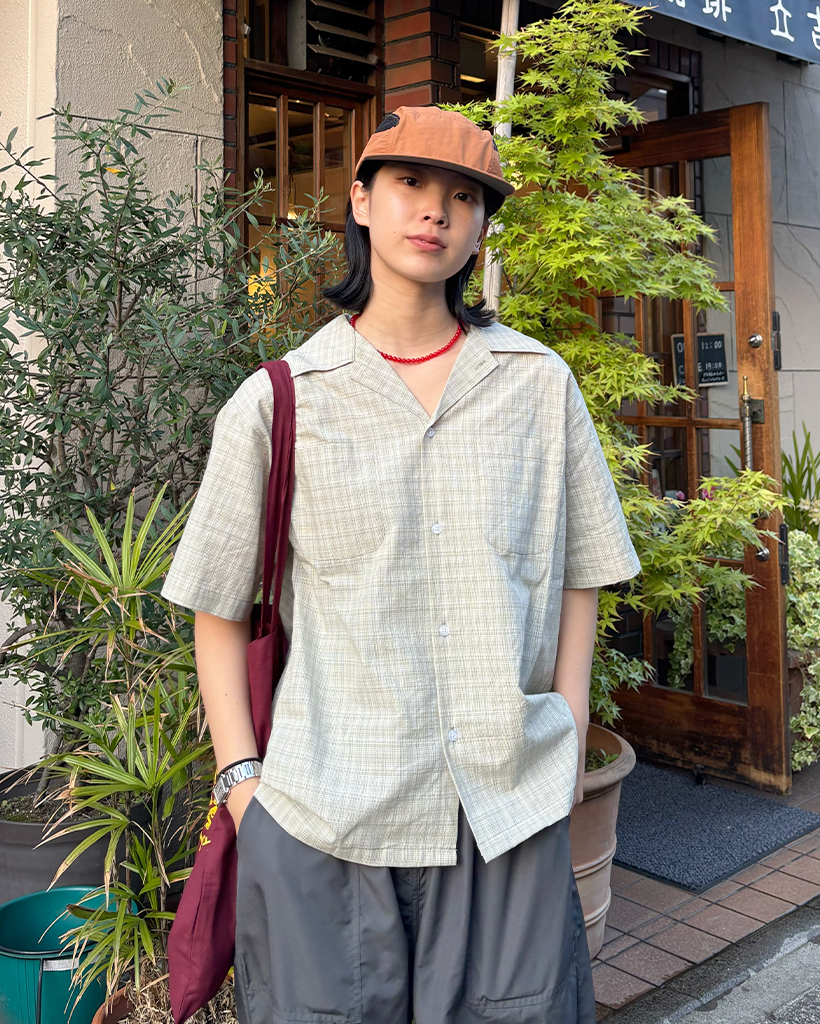(ユニセックス)ツーポケット半袖チェックシャツ
