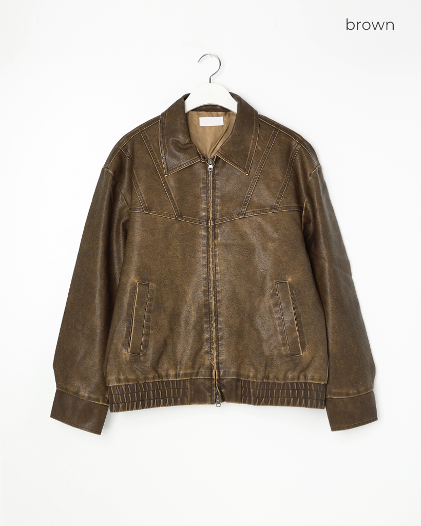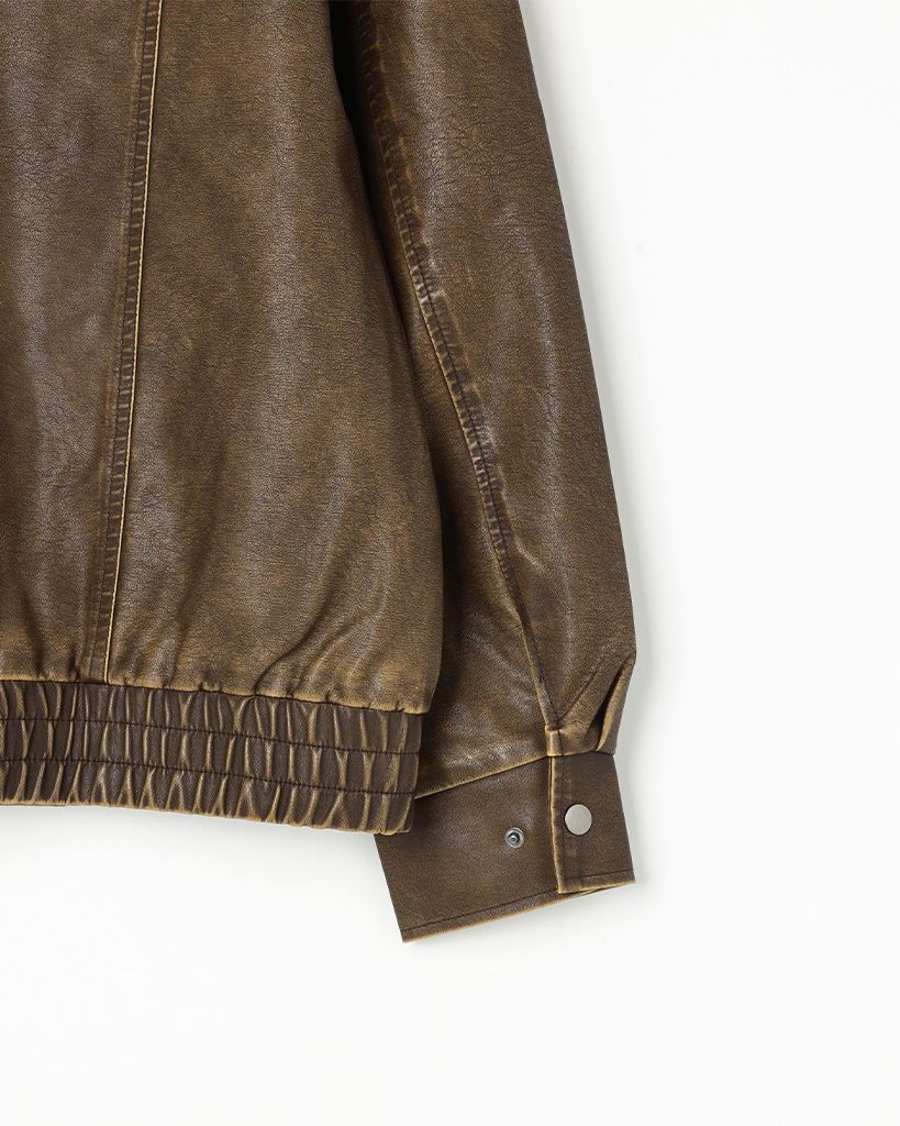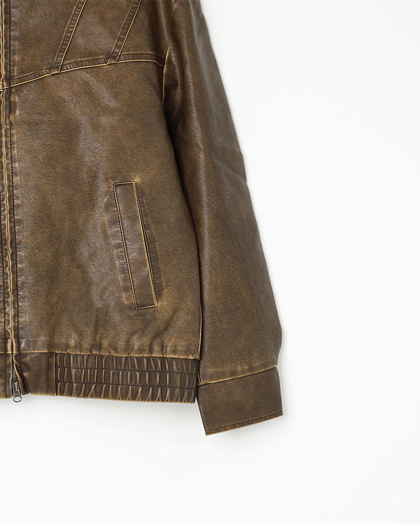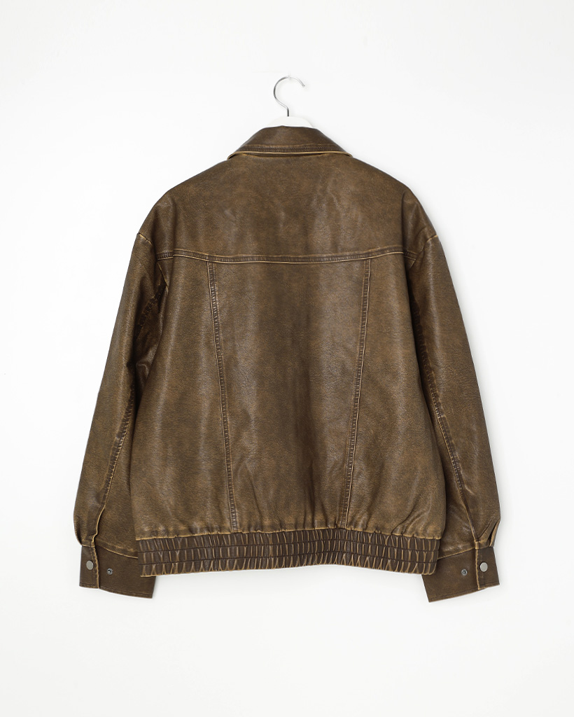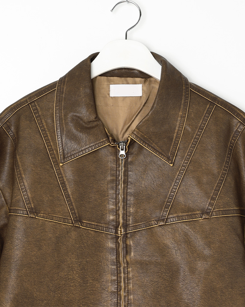 ヴィンテージウォッシュポイントレザーカラージャケット