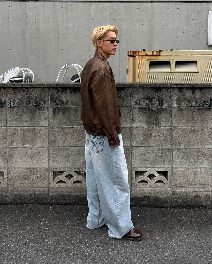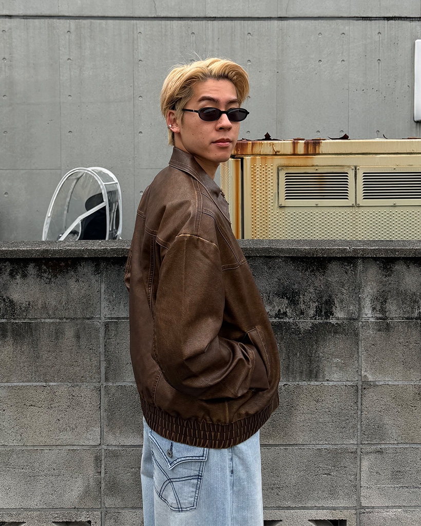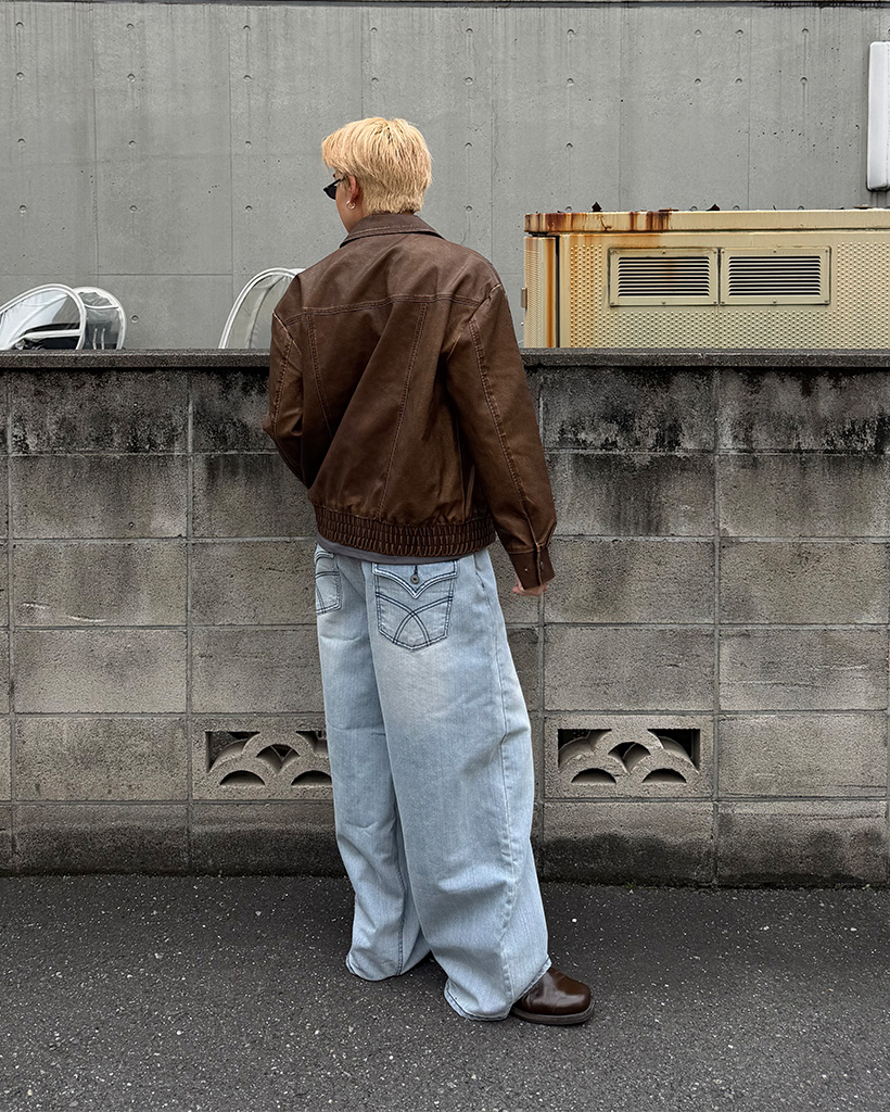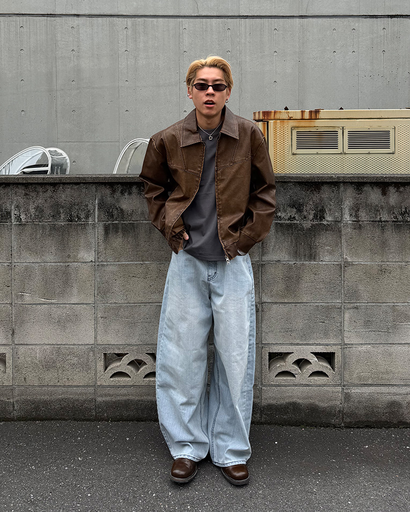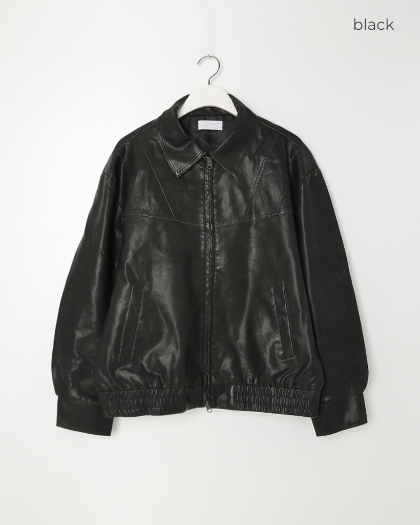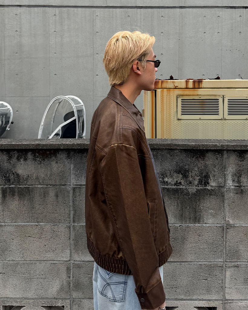 ヴィンテージウォッシュポイントレザーカラージャケット