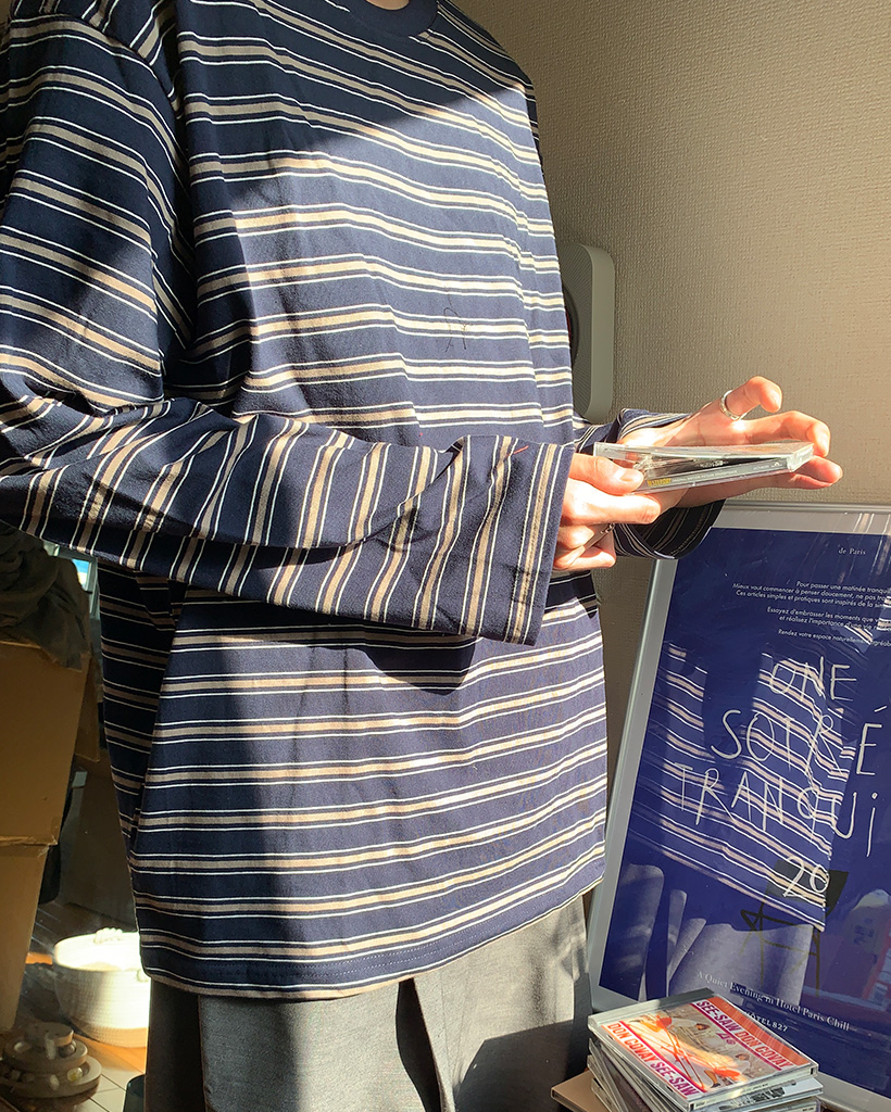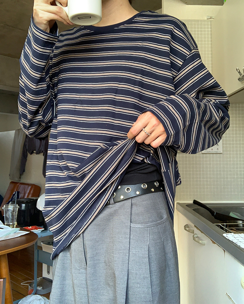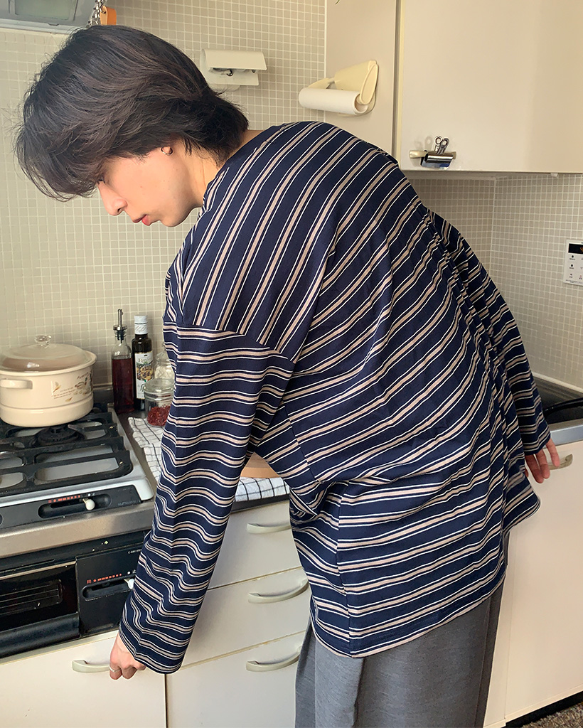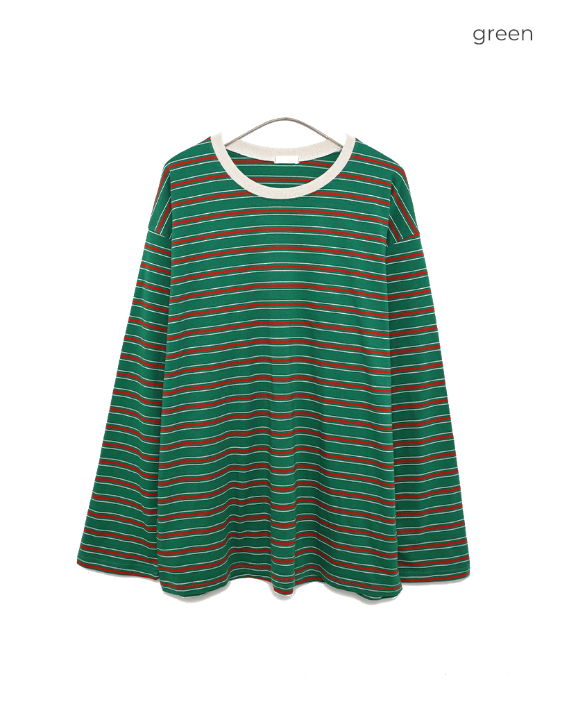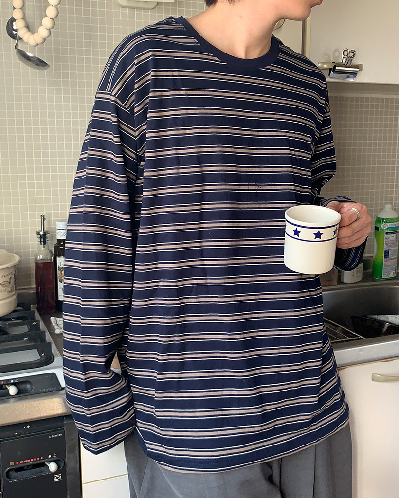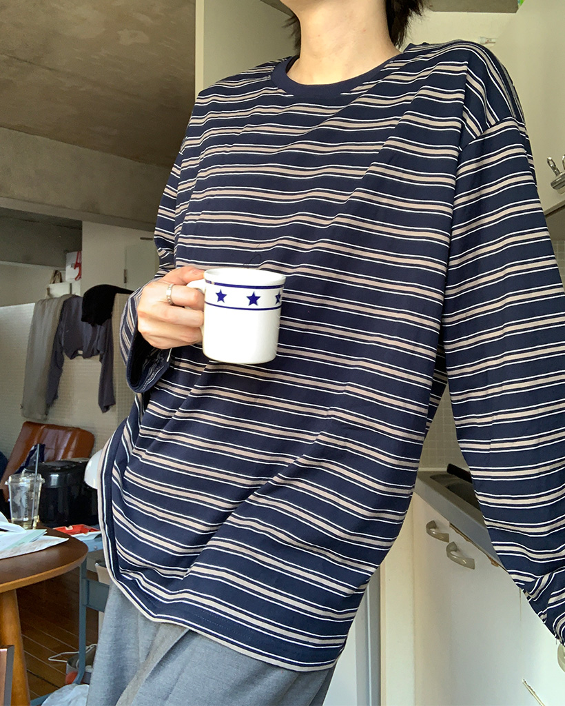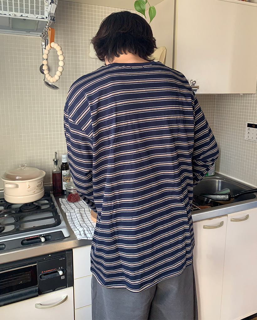 (ユニセックス)ボーダーオーバーフィットTシャツ
