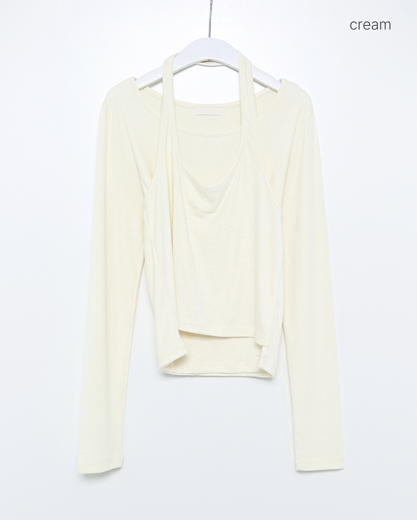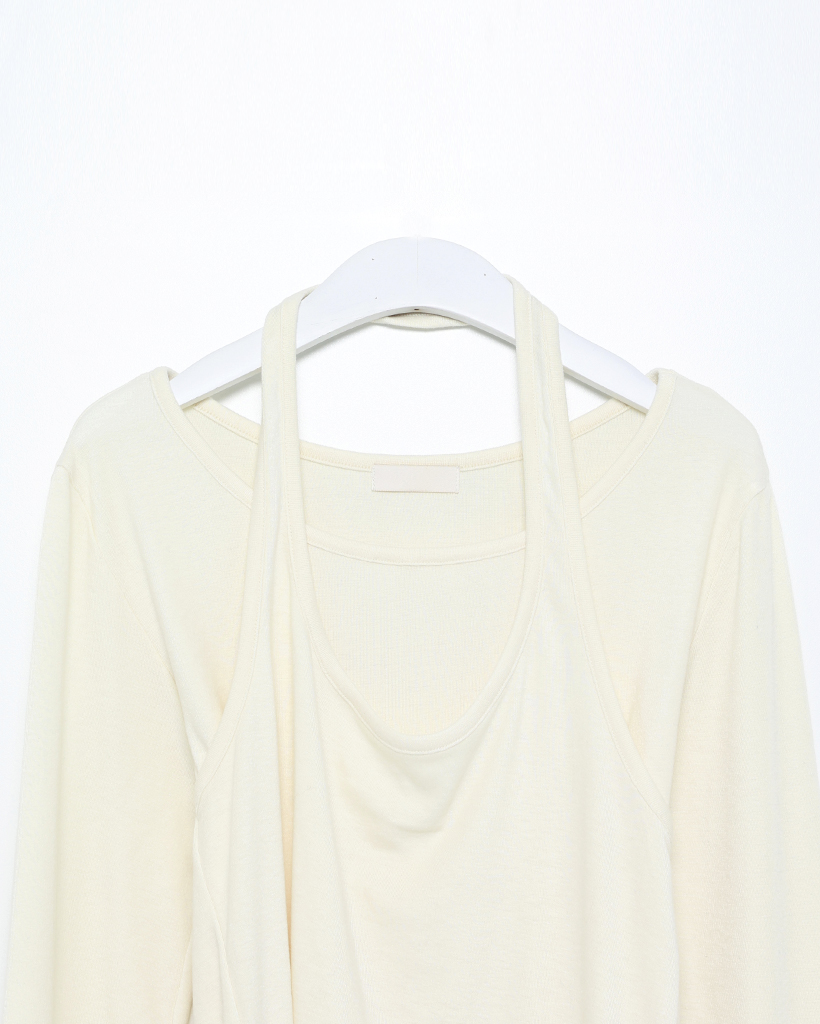 ホルターネックレイヤードスリムロングカットソー