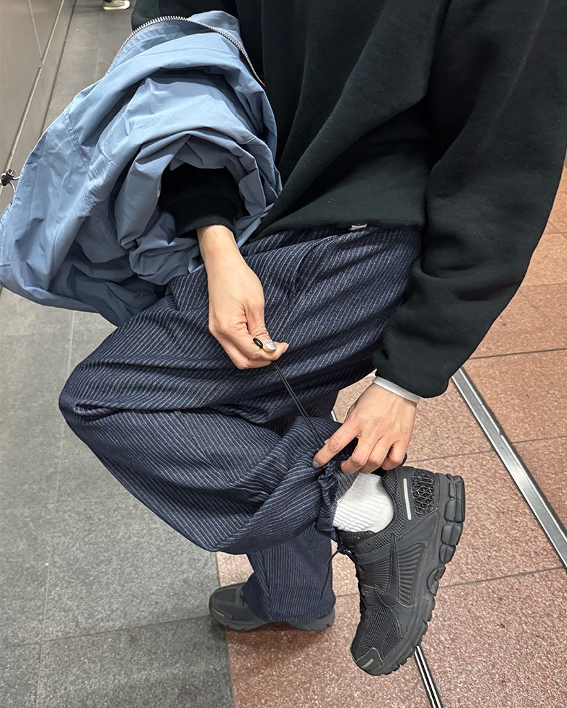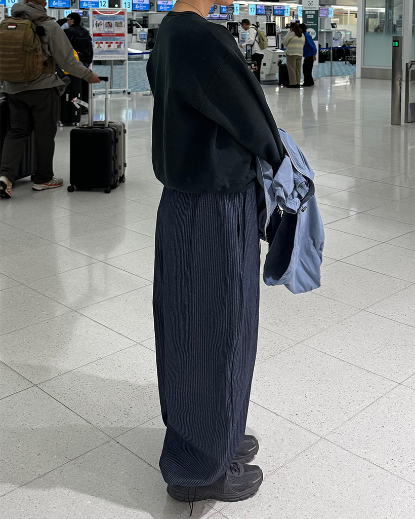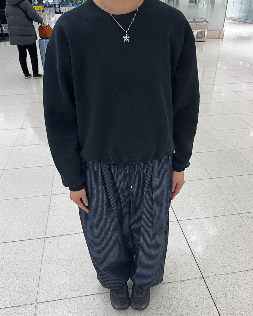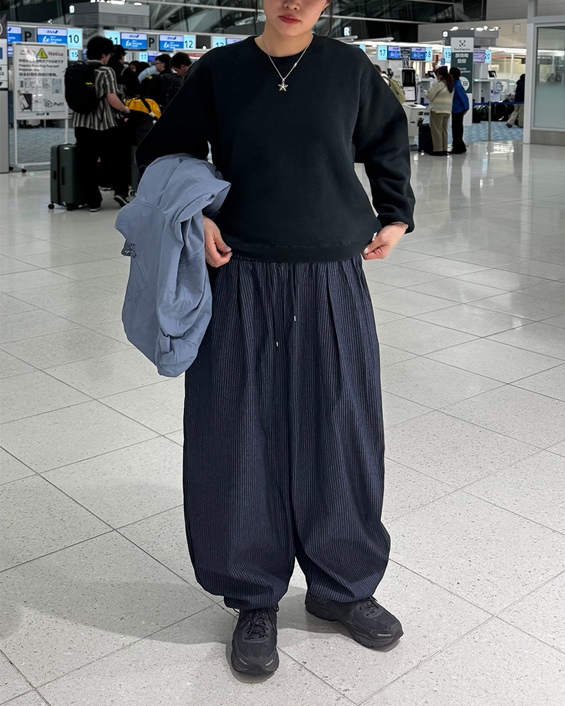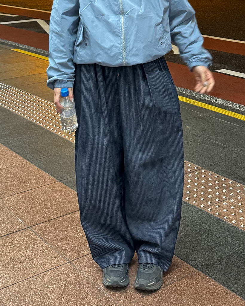 (ユニセックス)ストライプバルーンデニムパンツ