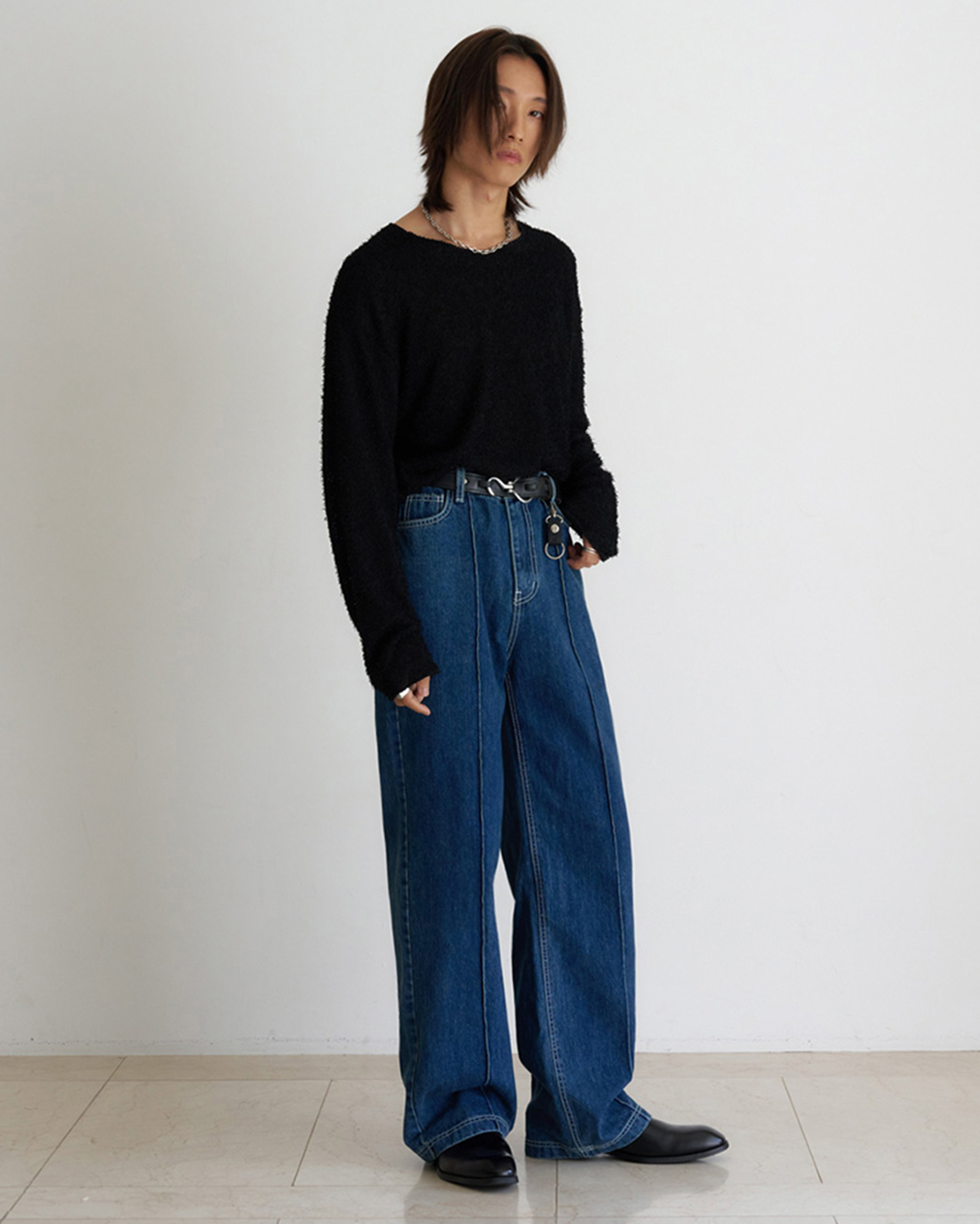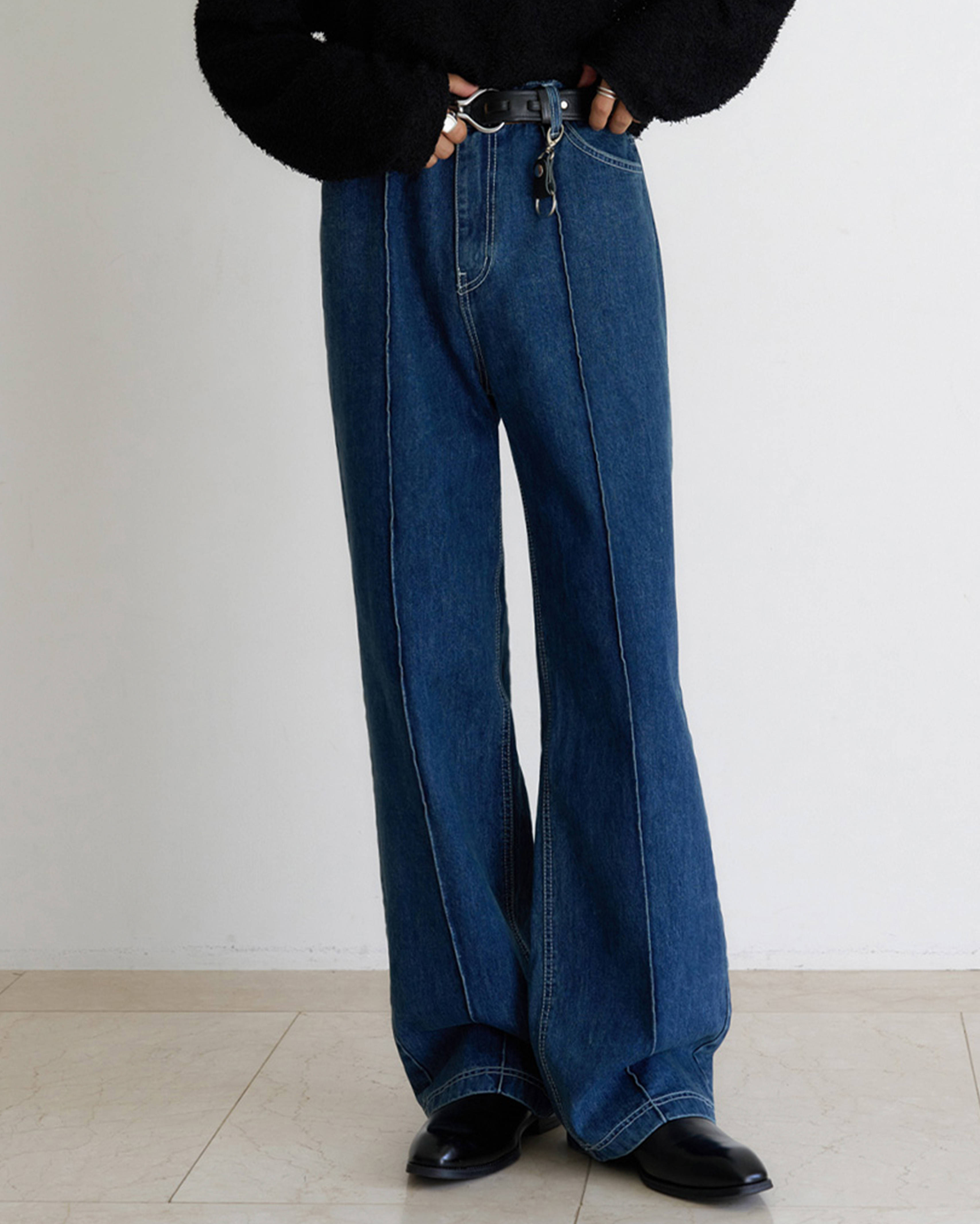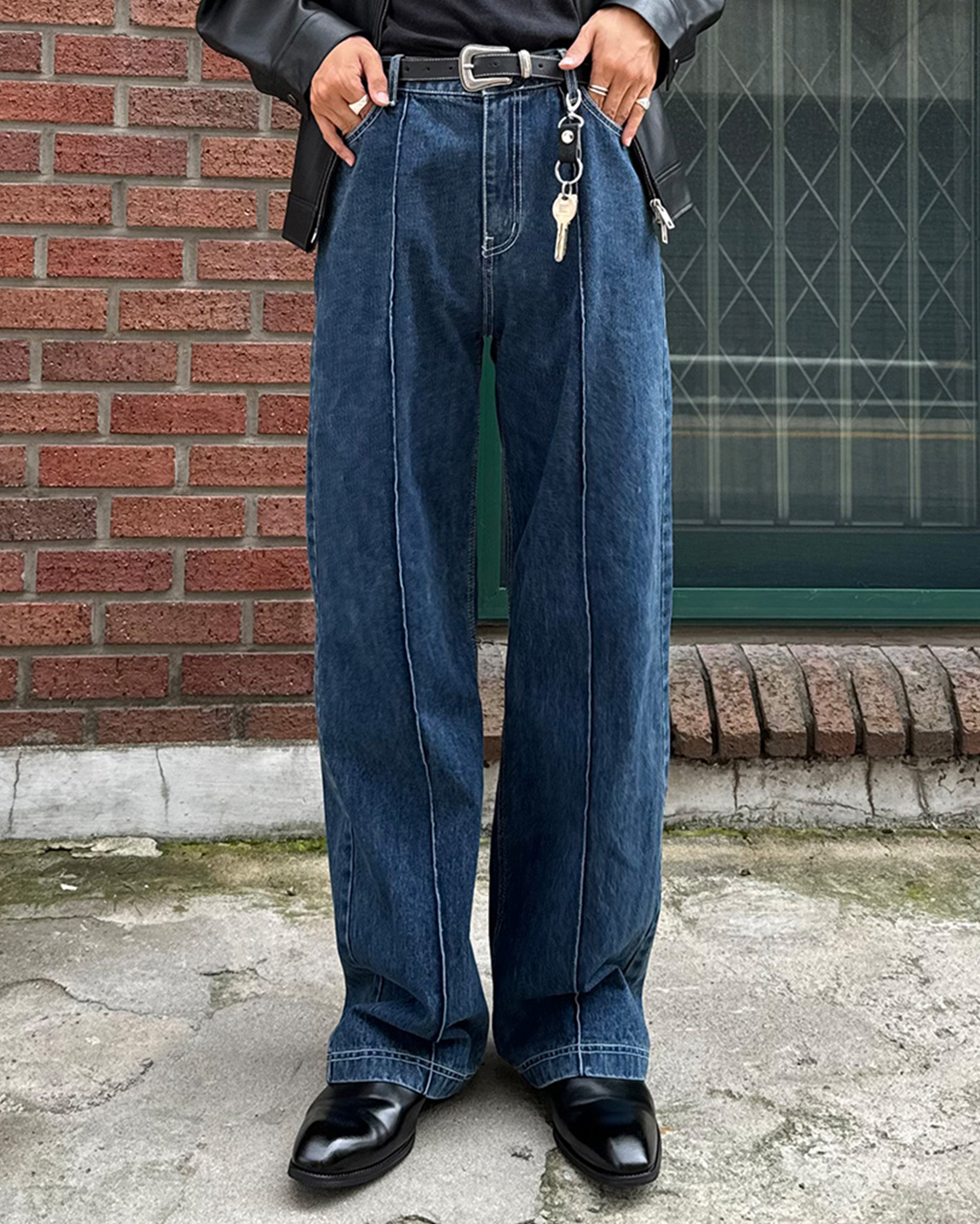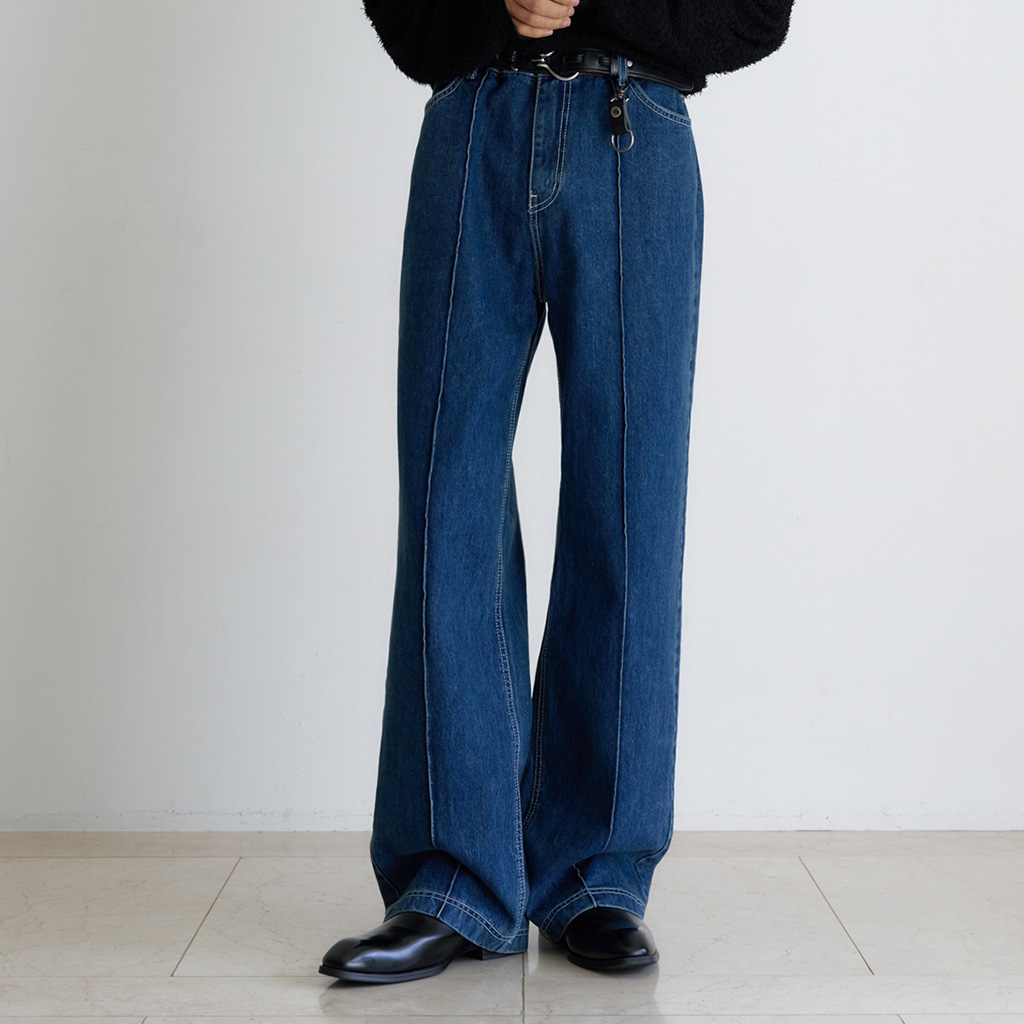 [12回再販](ORIGINAL) ピンタックストレートデニムパンツ (medium blue)