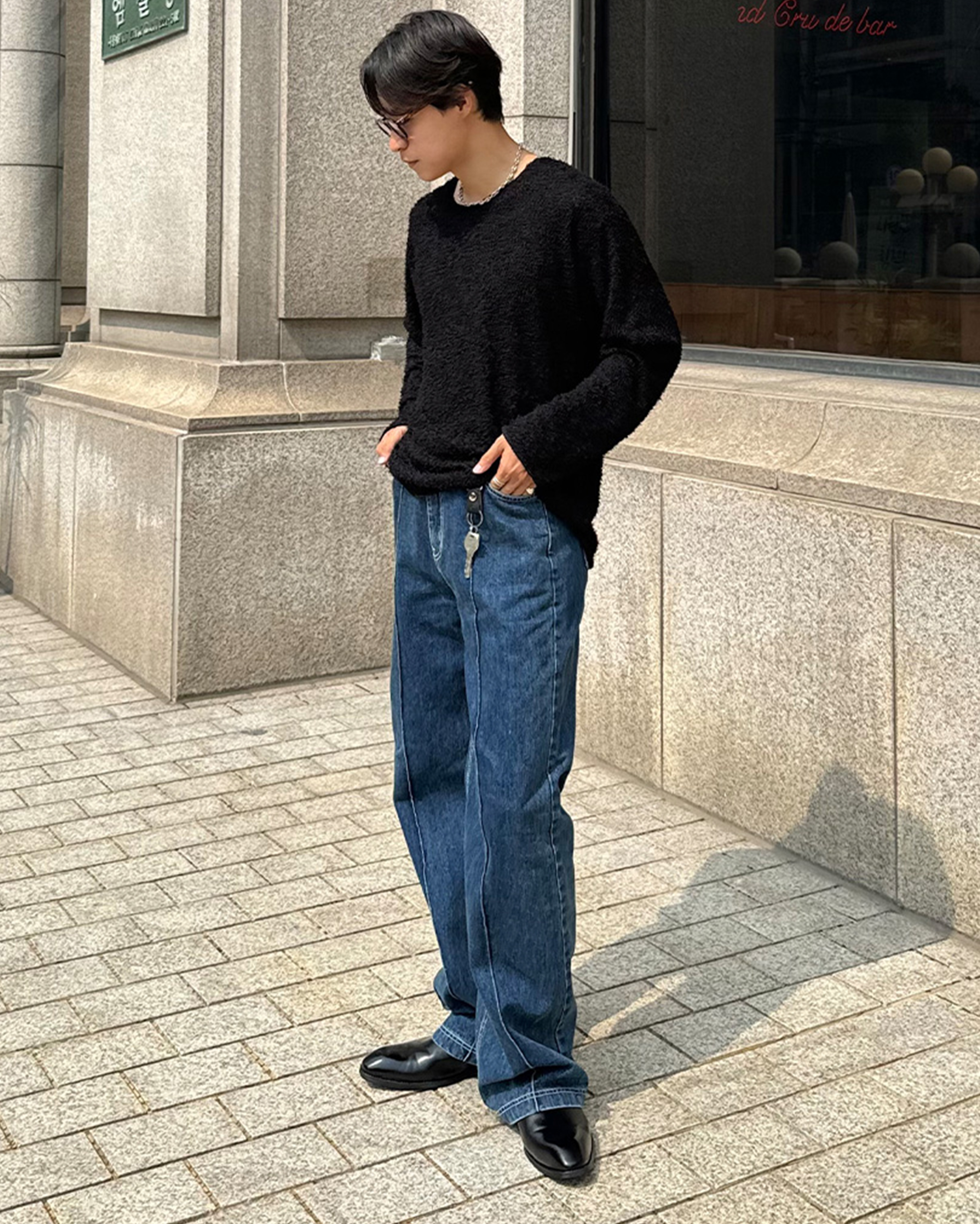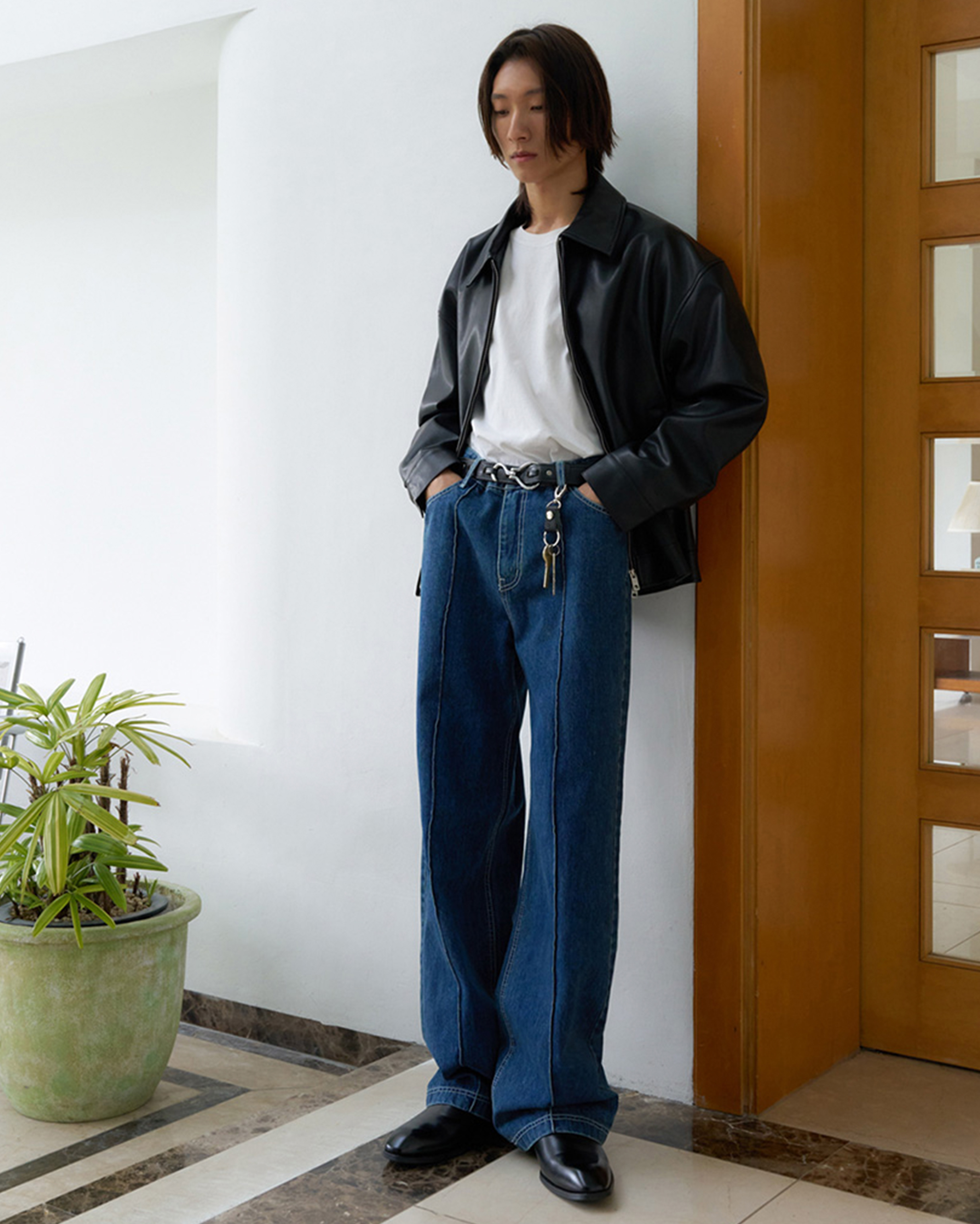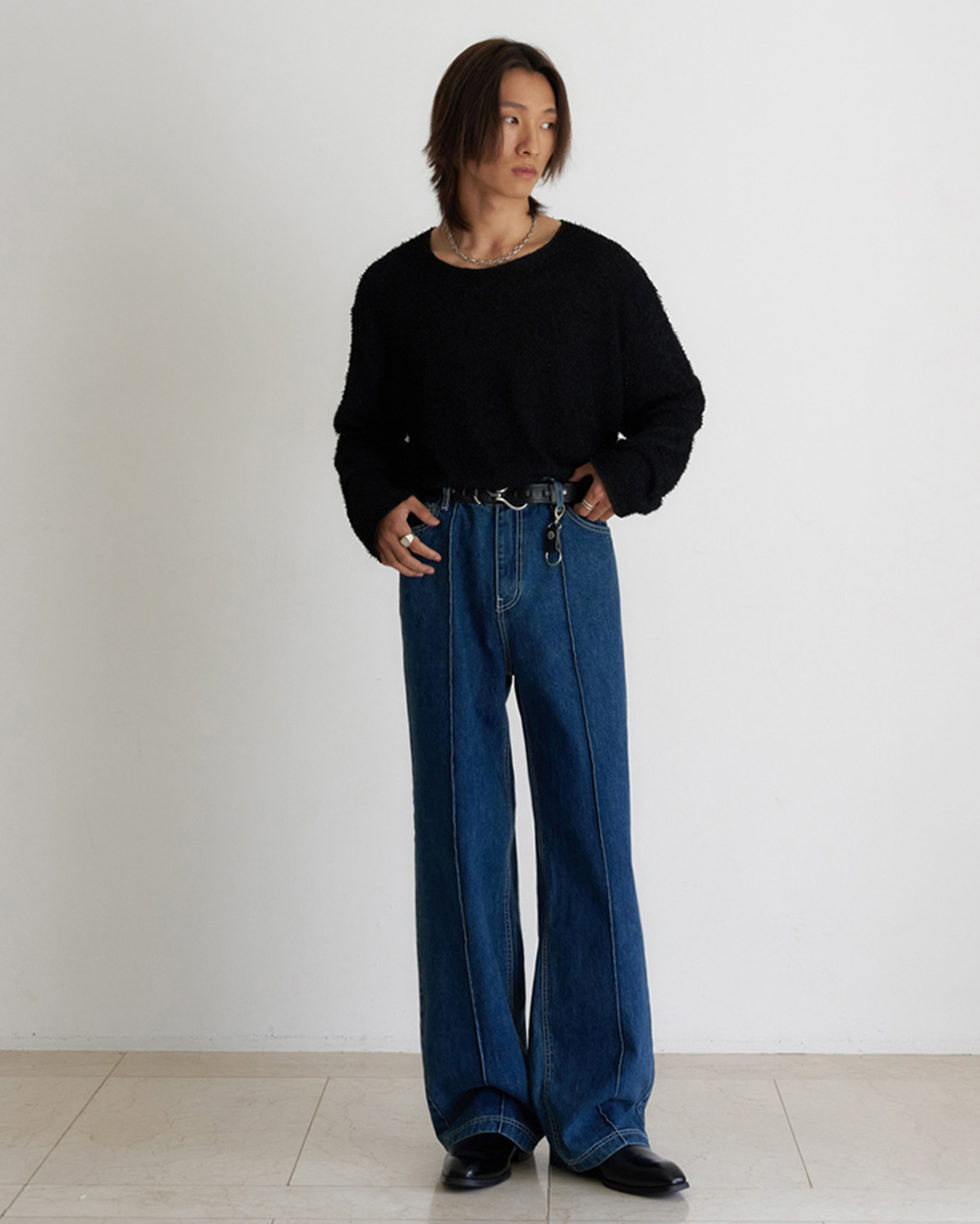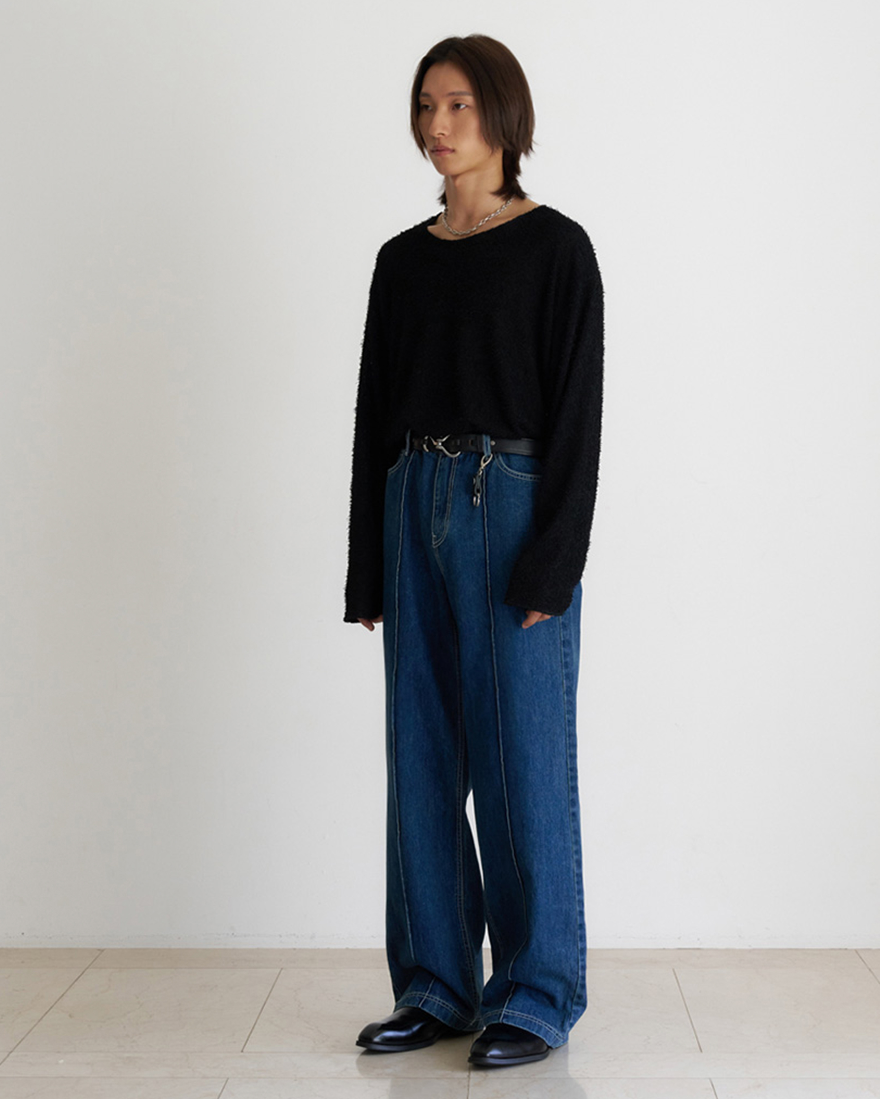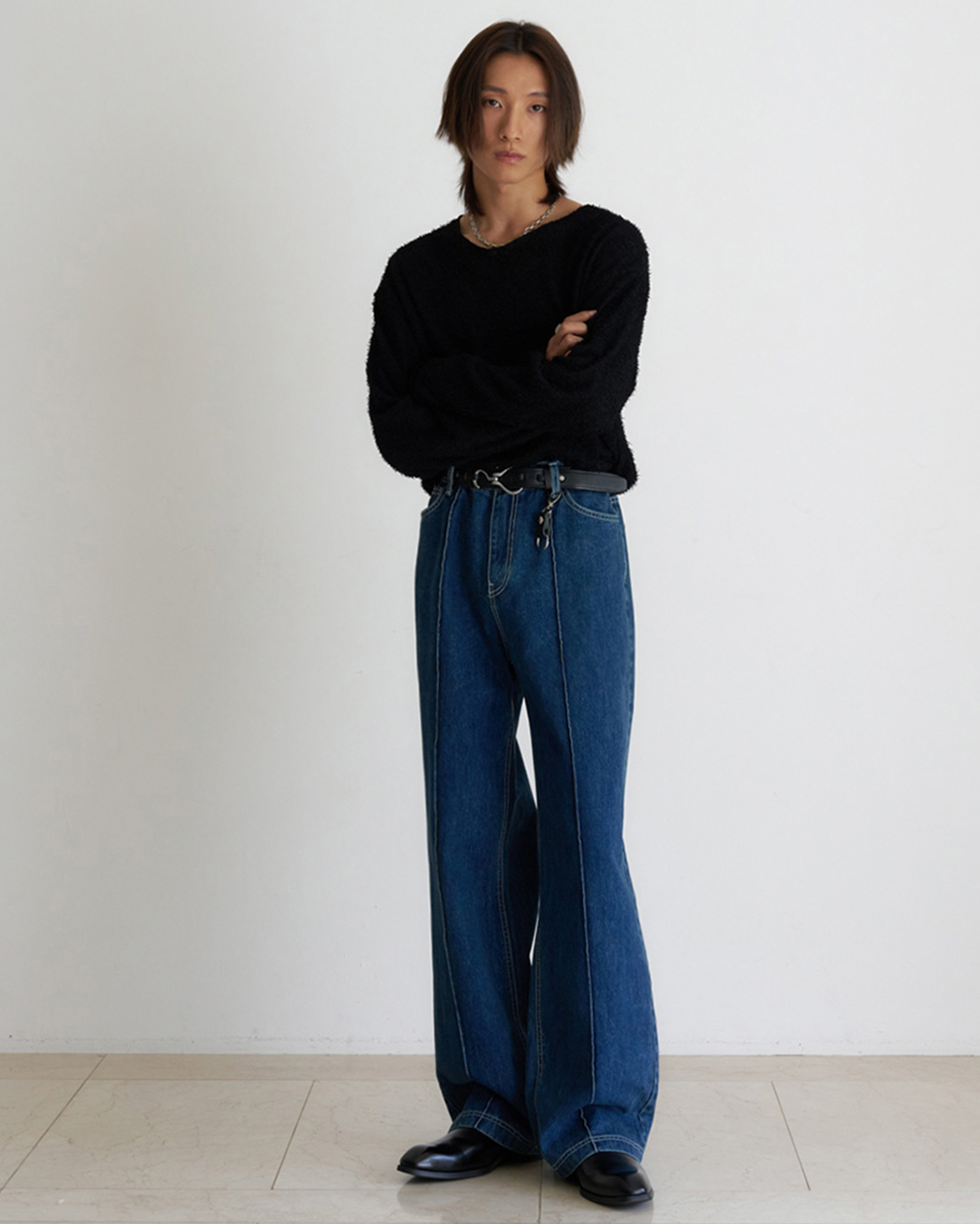 [12回再販](ORIGINAL) ピンタックストレートデニムパンツ (medium blue)