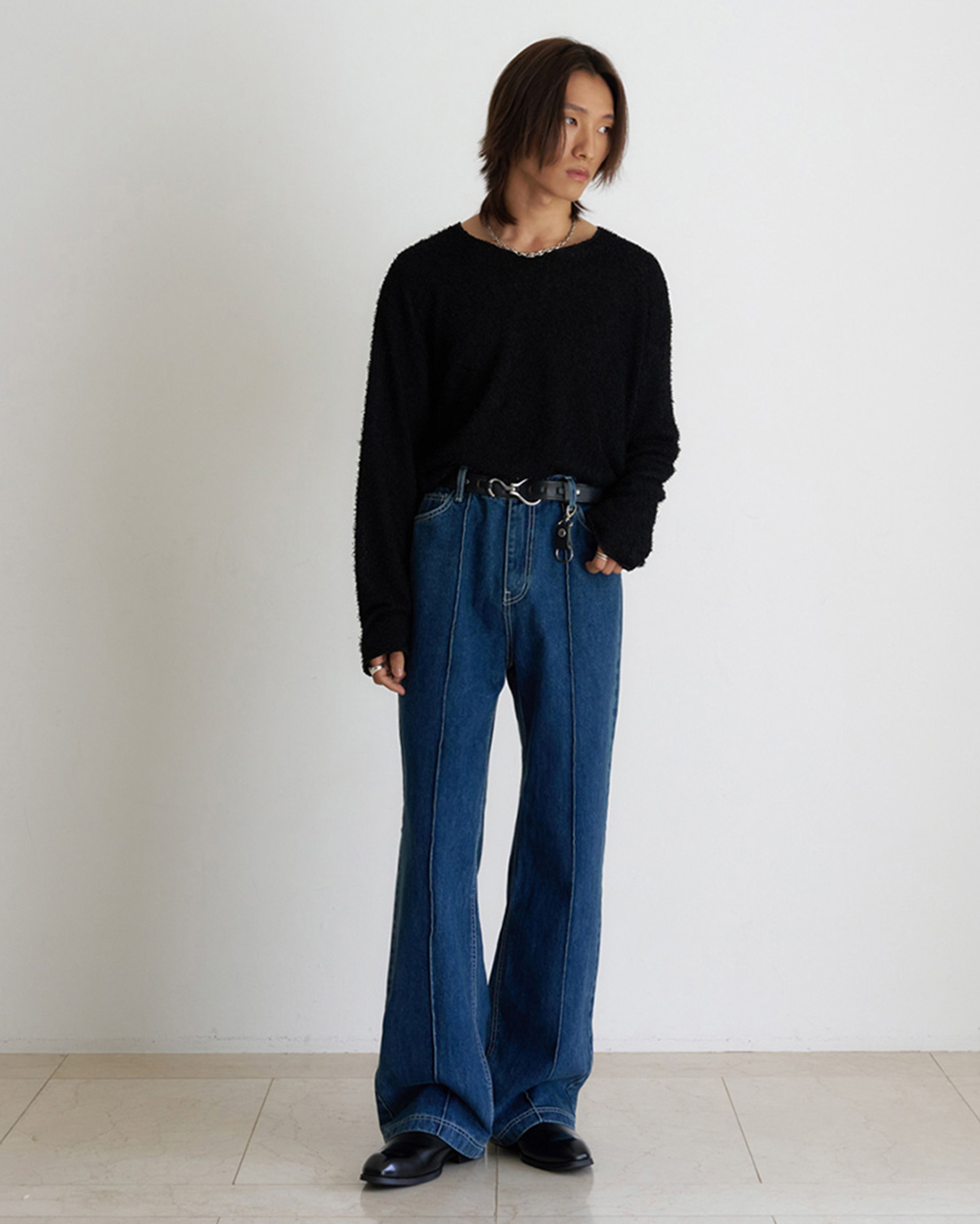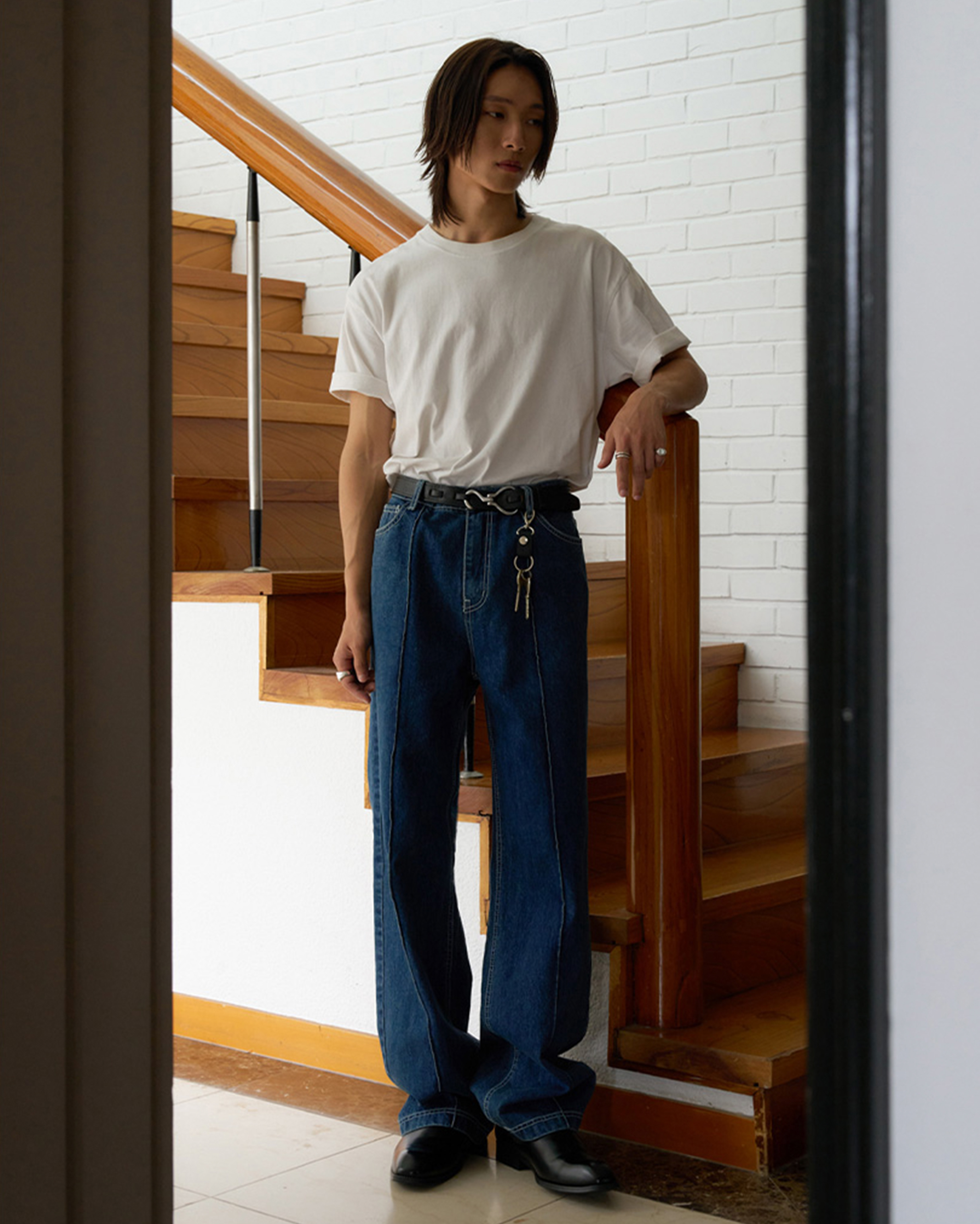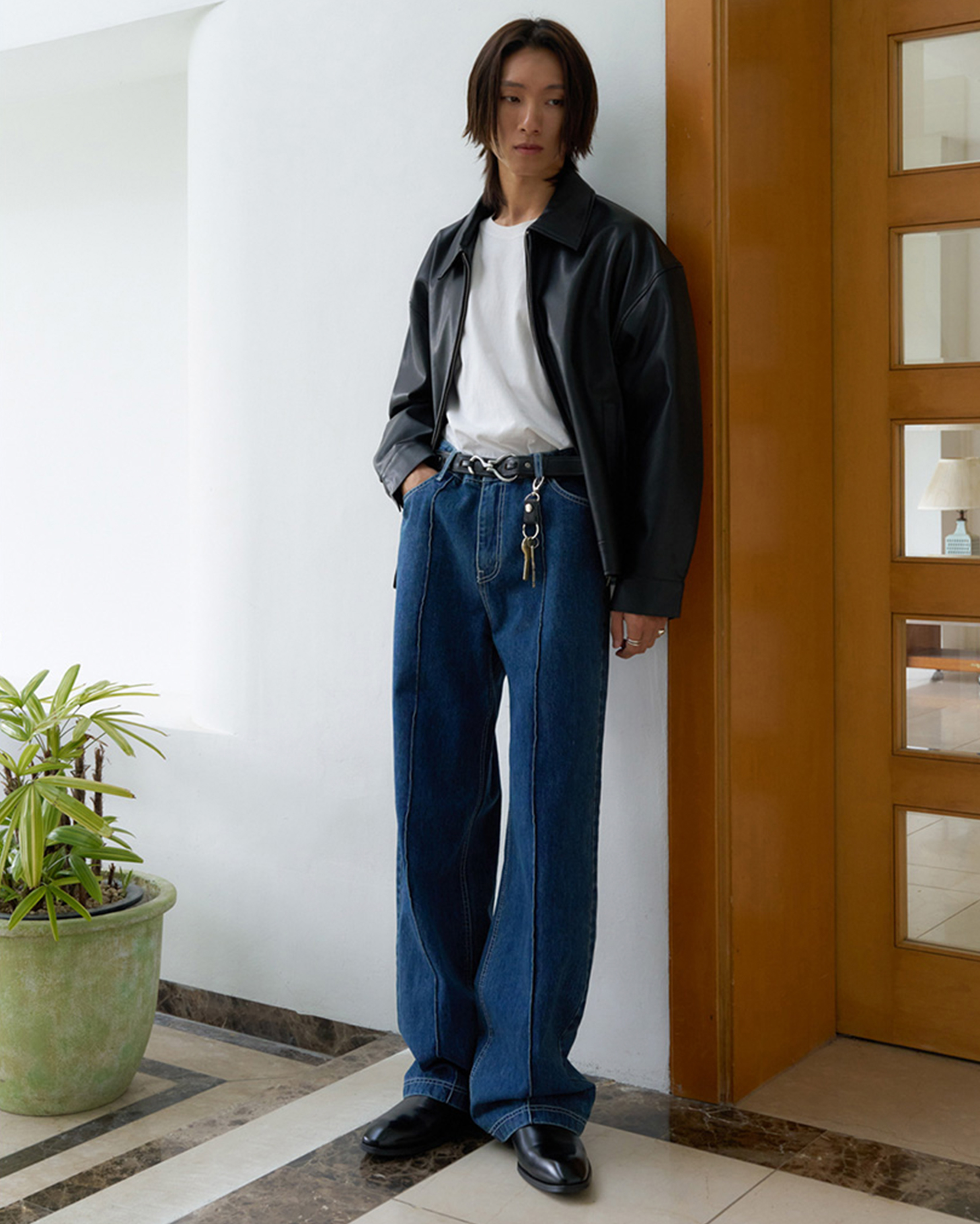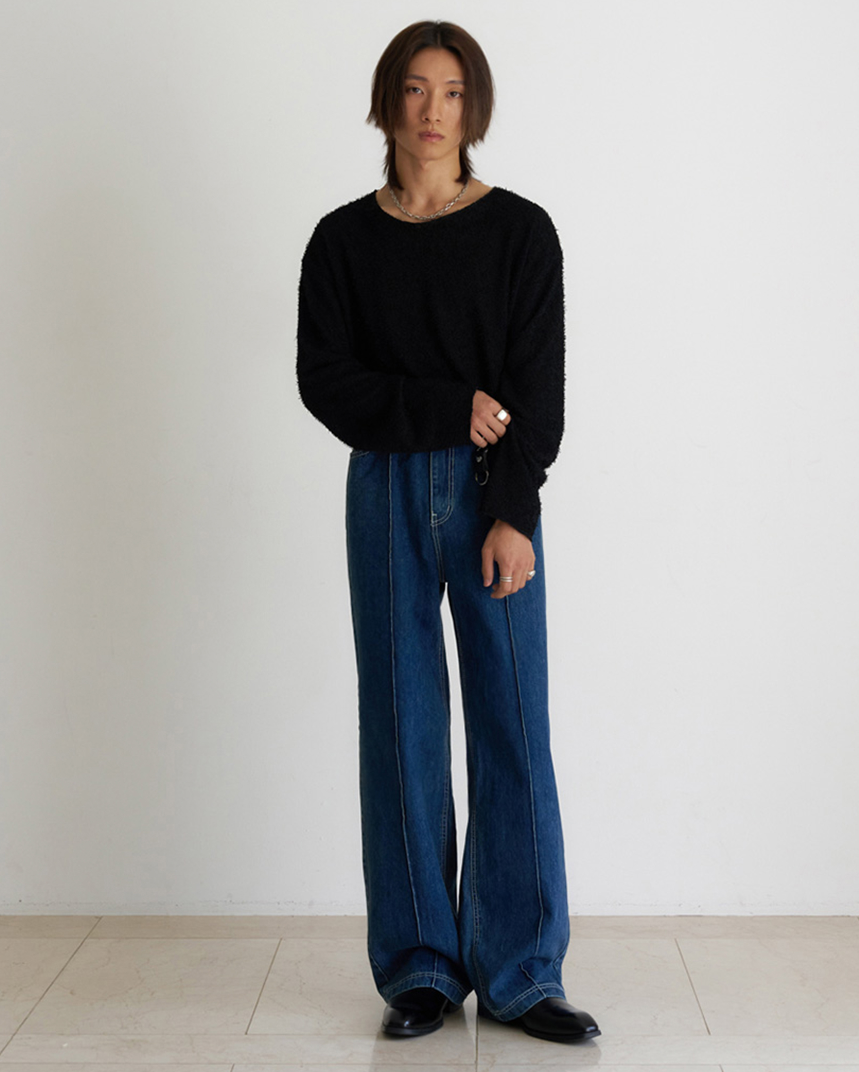 [12回再販](ORIGINAL) ピンタックストレートデニムパンツ (medium blue)