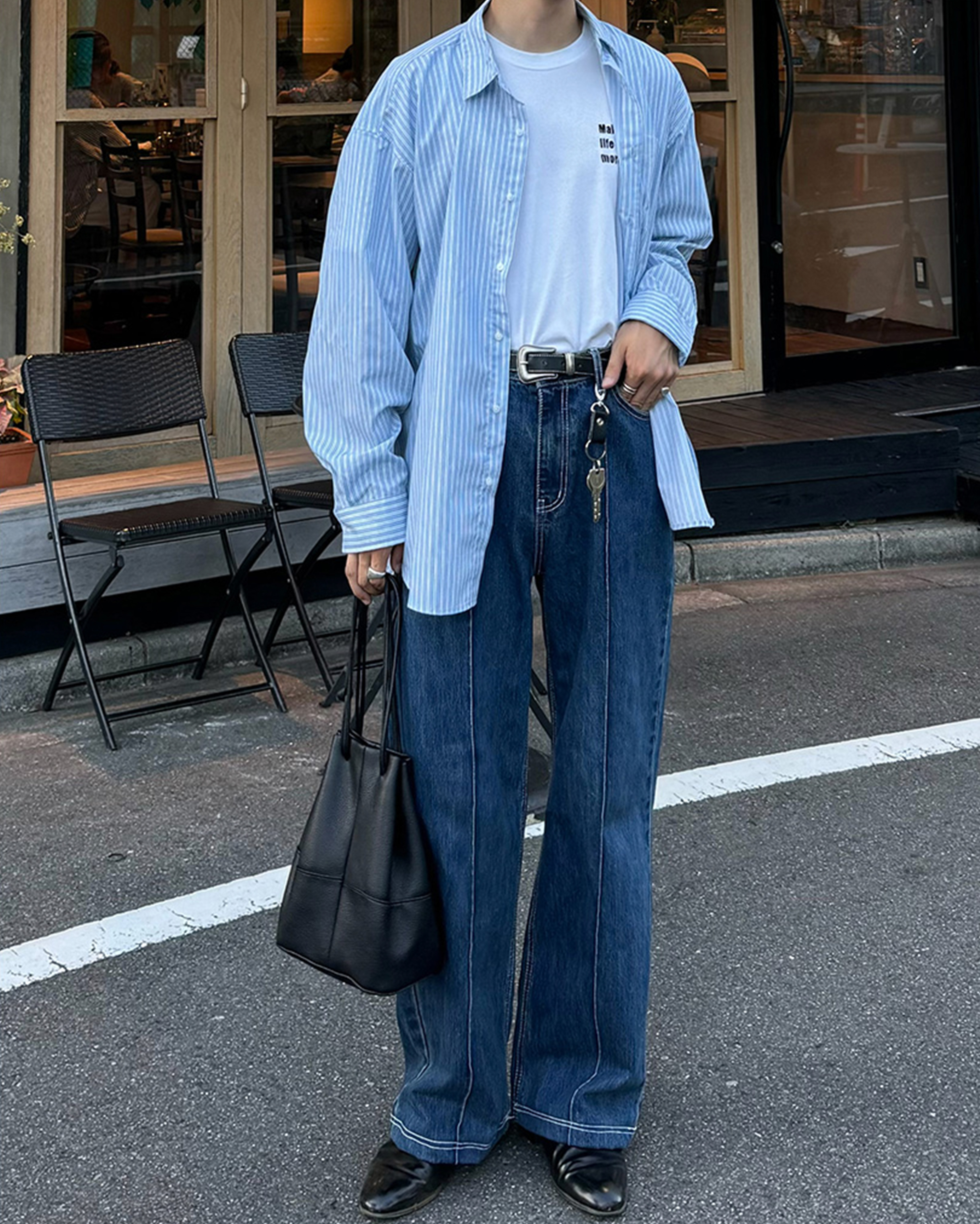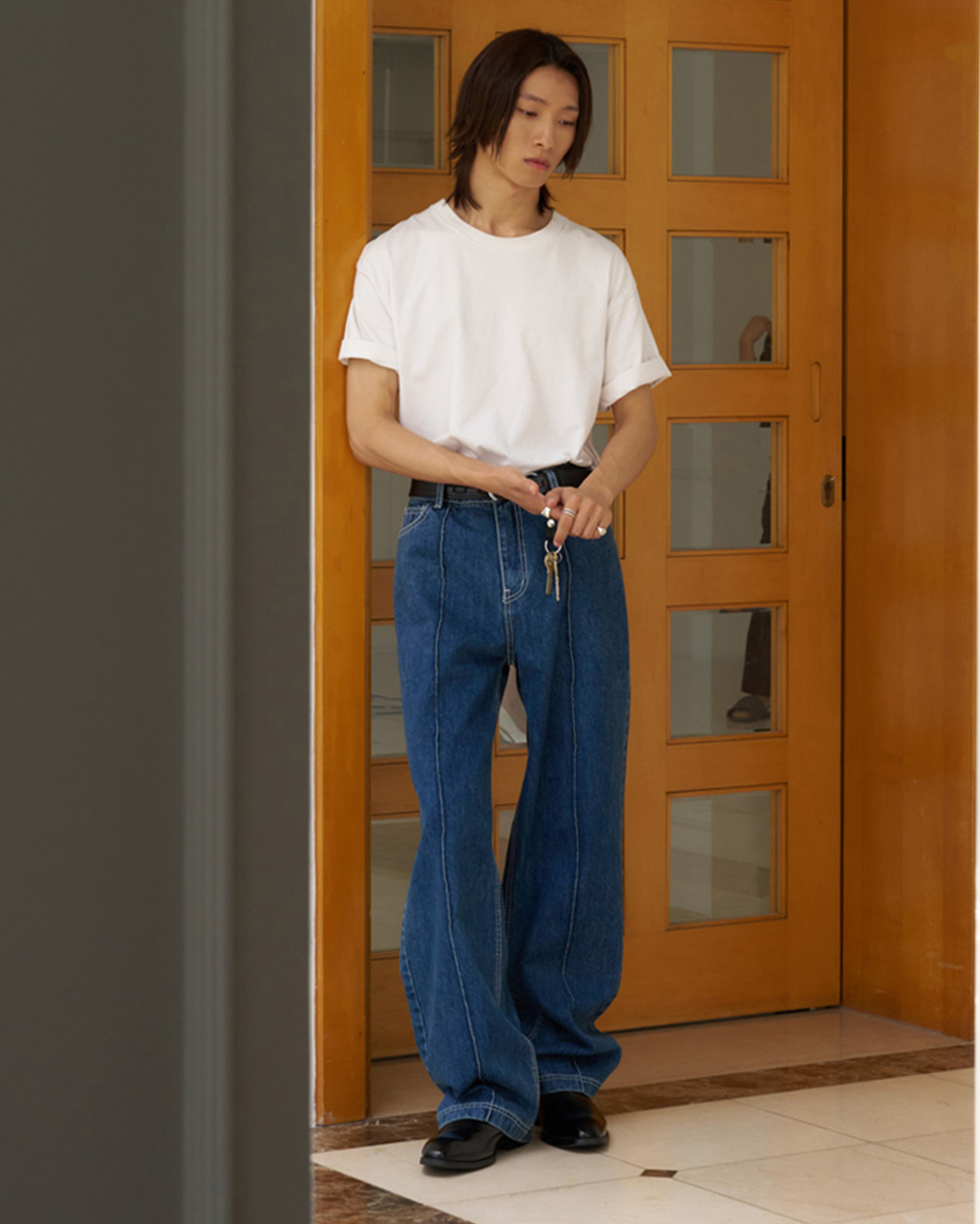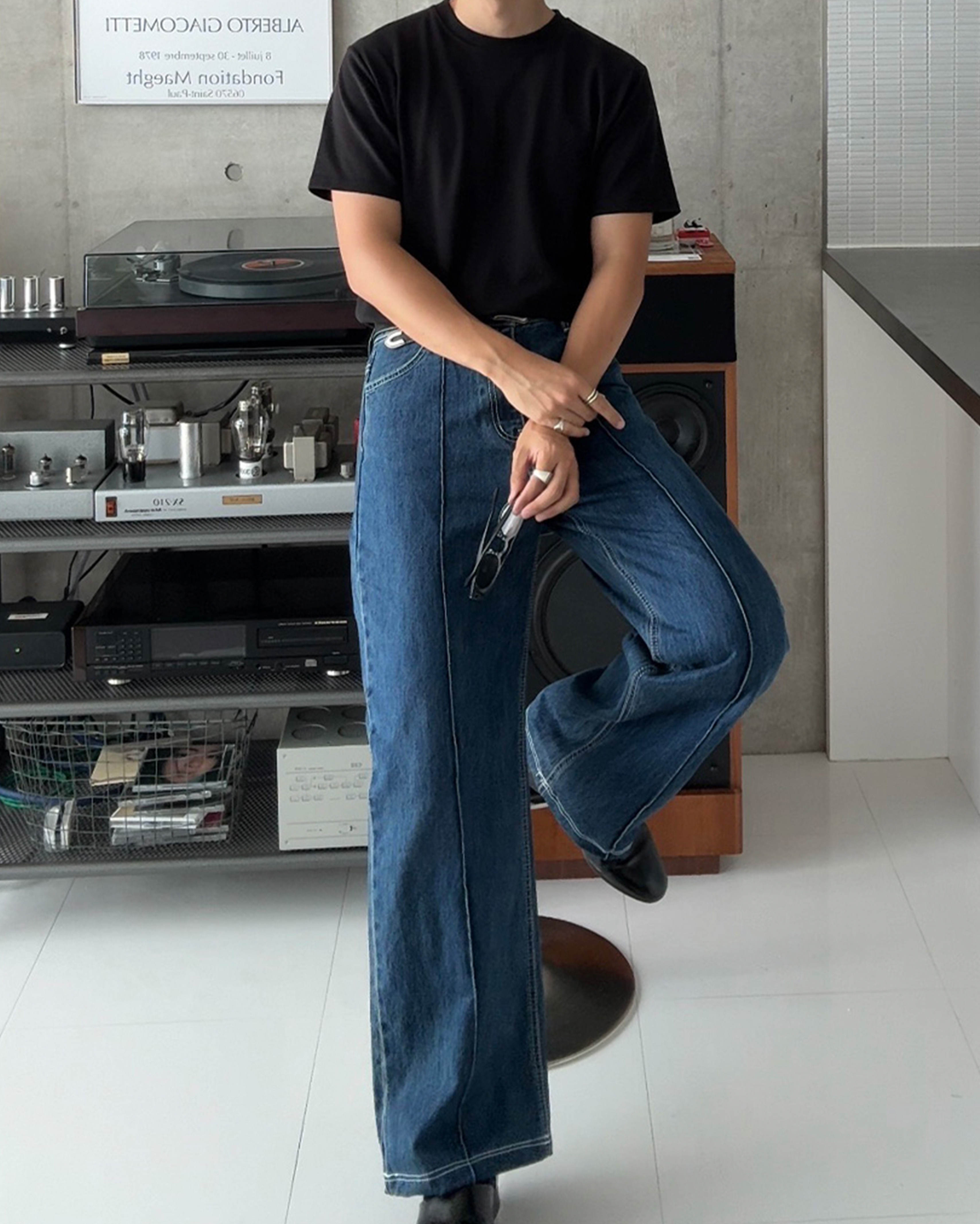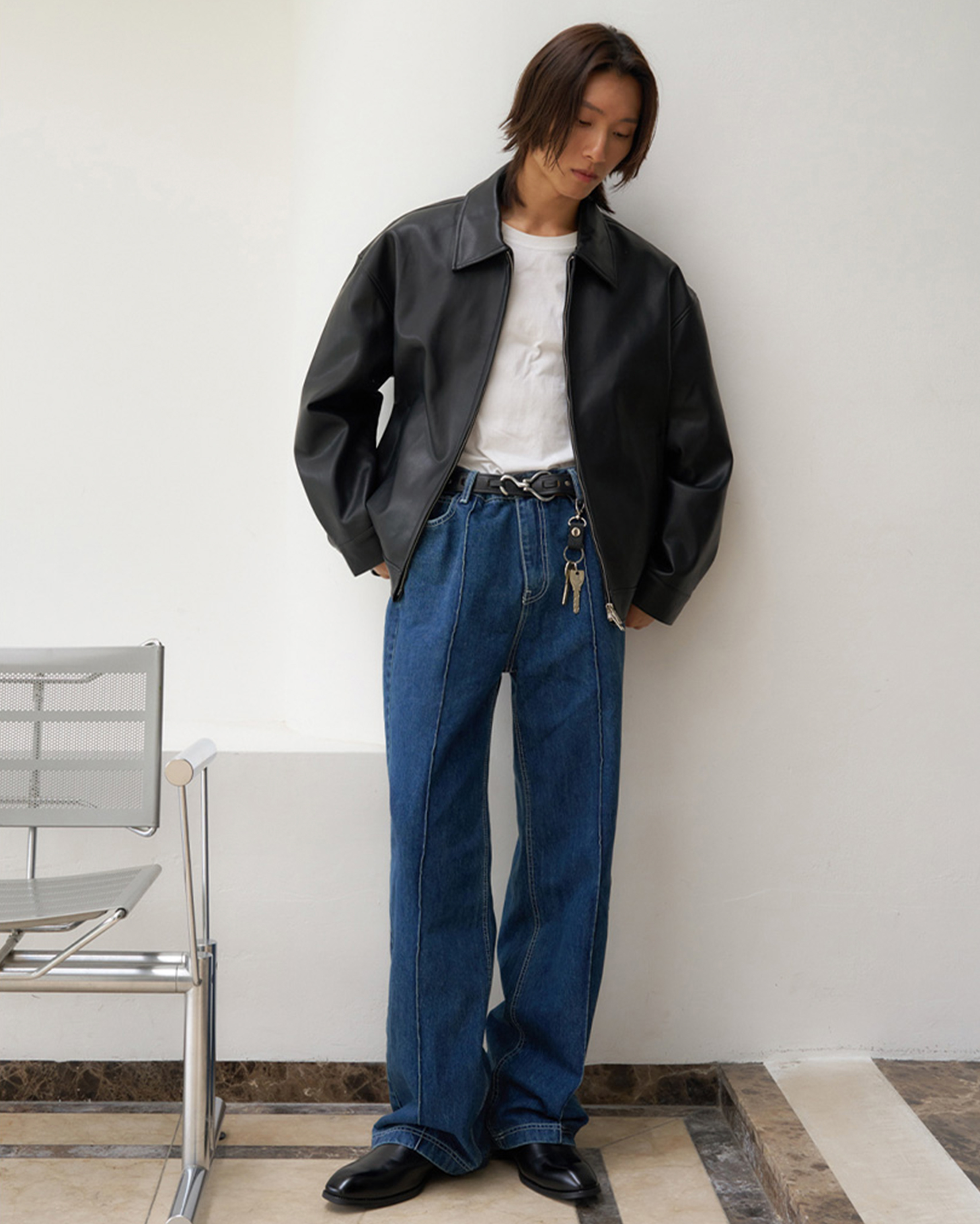 [12回再販](ORIGINAL) ピンタックストレートデニムパンツ (medium blue)