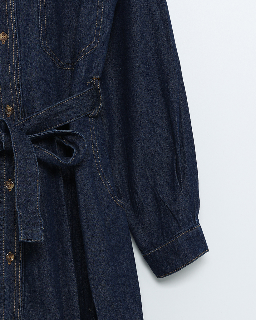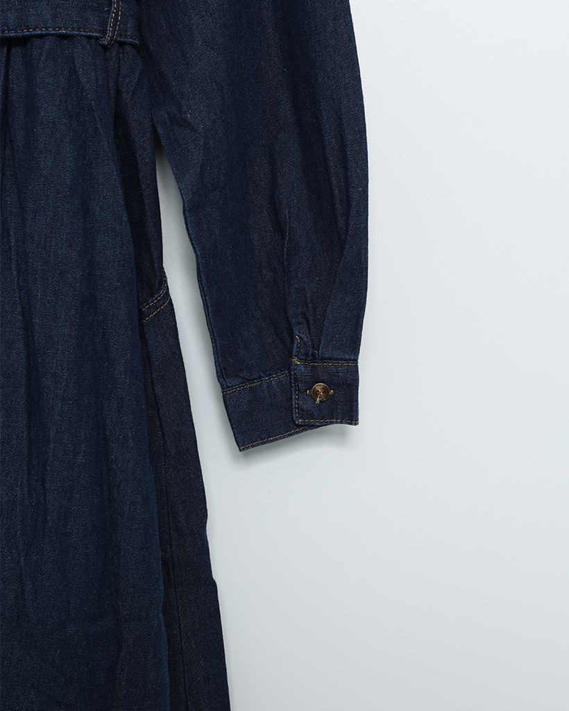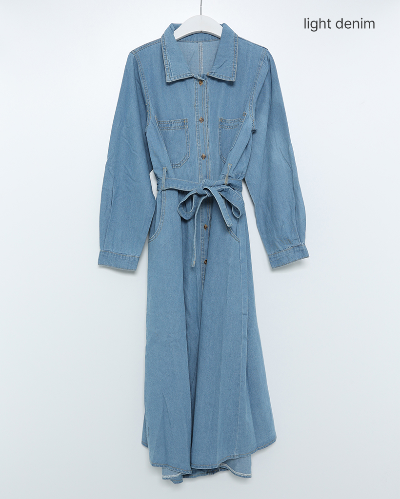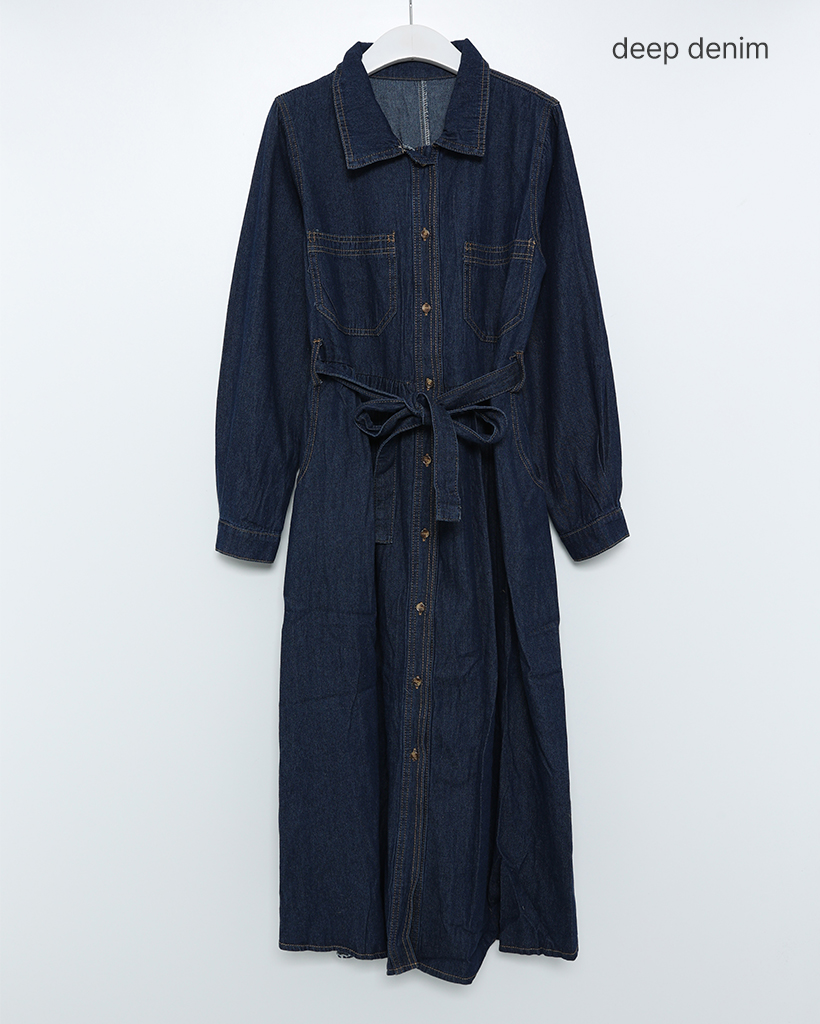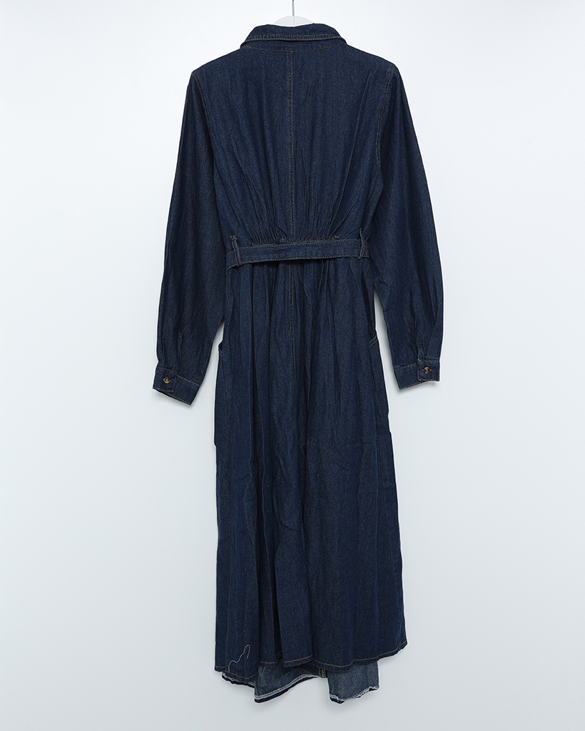 ステッチウエストストリングデニムロングワンピース