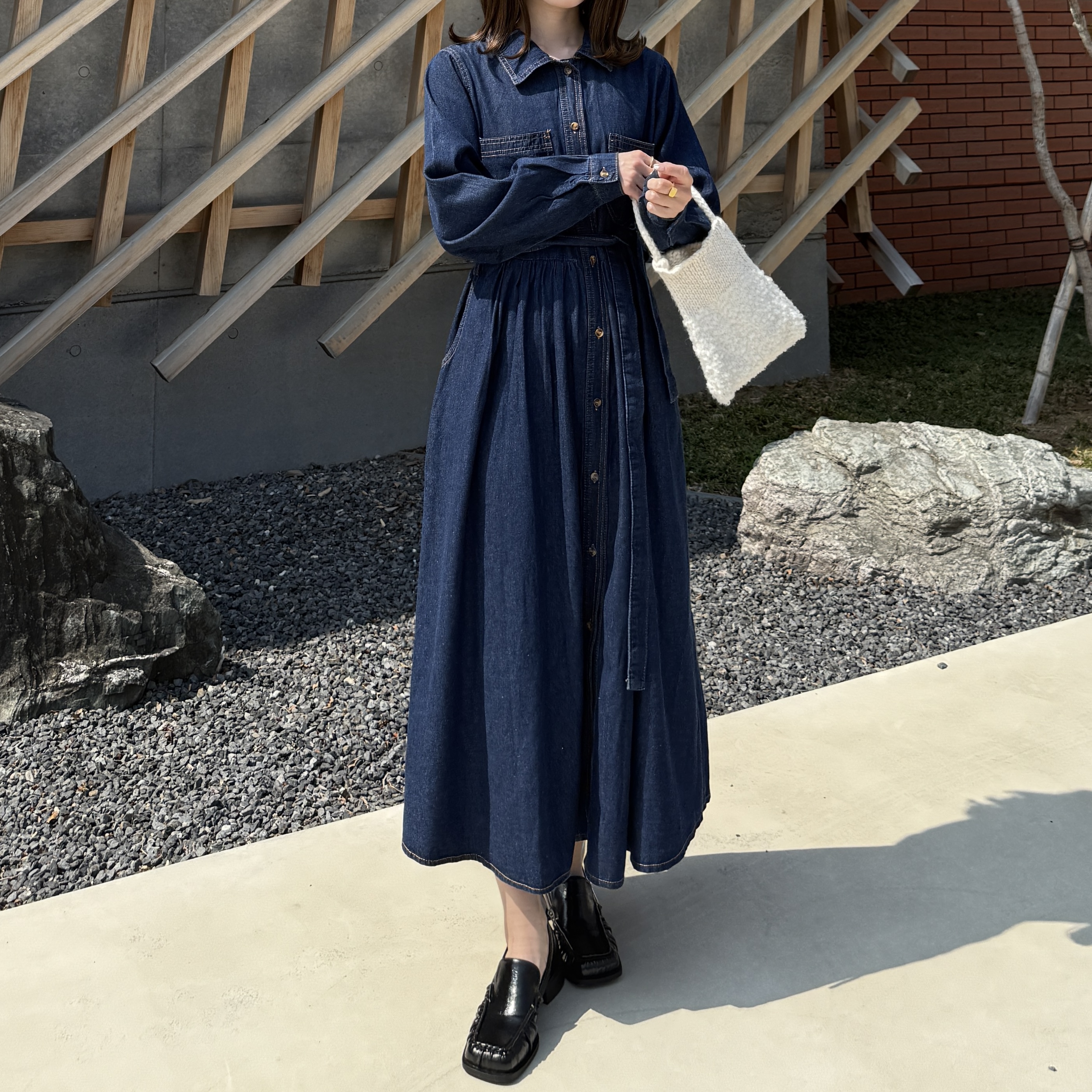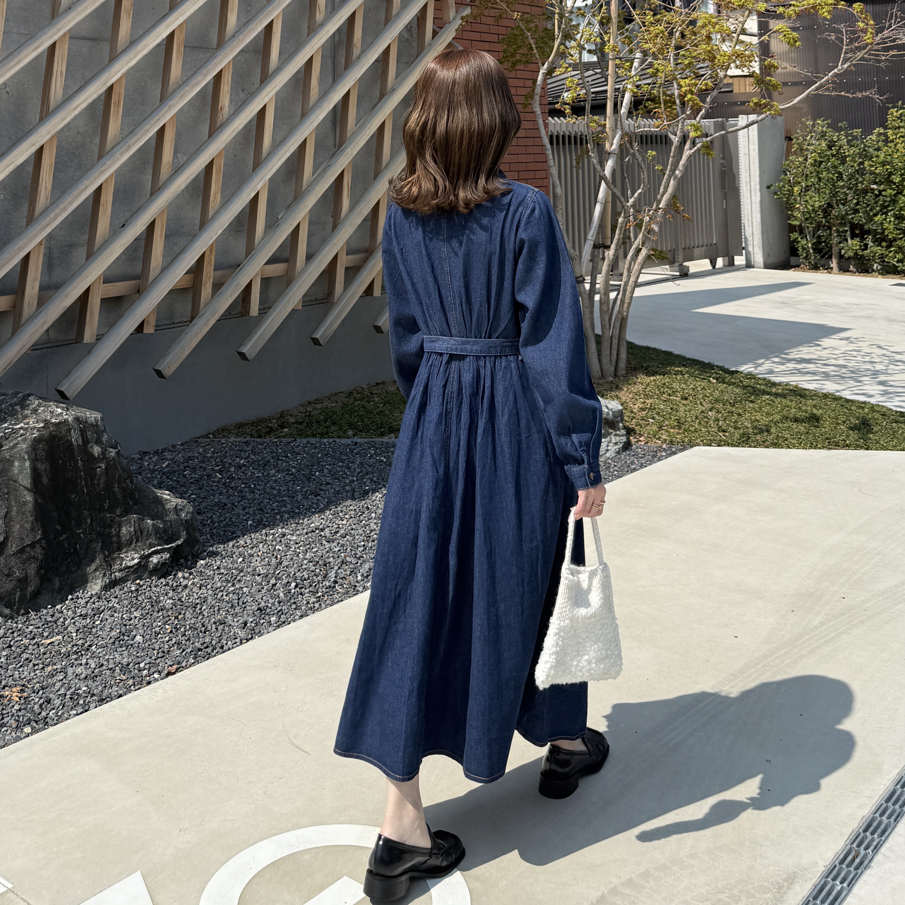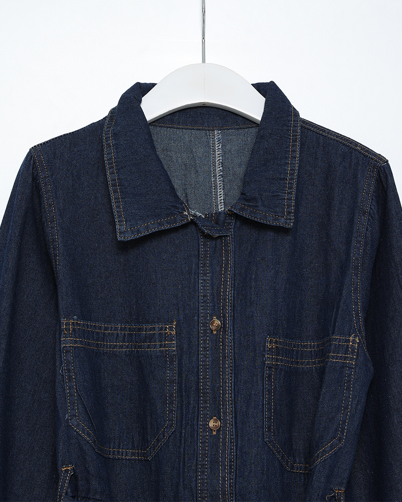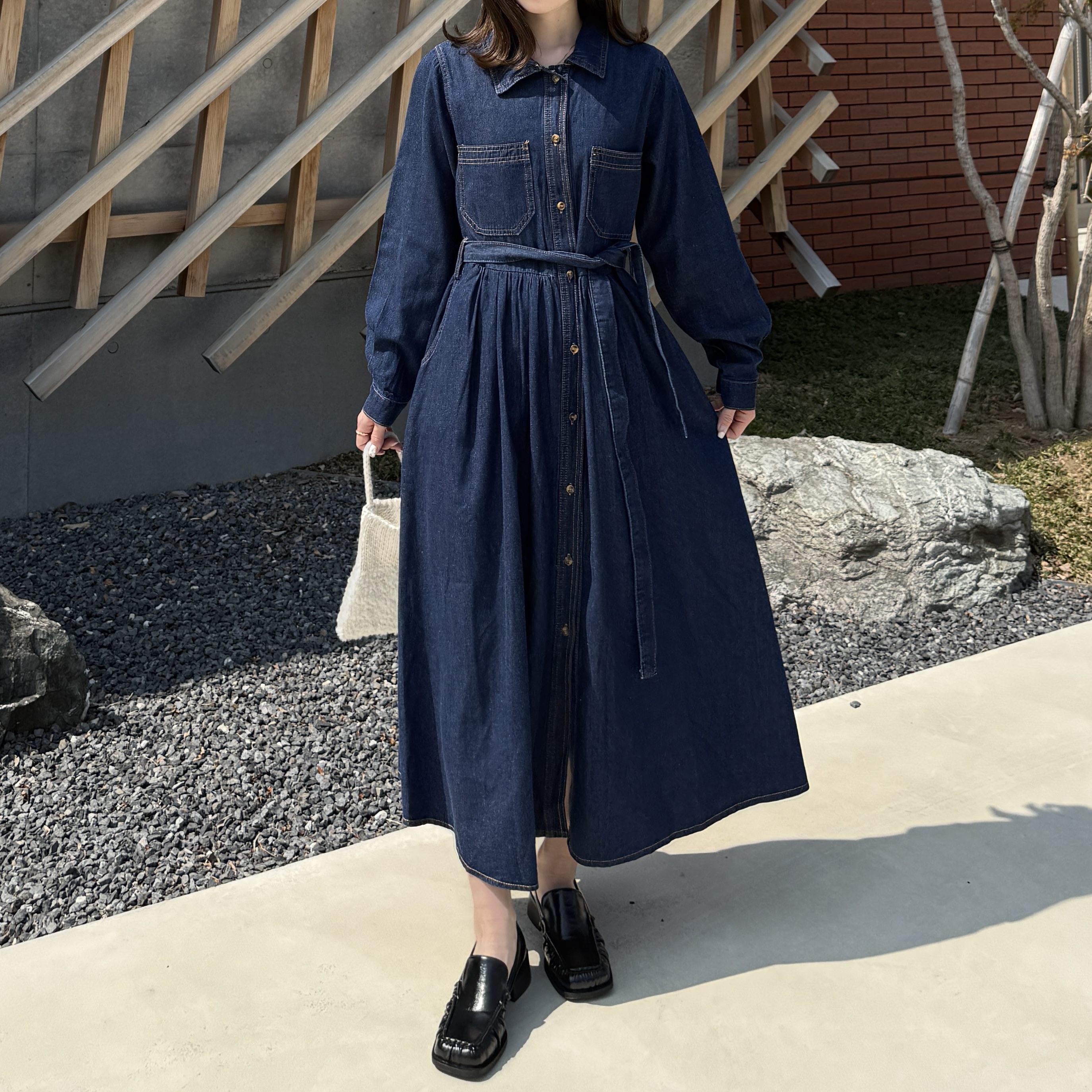 ステッチウエストストリングデニムロングワンピース