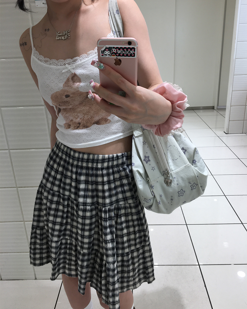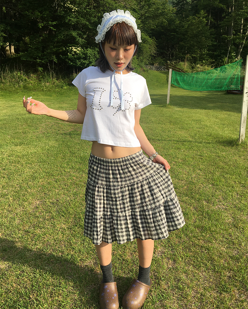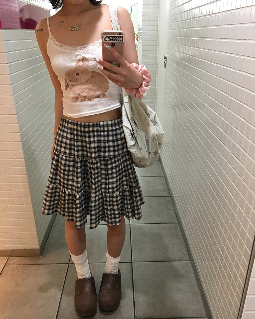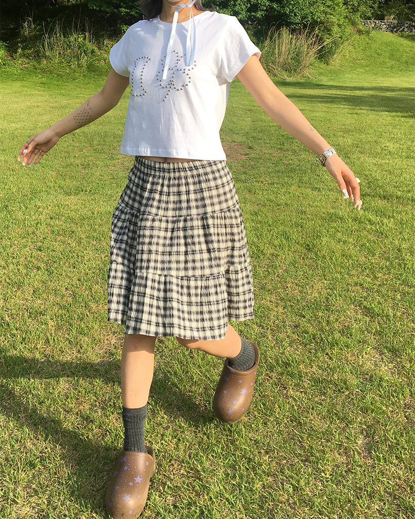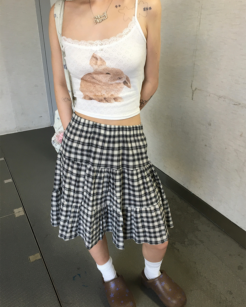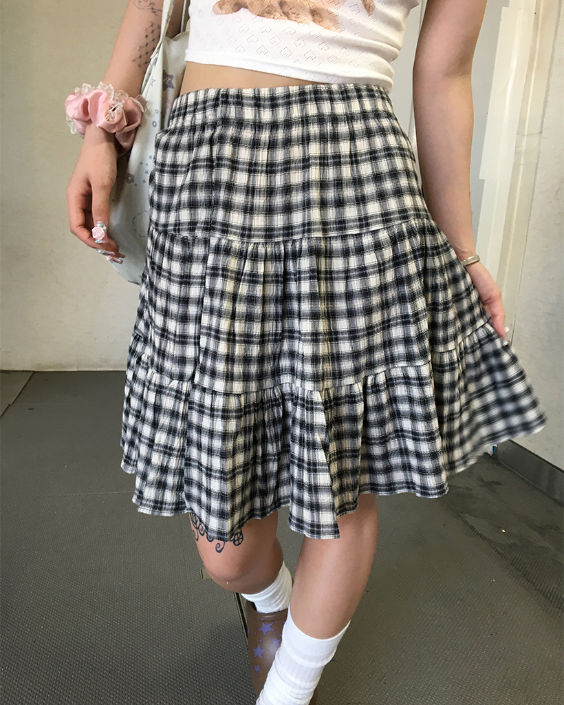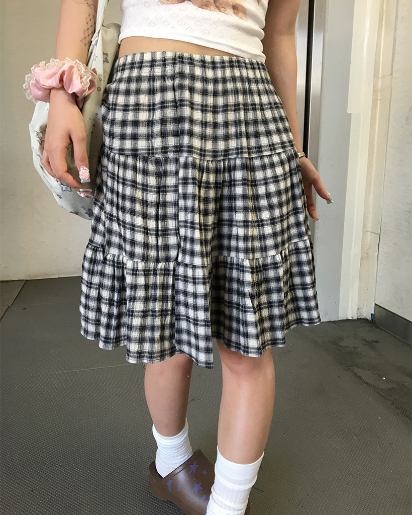 タータンチェックティアードミディスカート