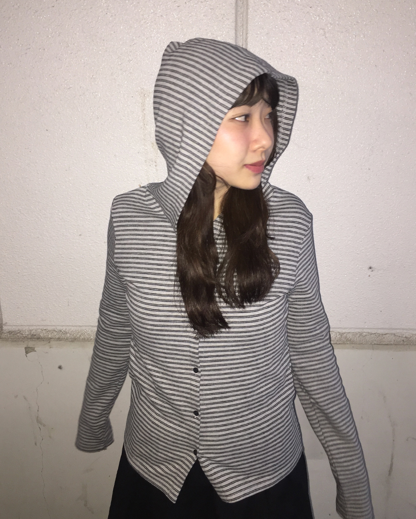 ダブルボーダーフードカーディガン