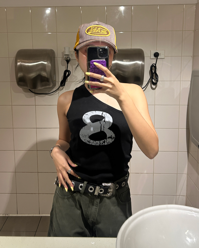 ピグメント8レタリングワンショルタンクトップ