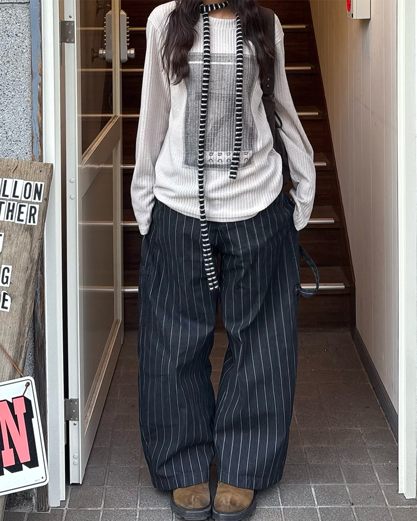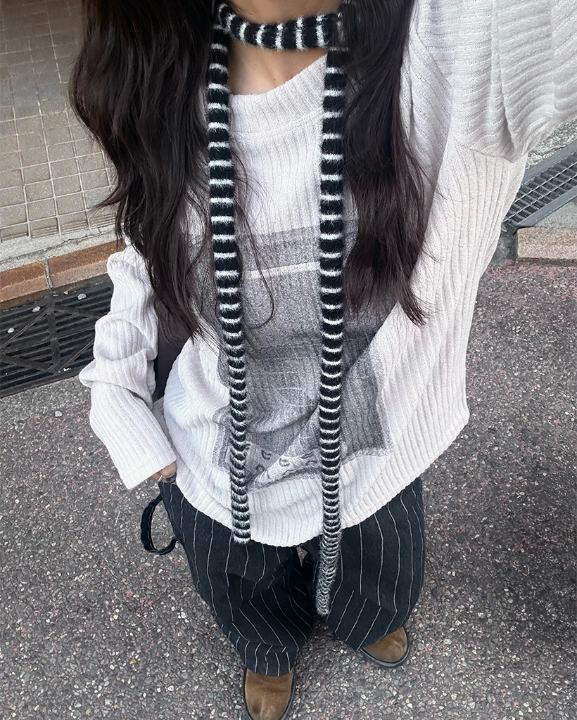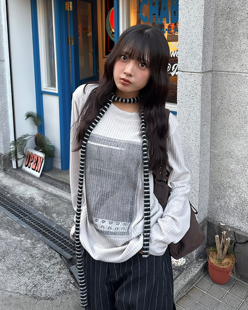 2WAYネック7イラストリブロングTシャツ