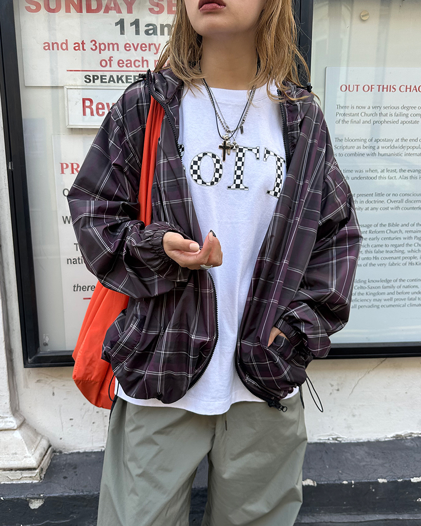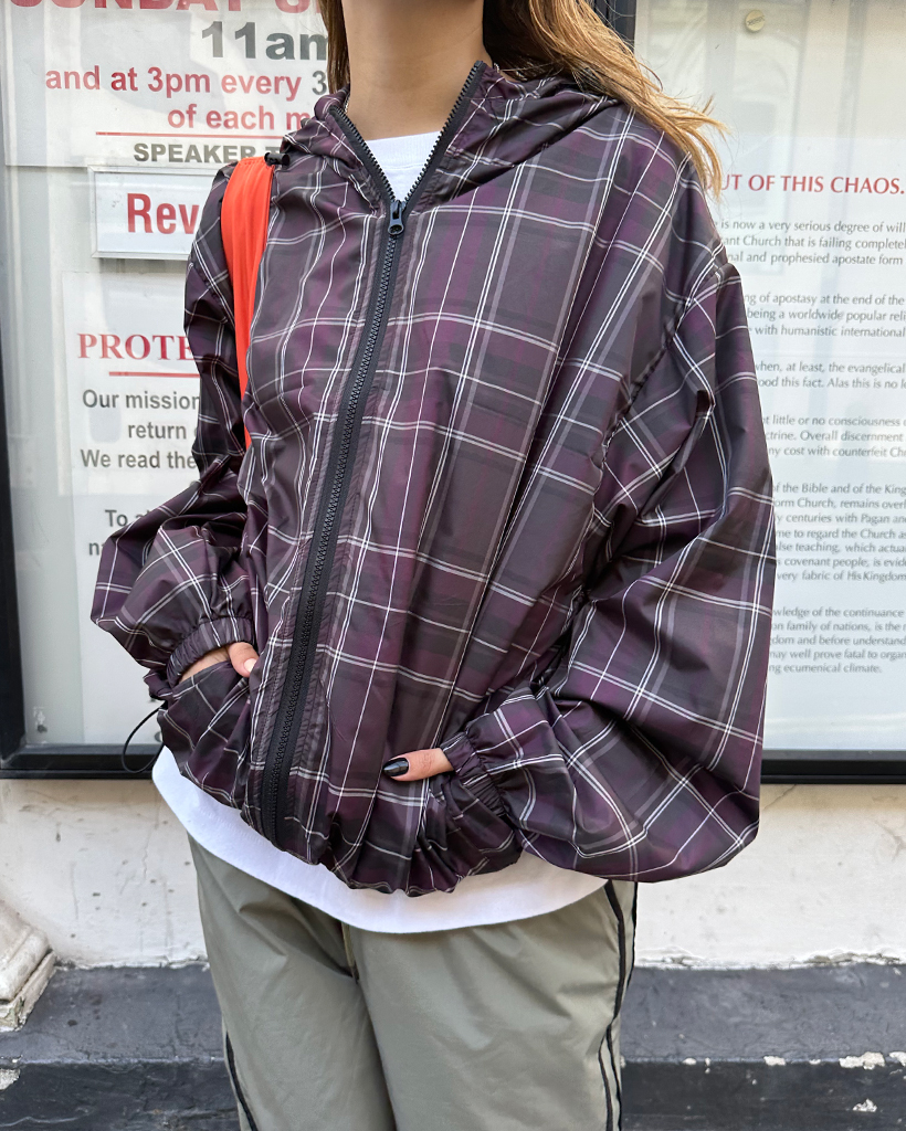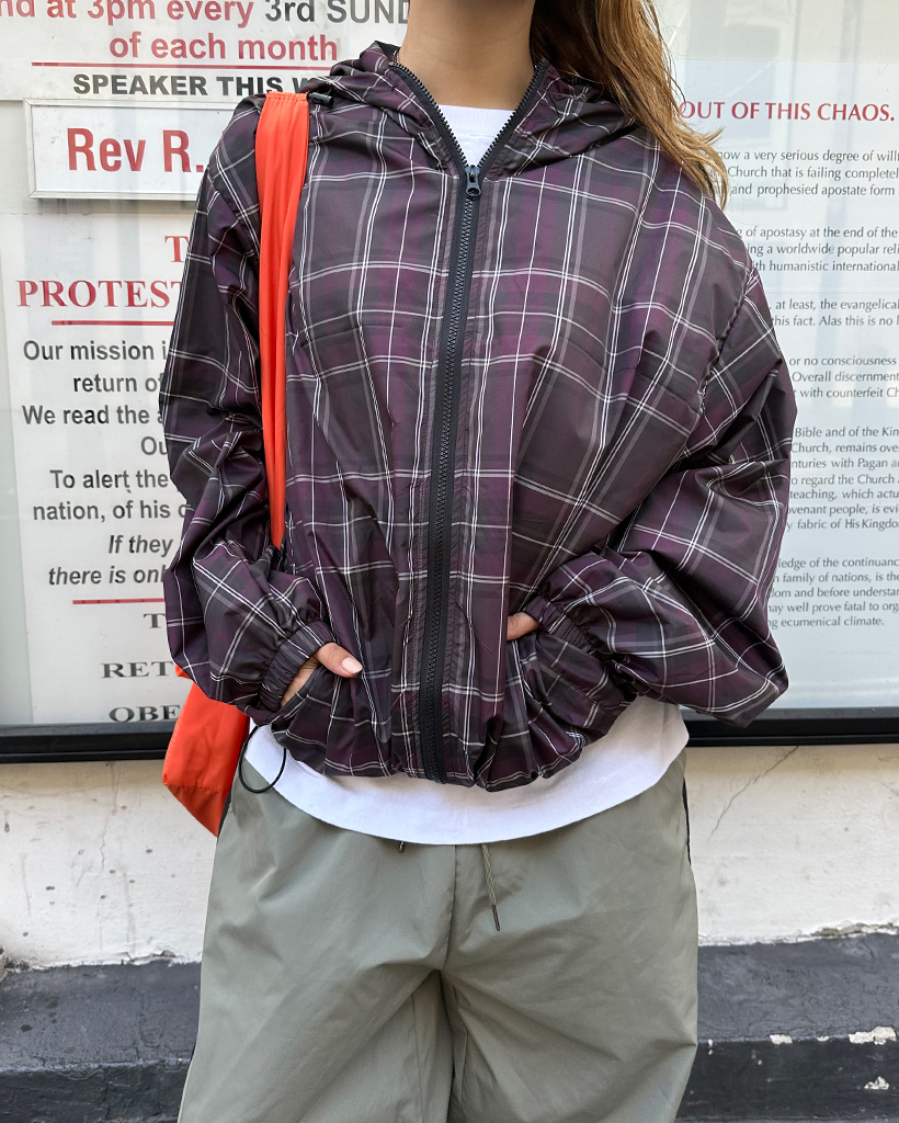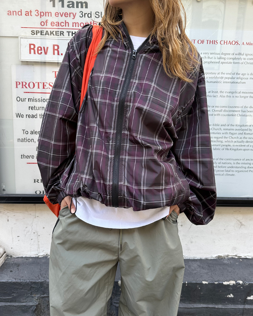 (ユニセックス)タータンチェックダブルジップウィンドブレーカー