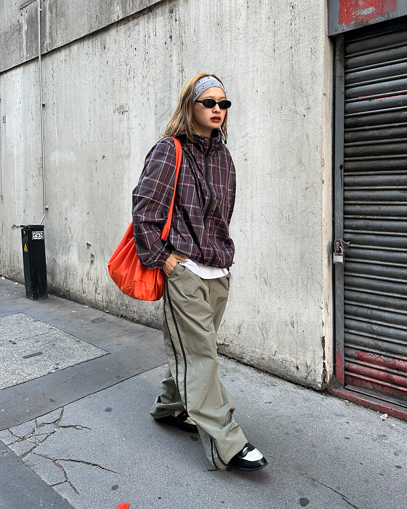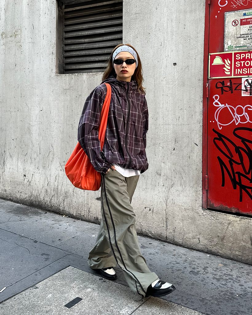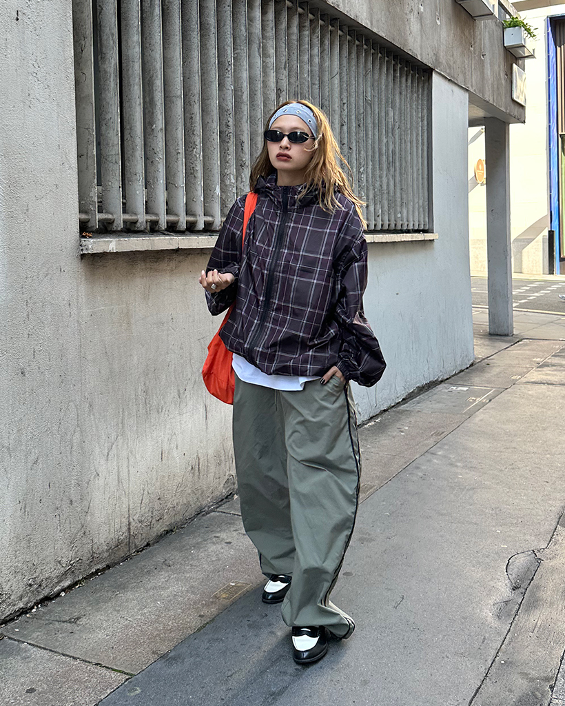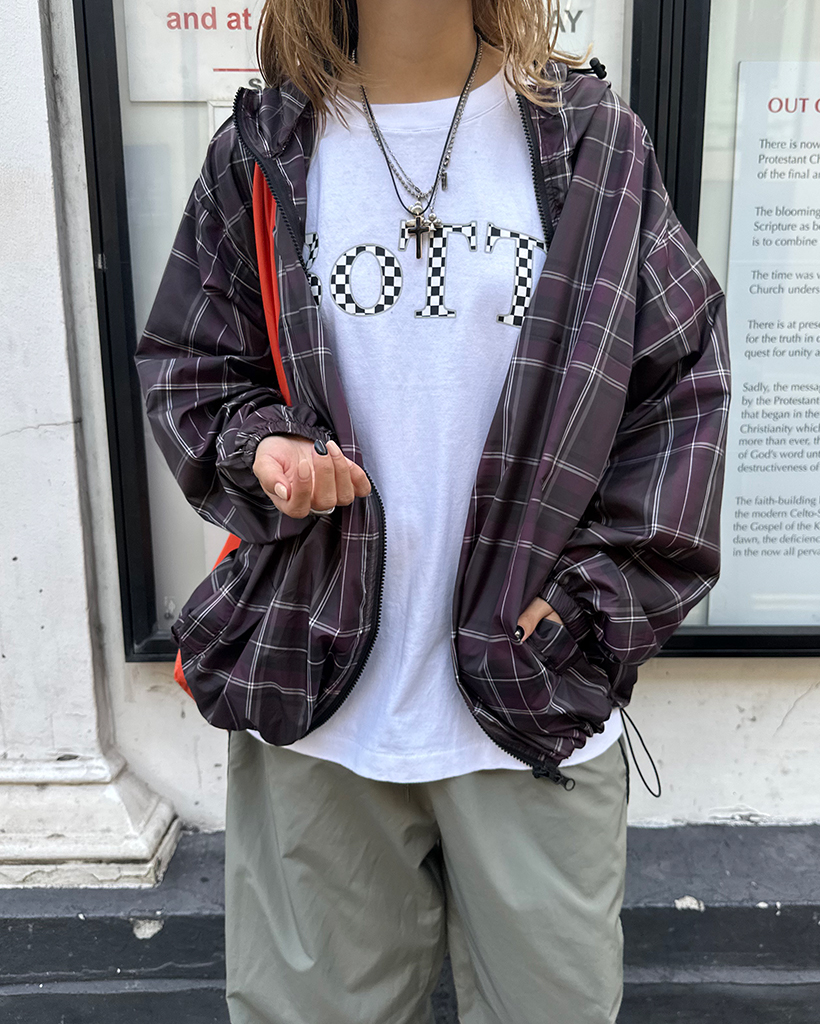 (ユニセックス)タータンチェックダブルジップウィンドブレーカー
