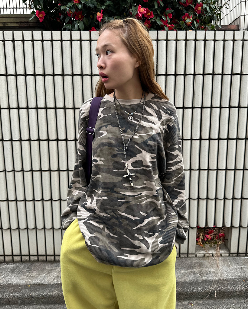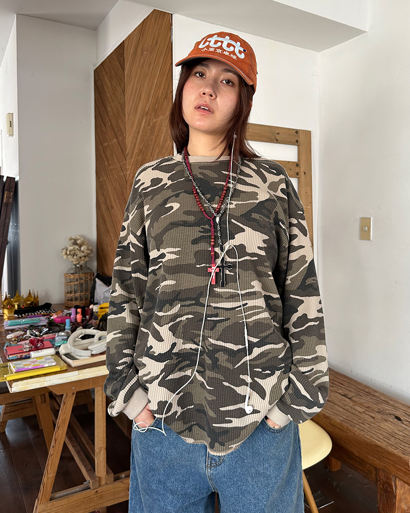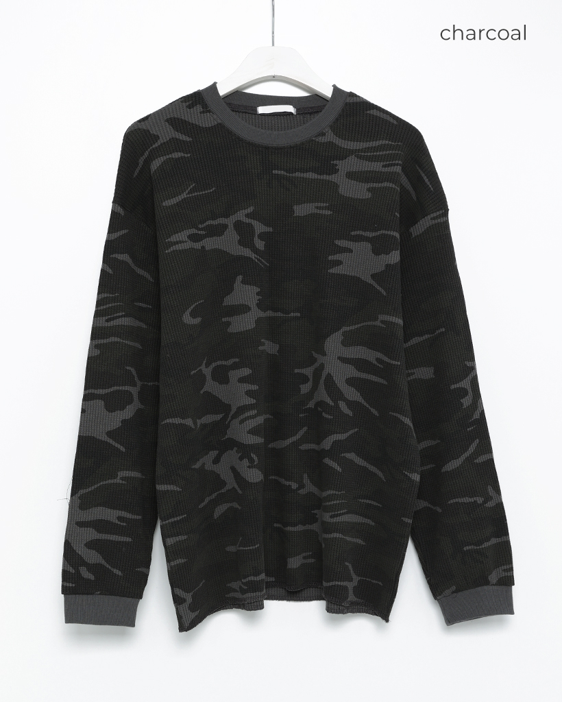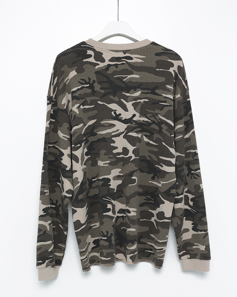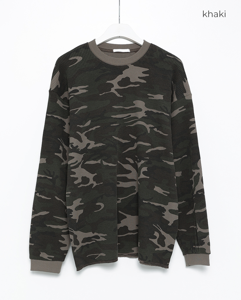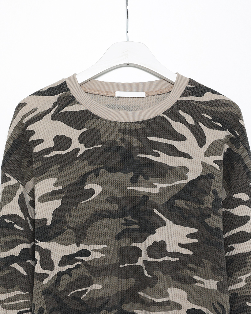 (ユニセックス)カモフラージュワッフルロングTシャツ