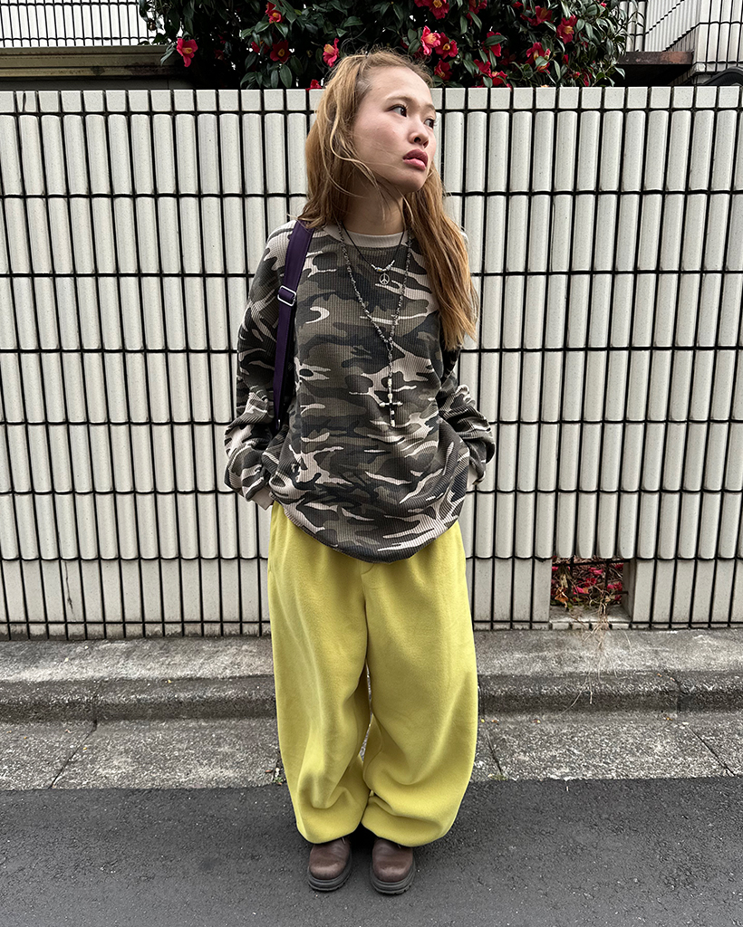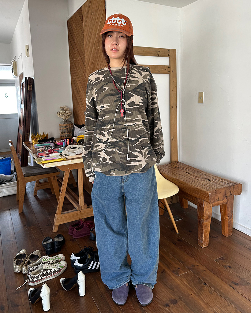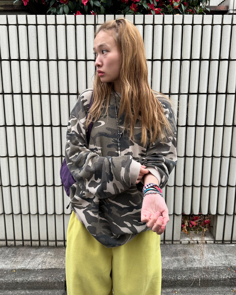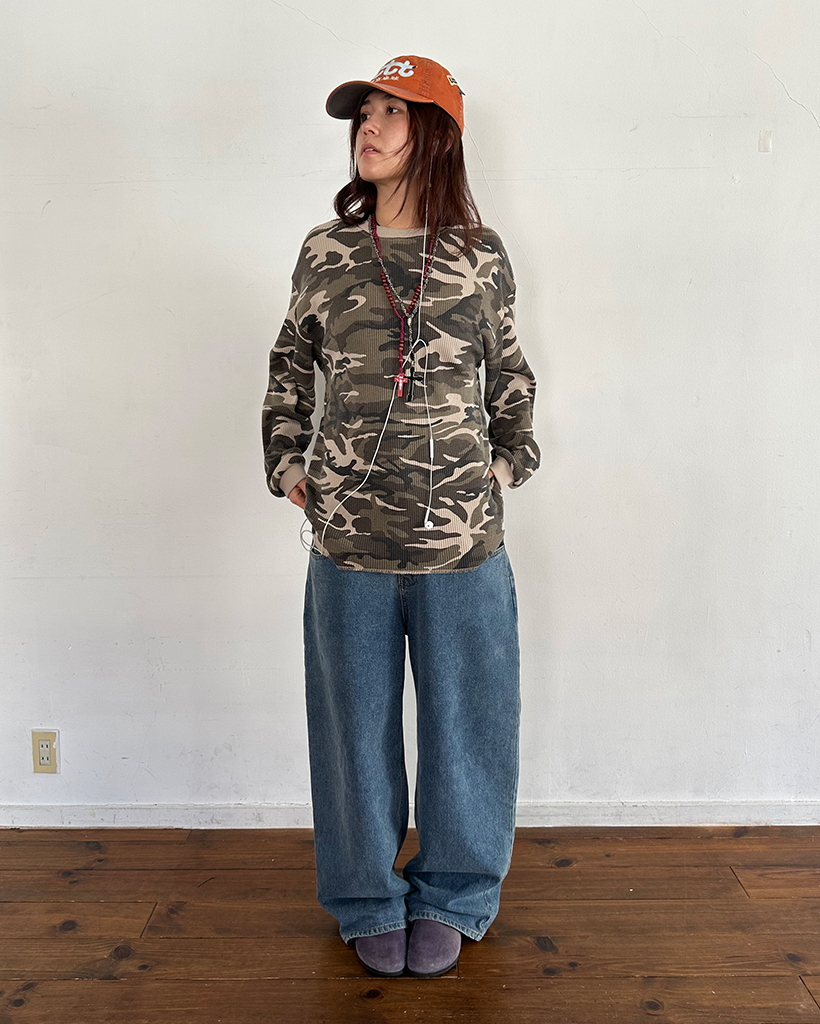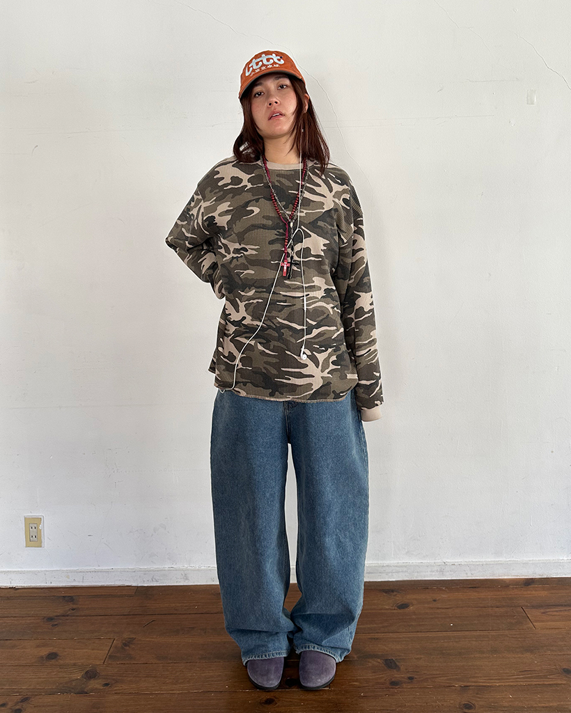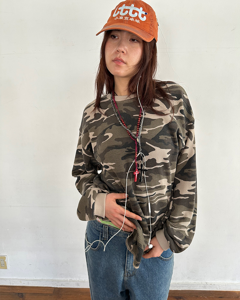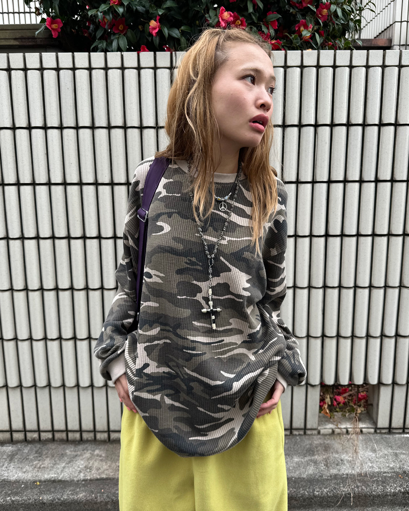 (ユニセックス)カモフラージュワッフルロングTシャツ