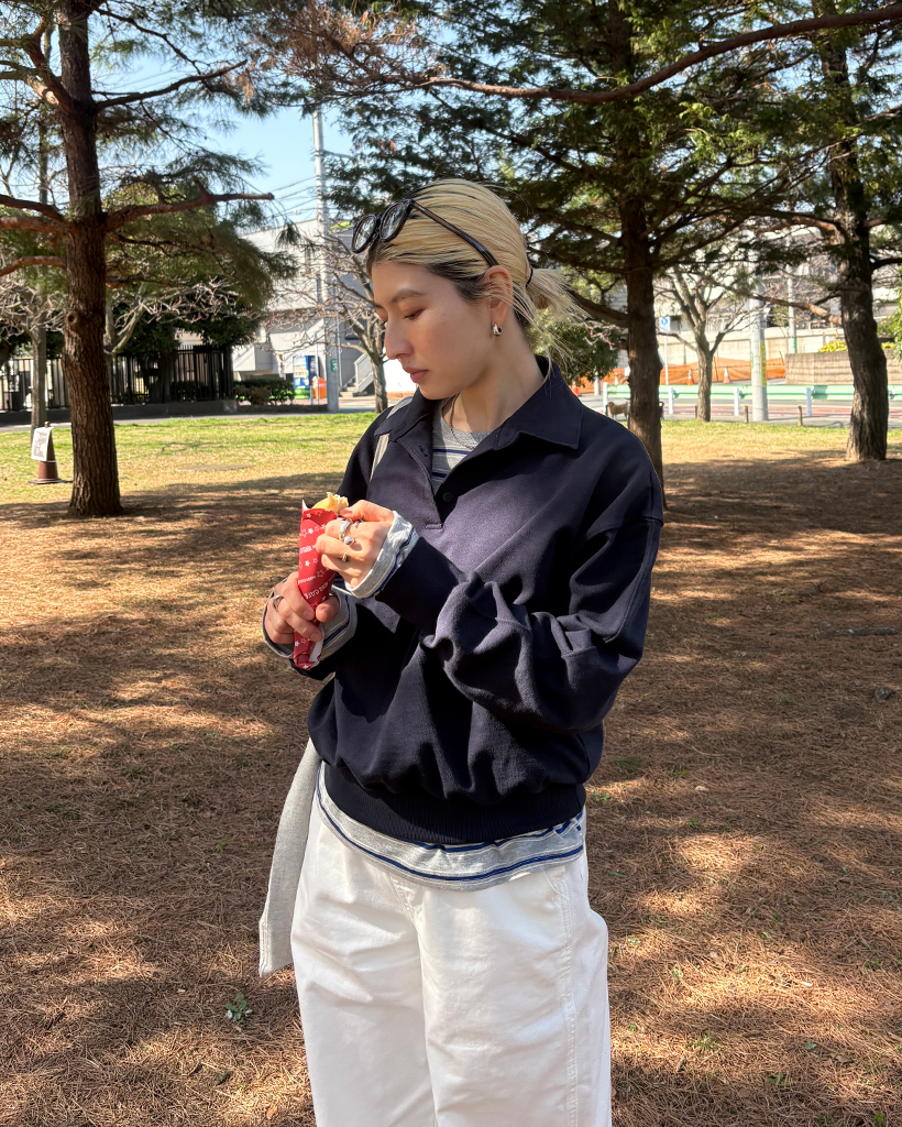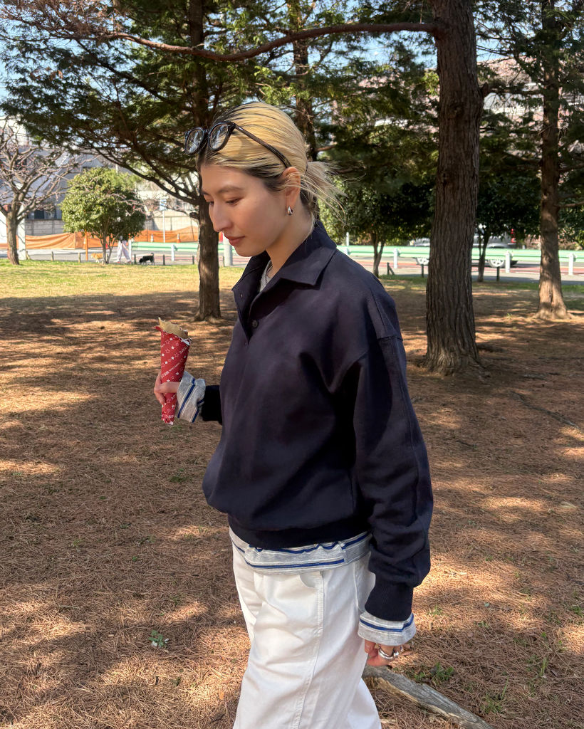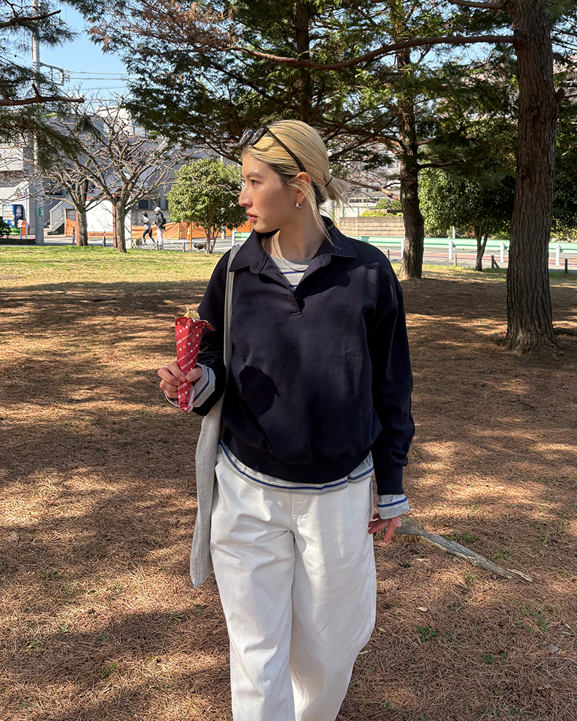 ドロップショルダーポロネックスウェットシャツ