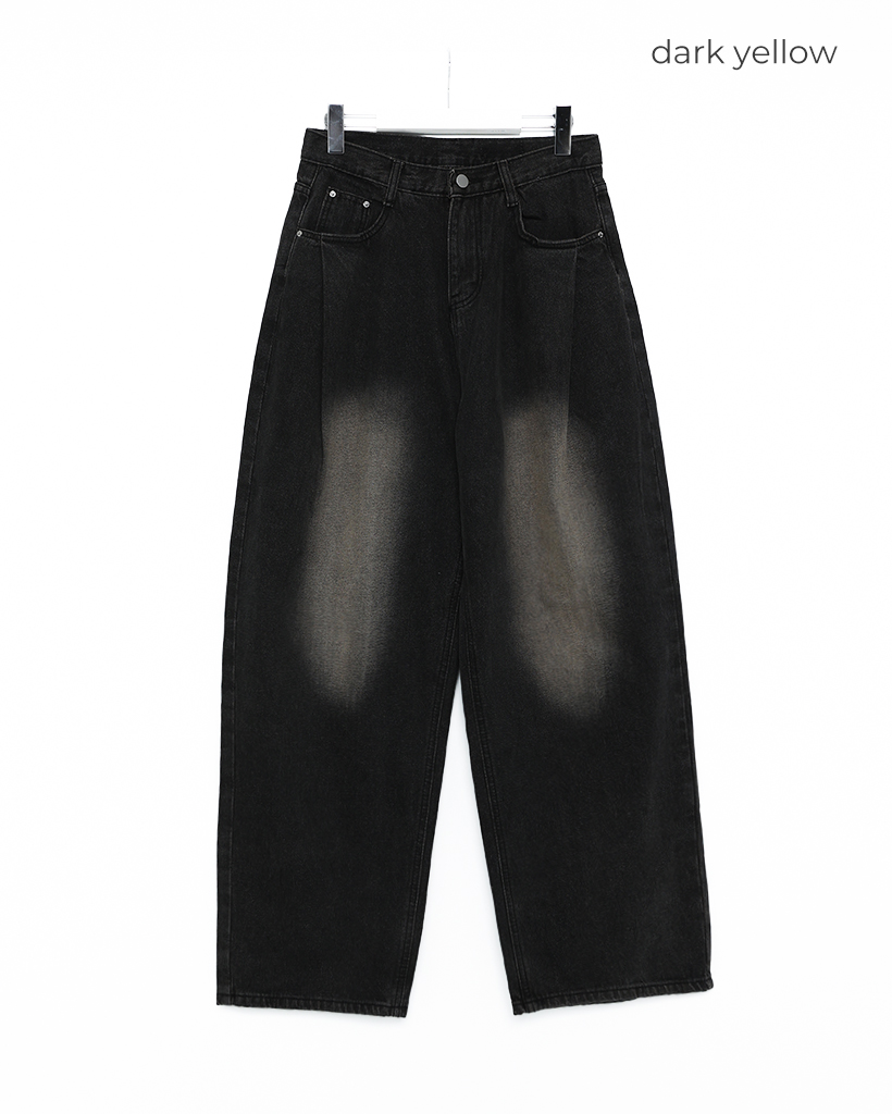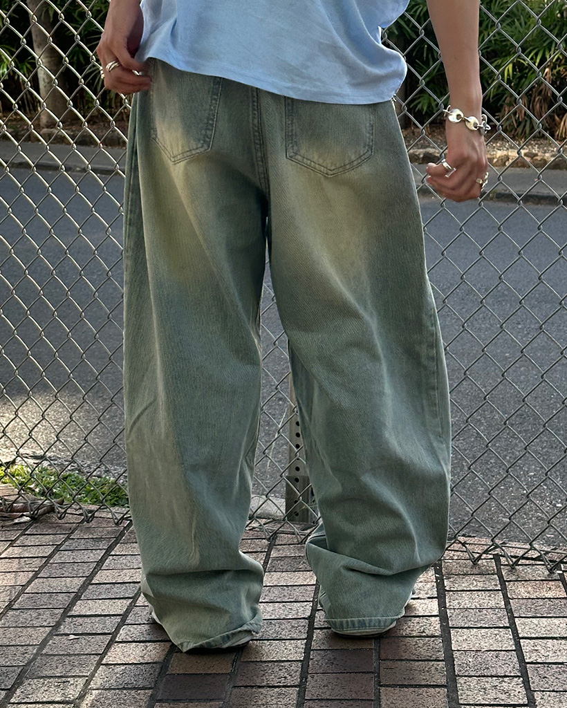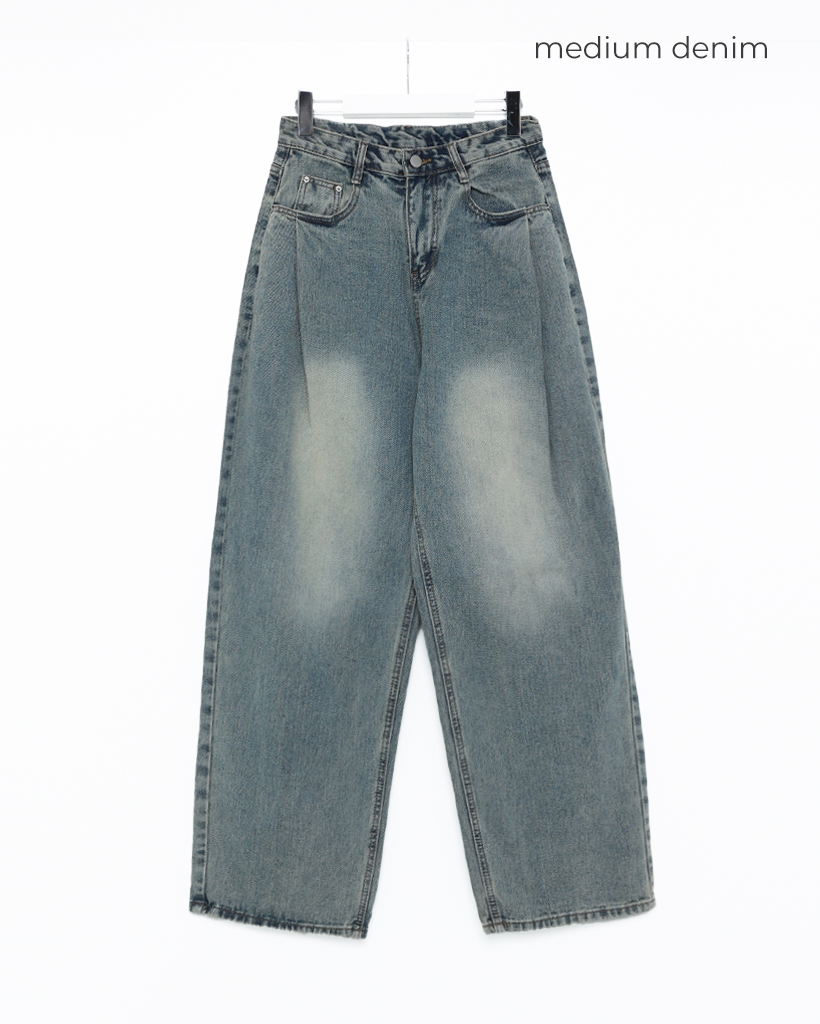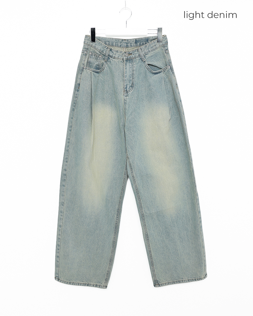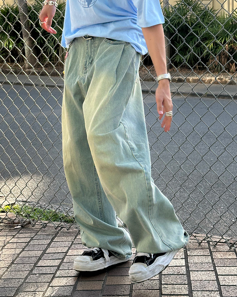 (ユニセックス)ピンタックウォッシュデニムパンツ