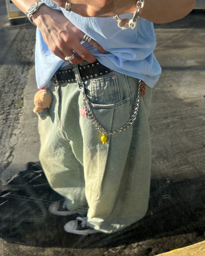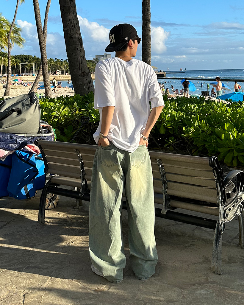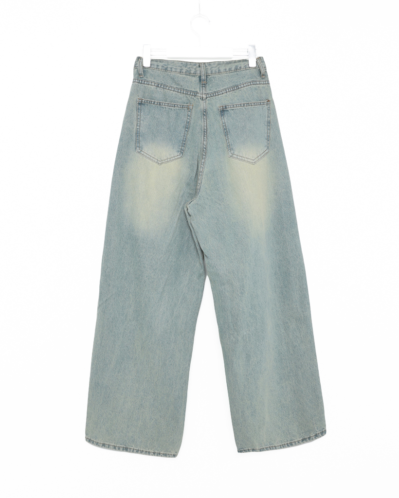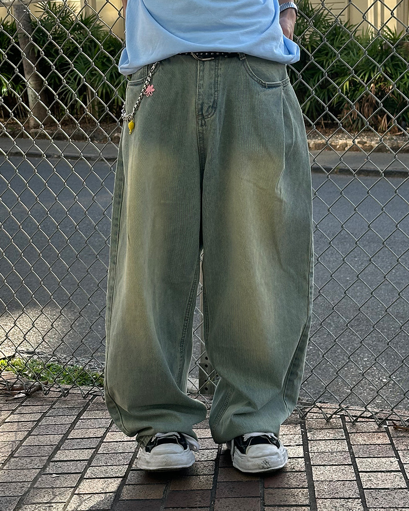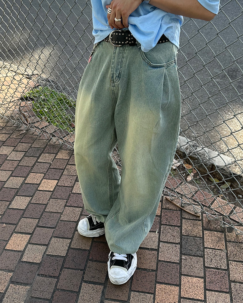 (ユニセックス)ピンタックウォッシュデニムパンツ