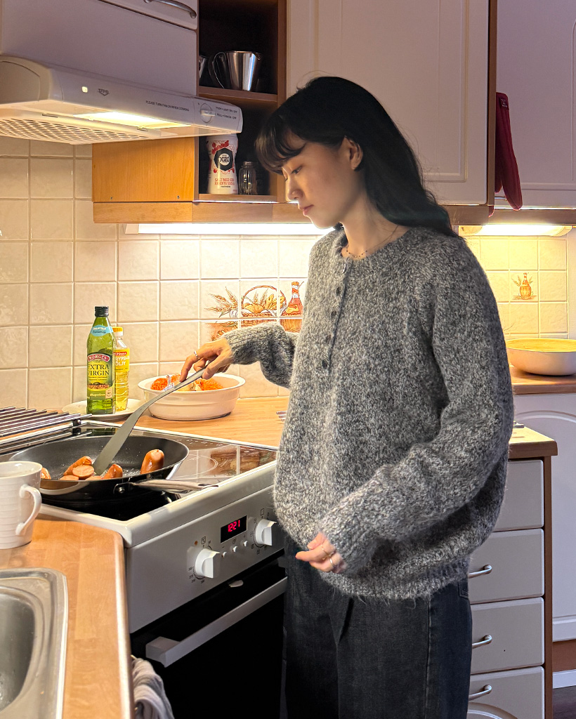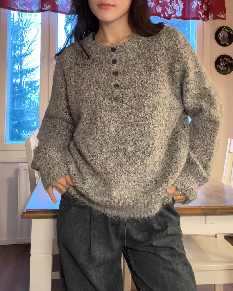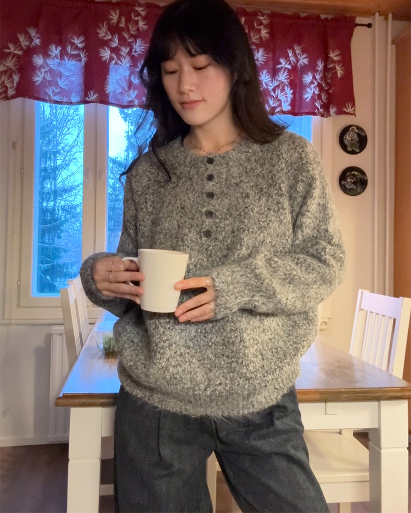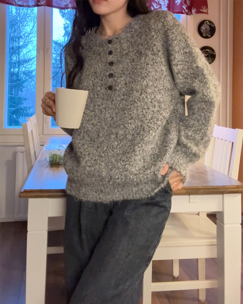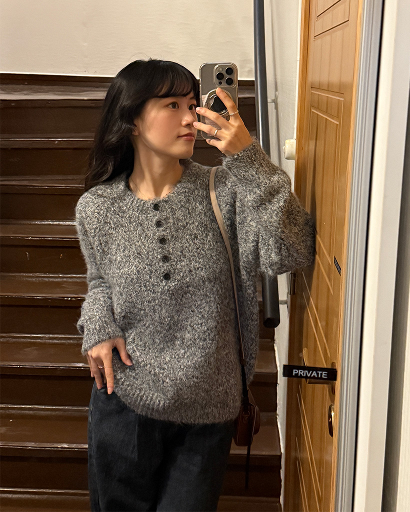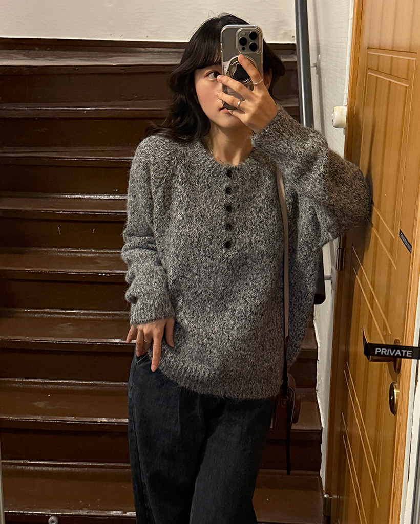 ハーフネックボタンニット