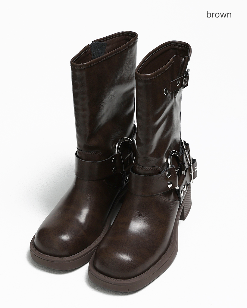 ダブルベルトラウンドハーネスミドルブーツ