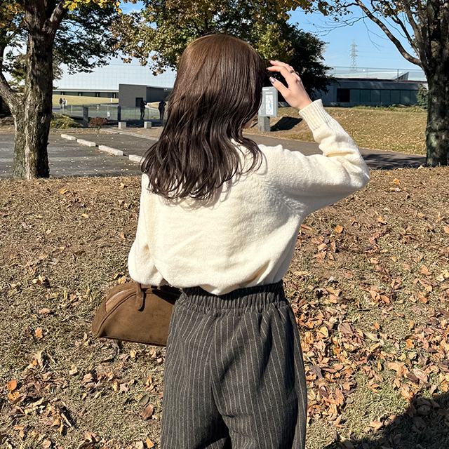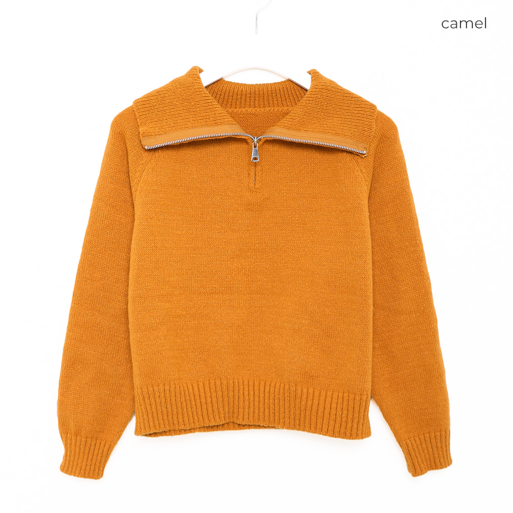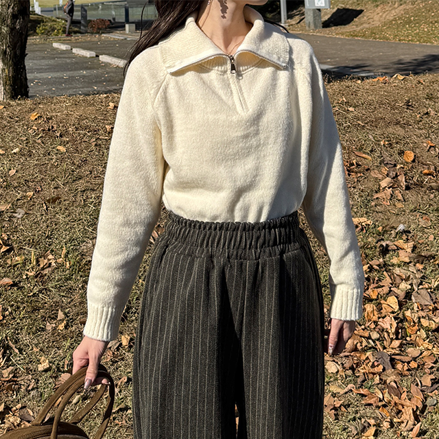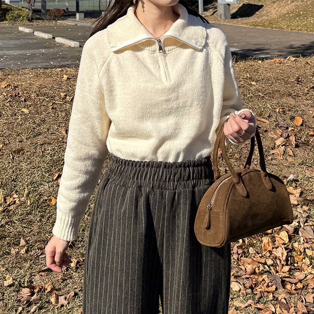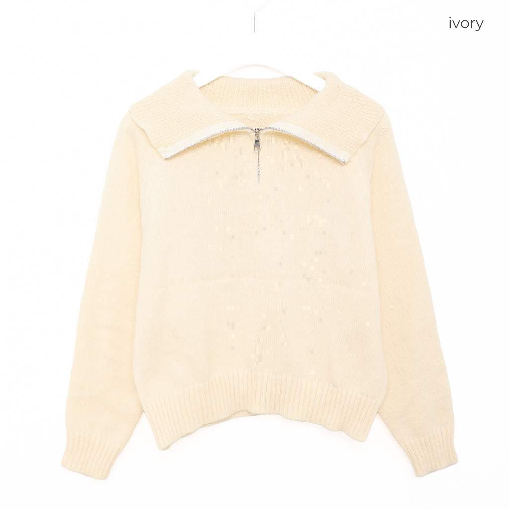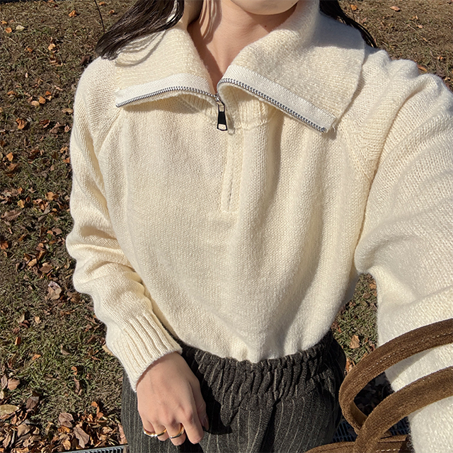 ハーフジップクロップドニット