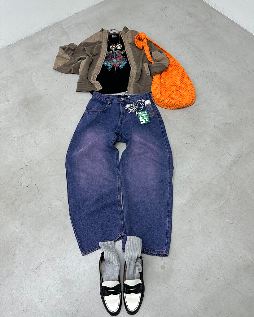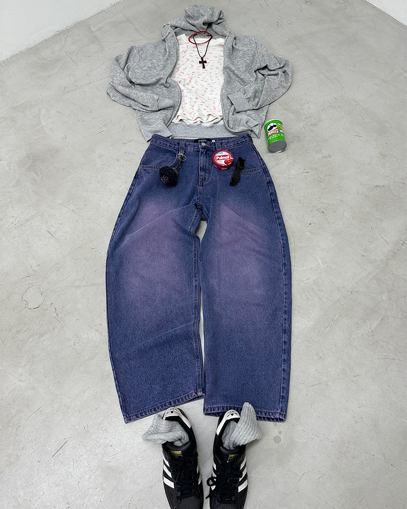 (ORIGINAL) ルーズフィットデニムパンツ (purple)