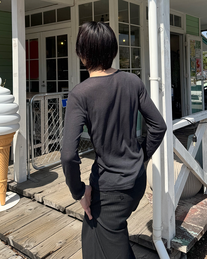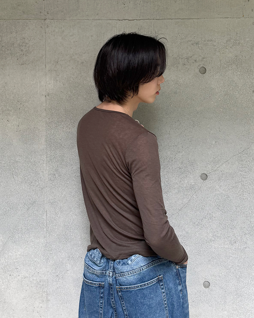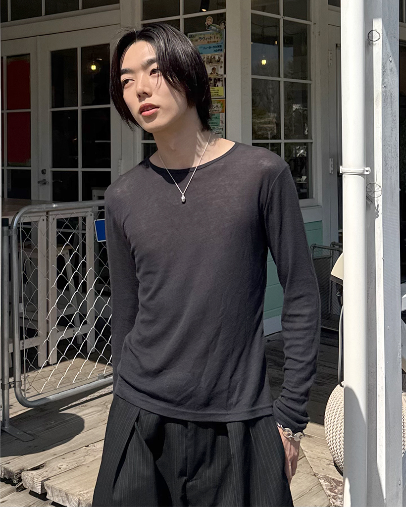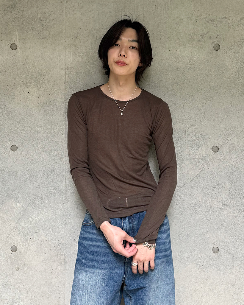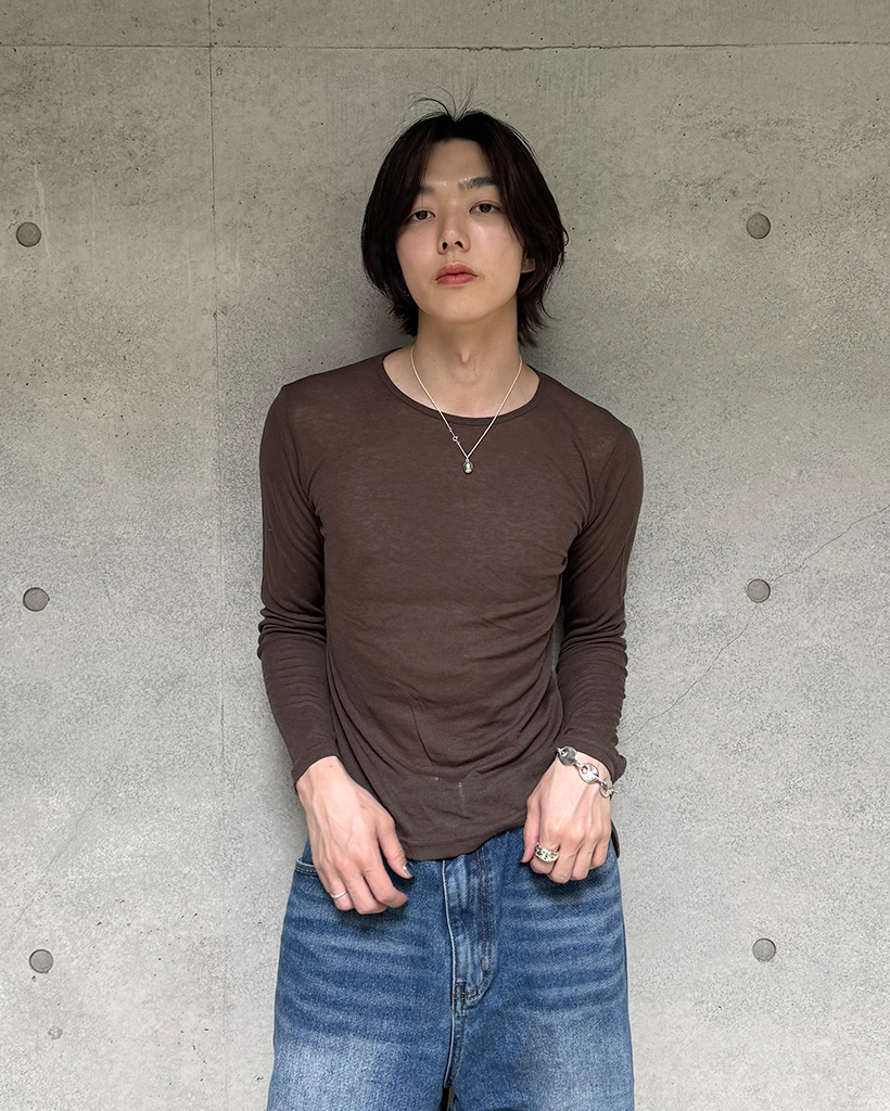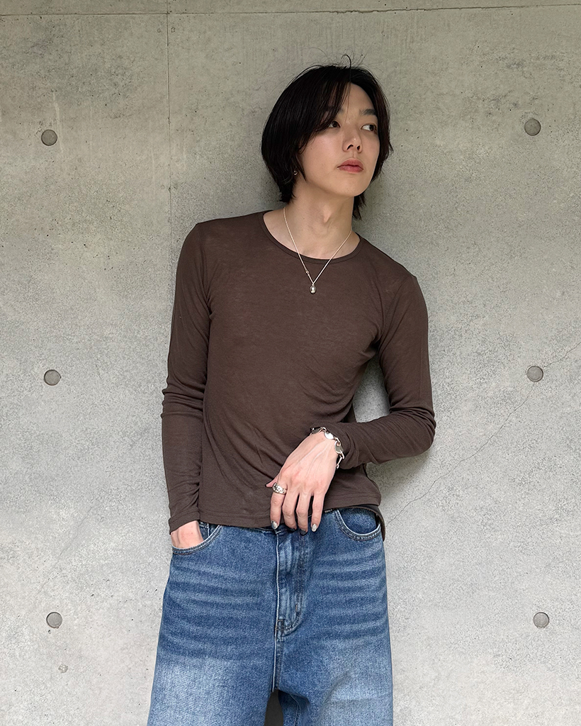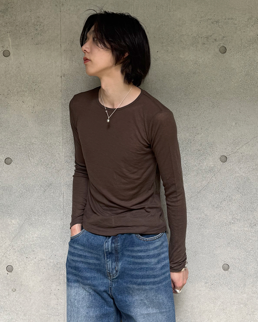 (ユニセックス) ベーシックラウンドネックテンセルロングスリーブTシャツ