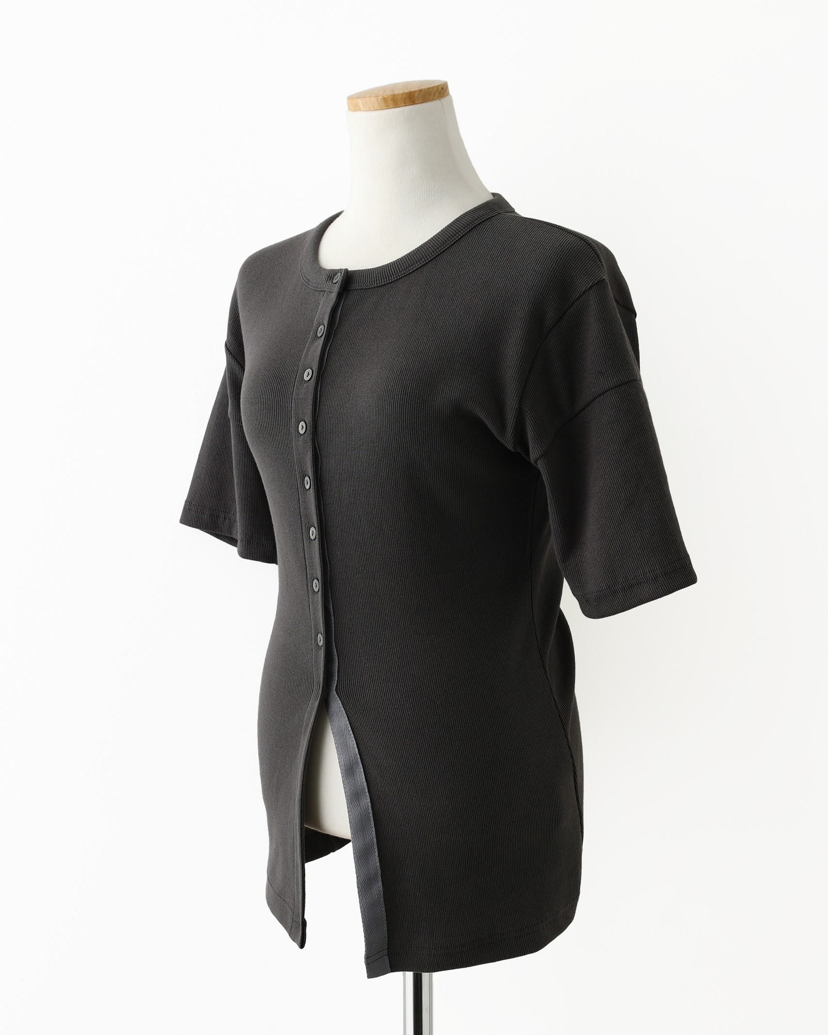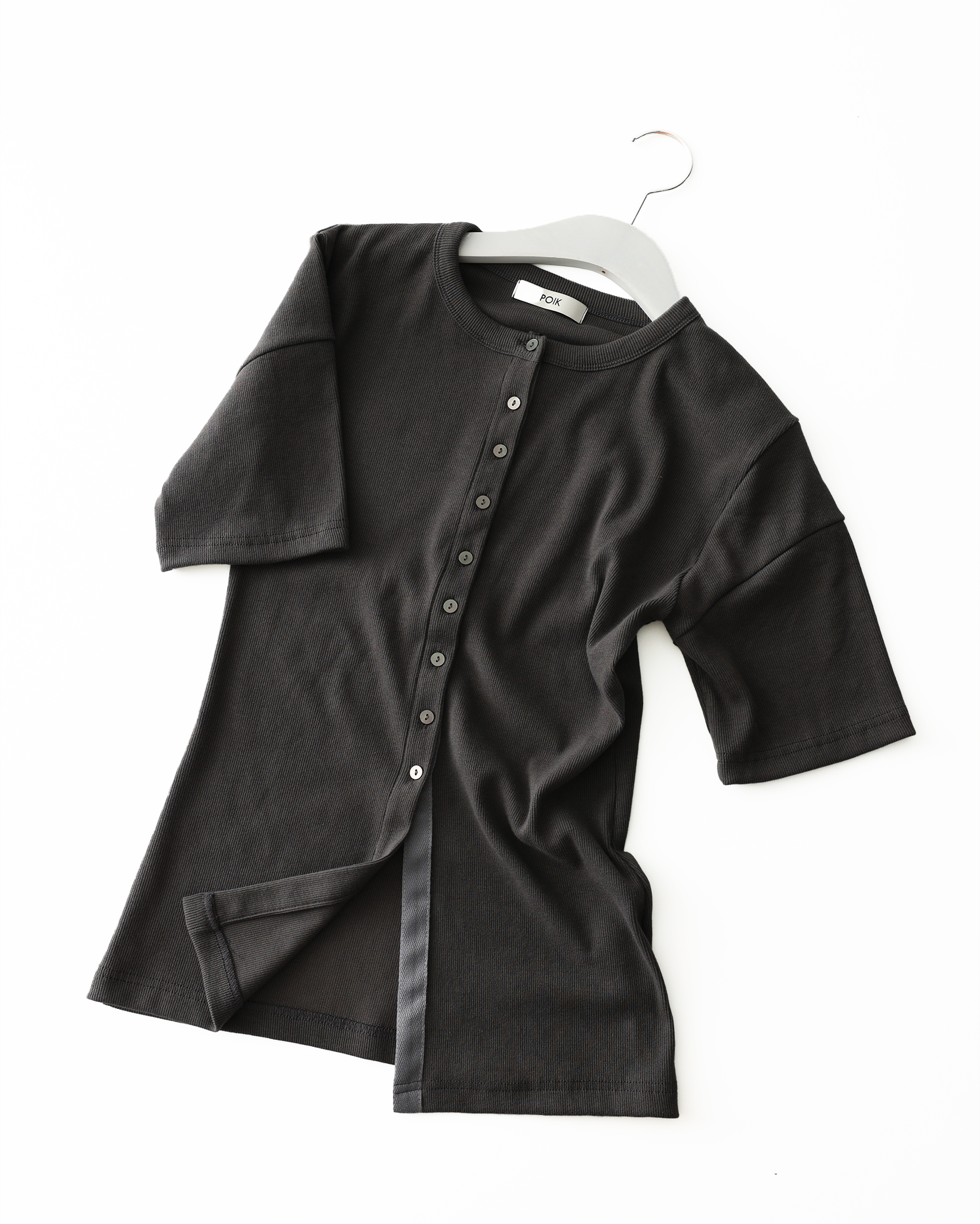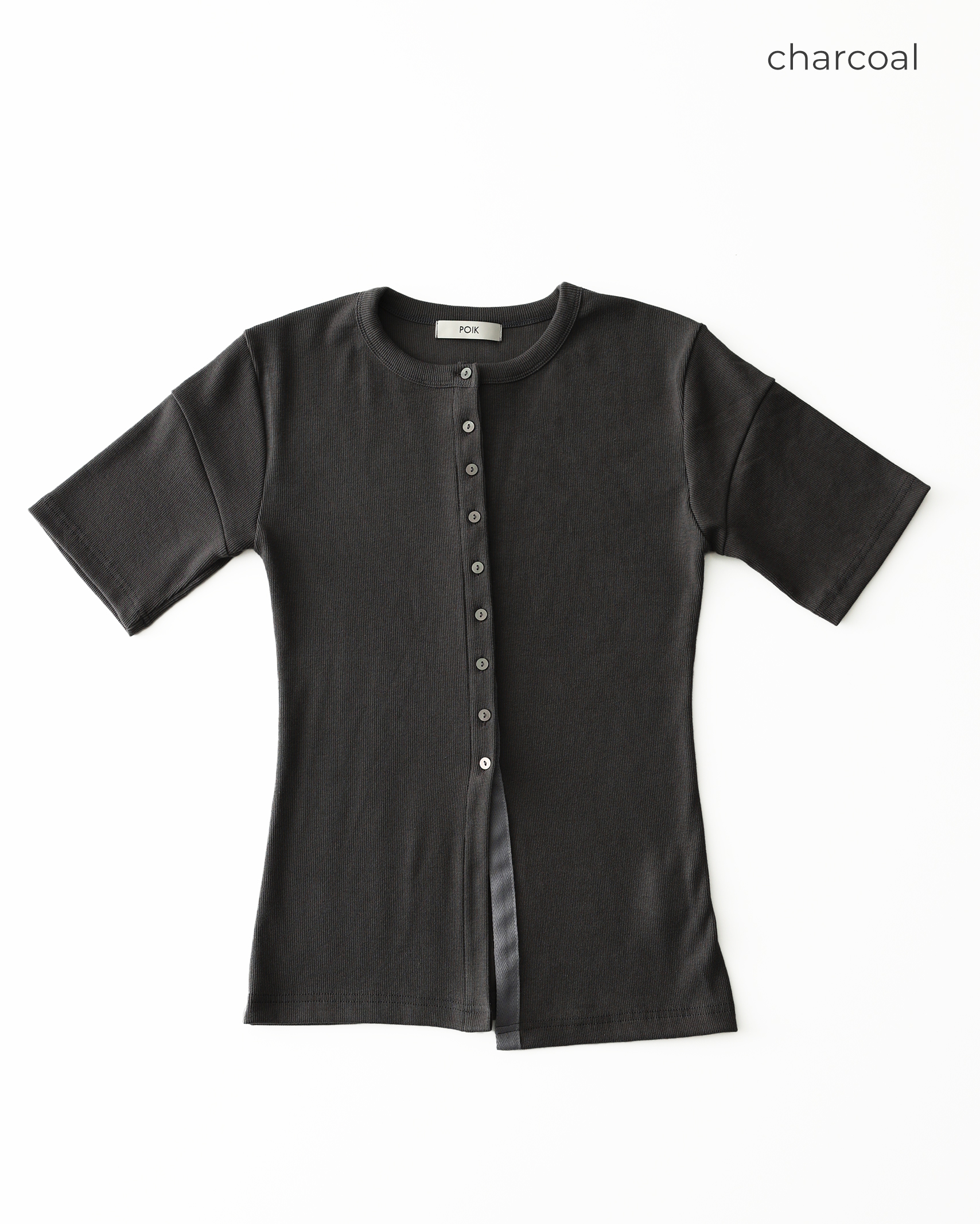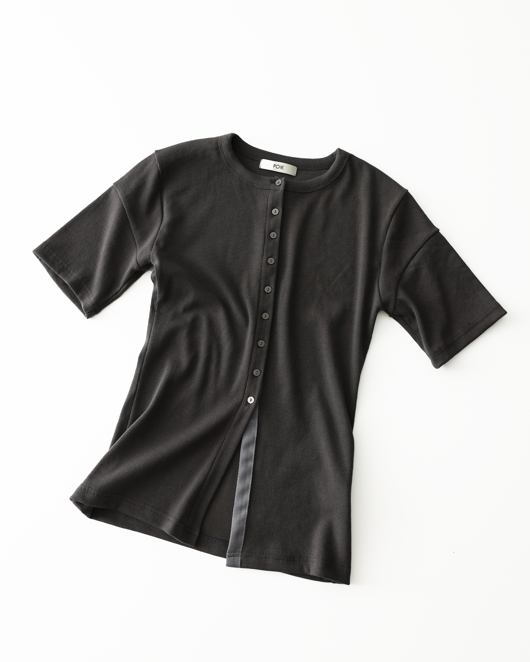 (ORIGINAL) 切替ラインスリムボタンTシャツ