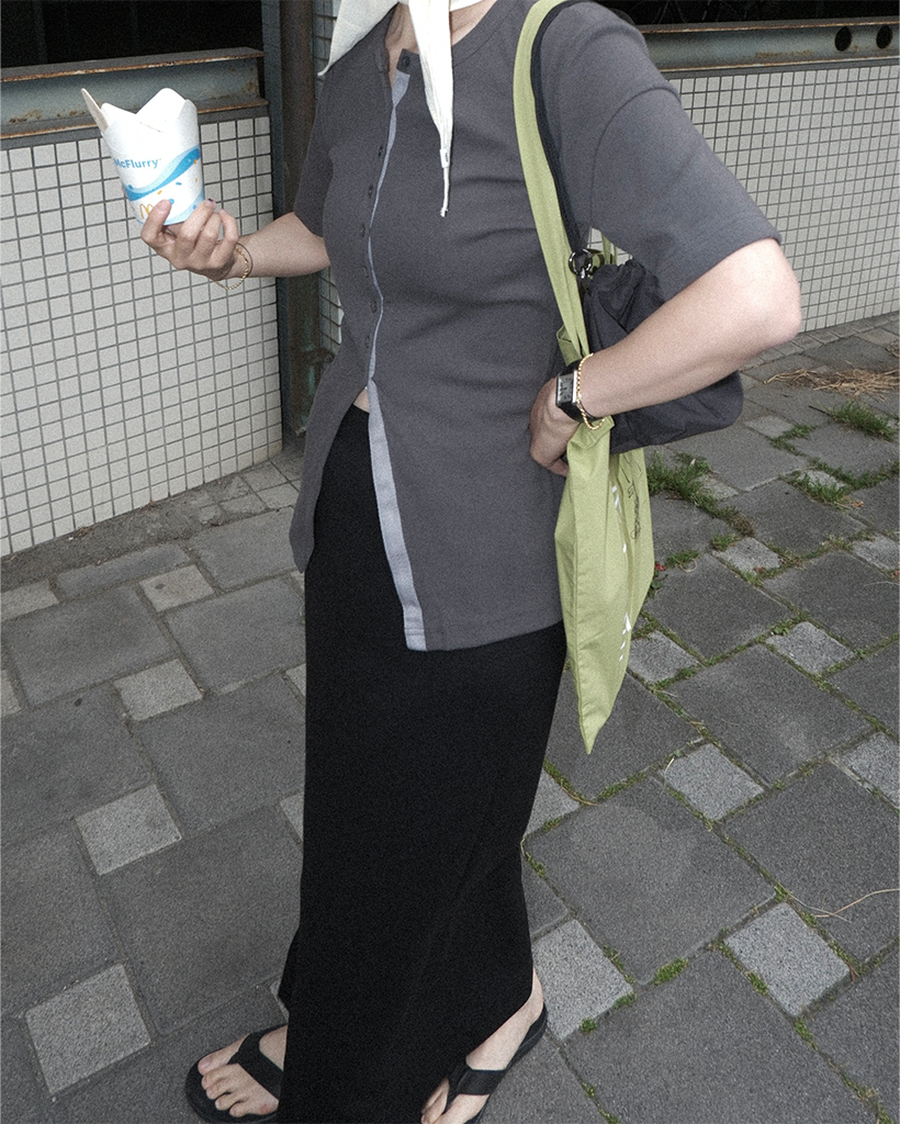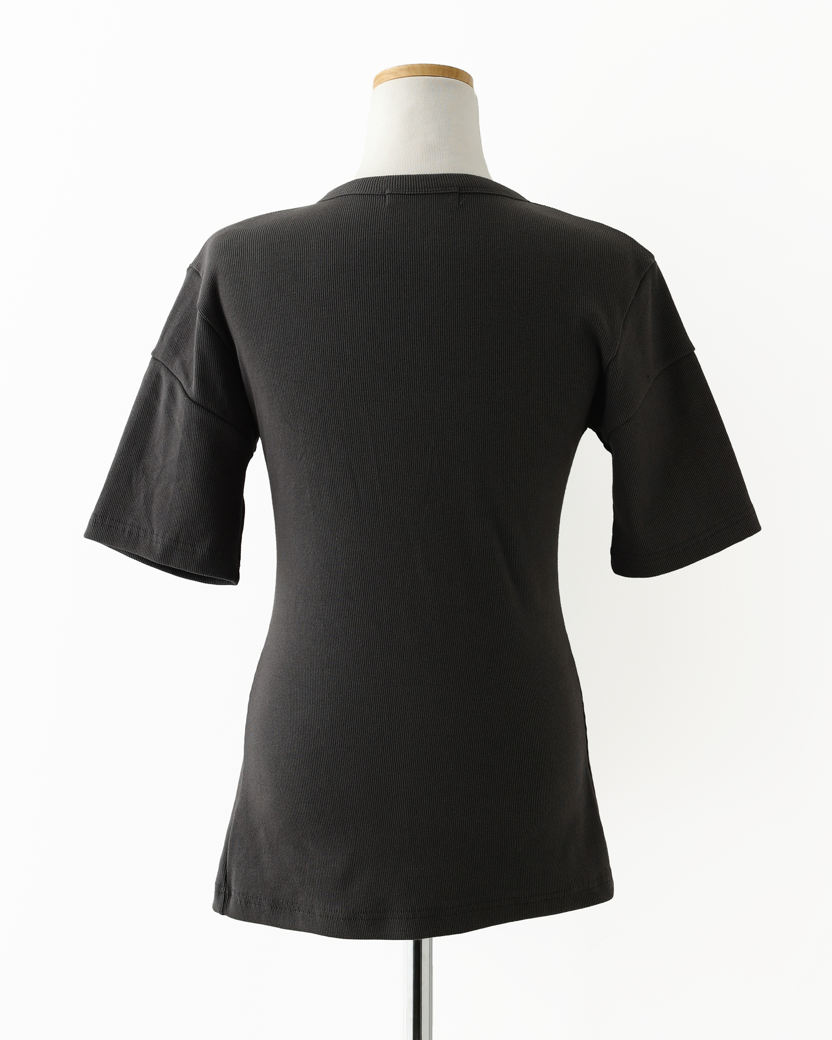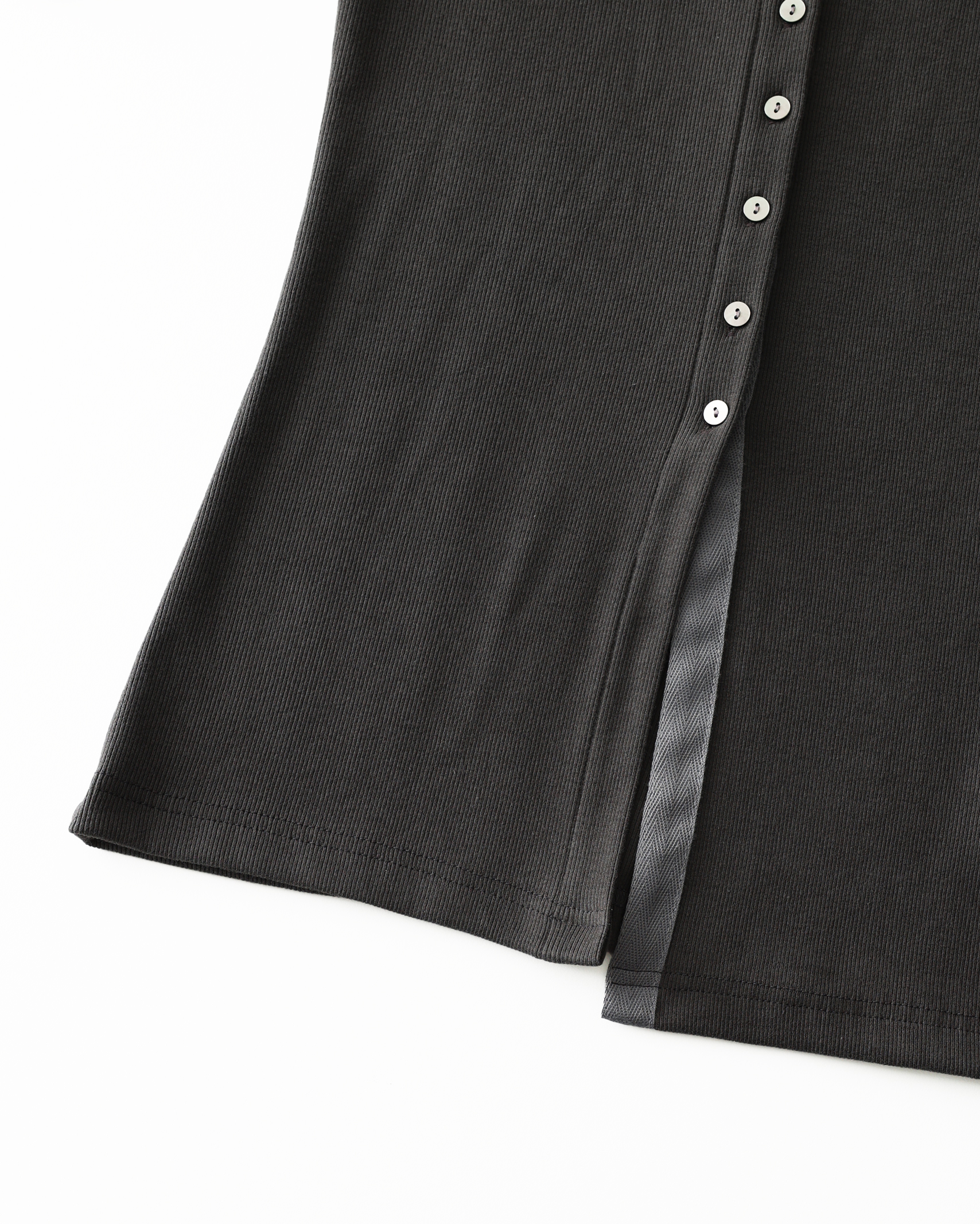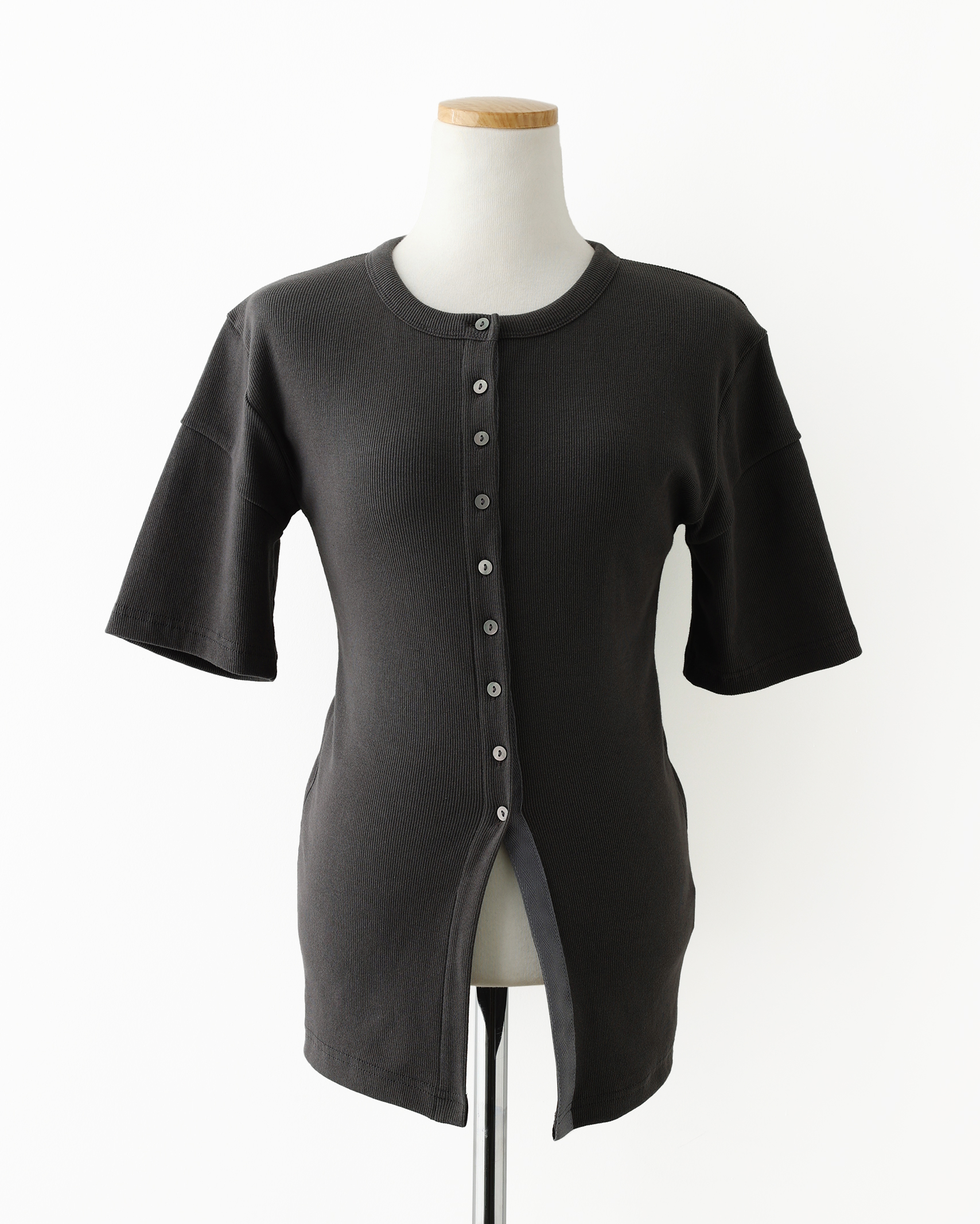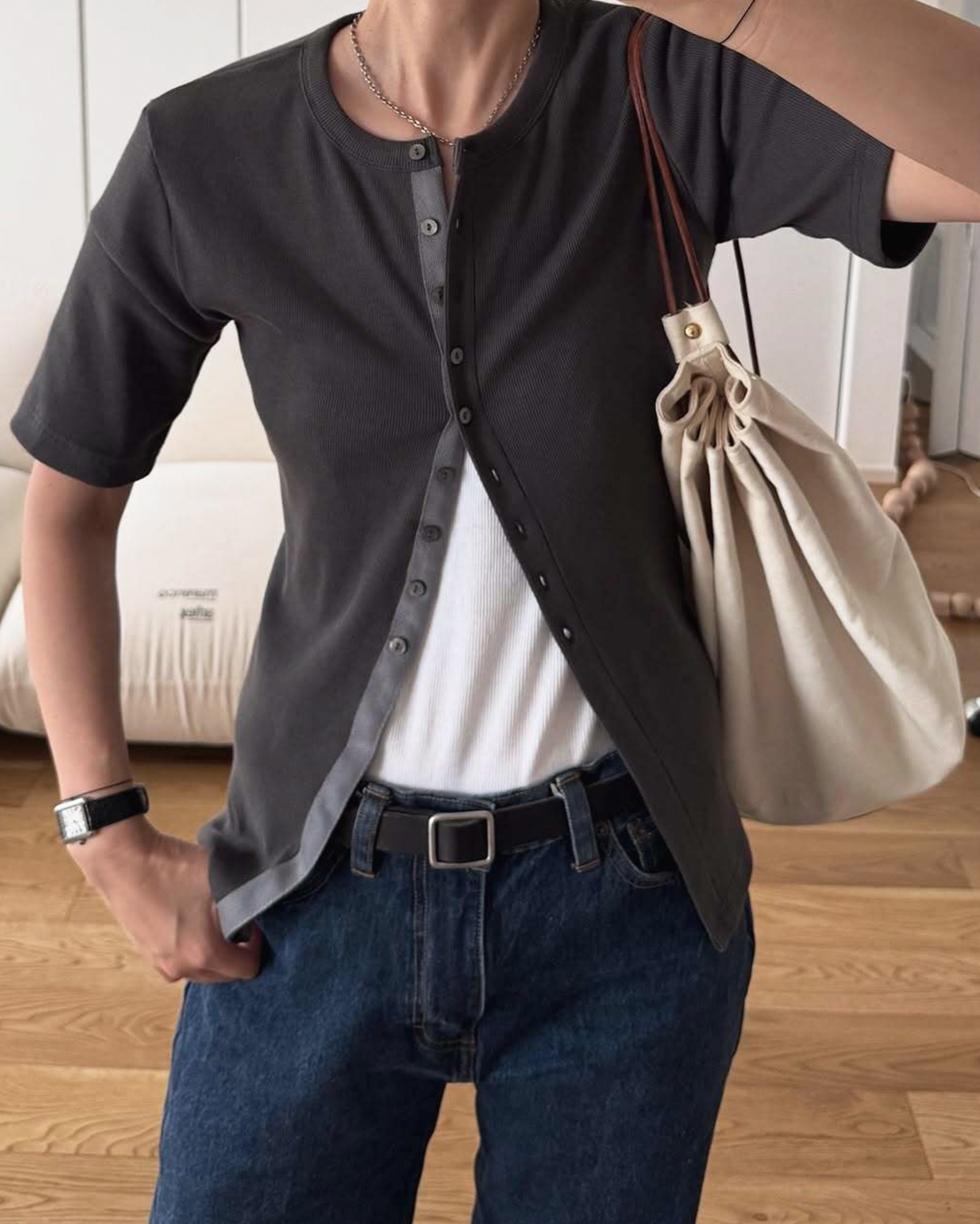 (ORIGINAL) 切替ラインスリムボタンTシャツ