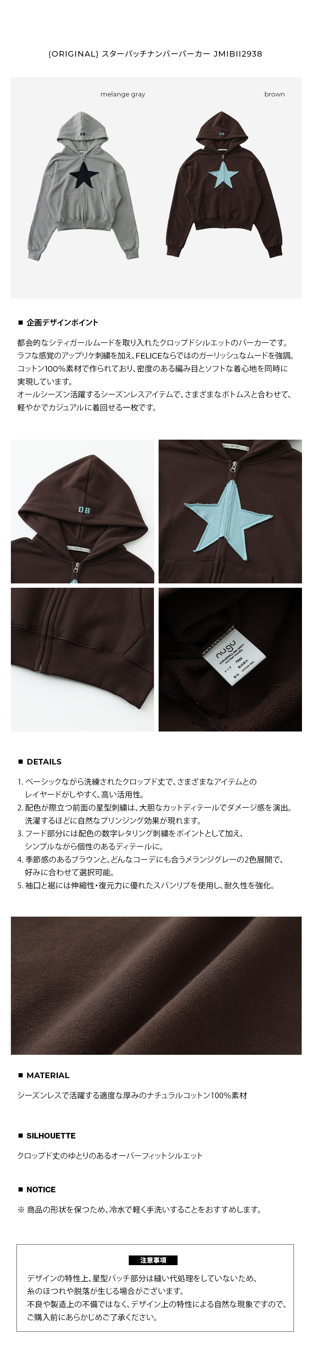 [3回再販](ORIGINAL) スターパッチナンバーパーカー