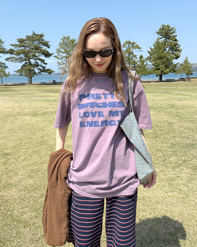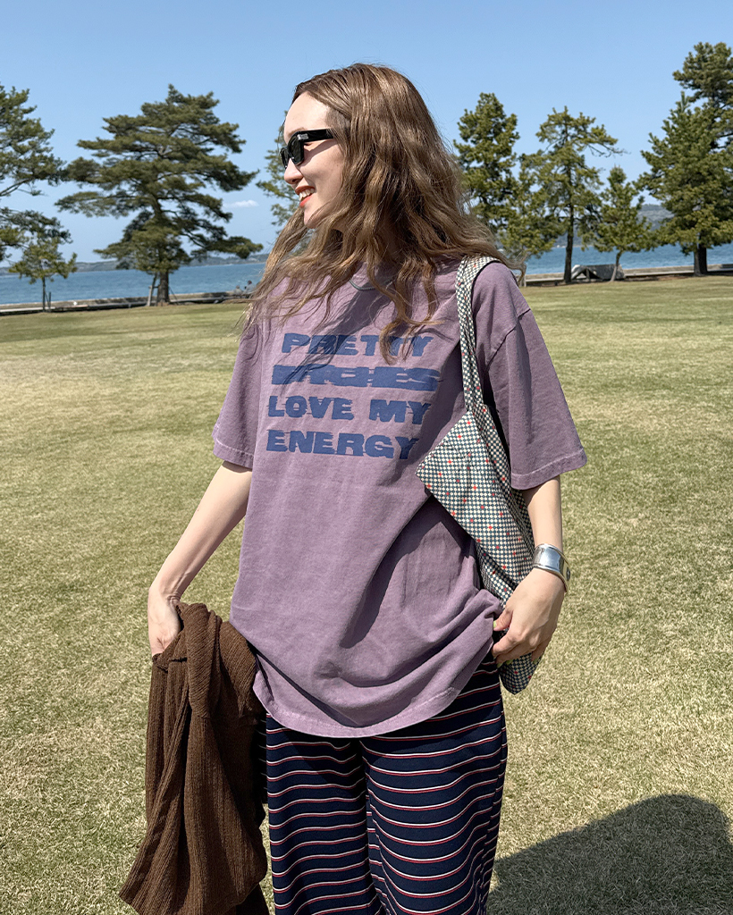 (ユニセックス)レタリングオーバーフィットハーフTシャツ