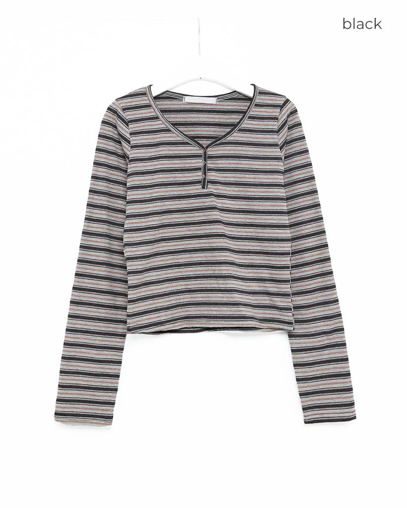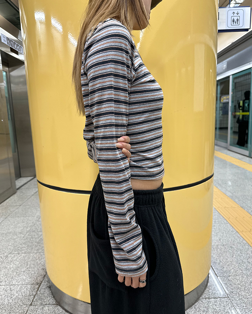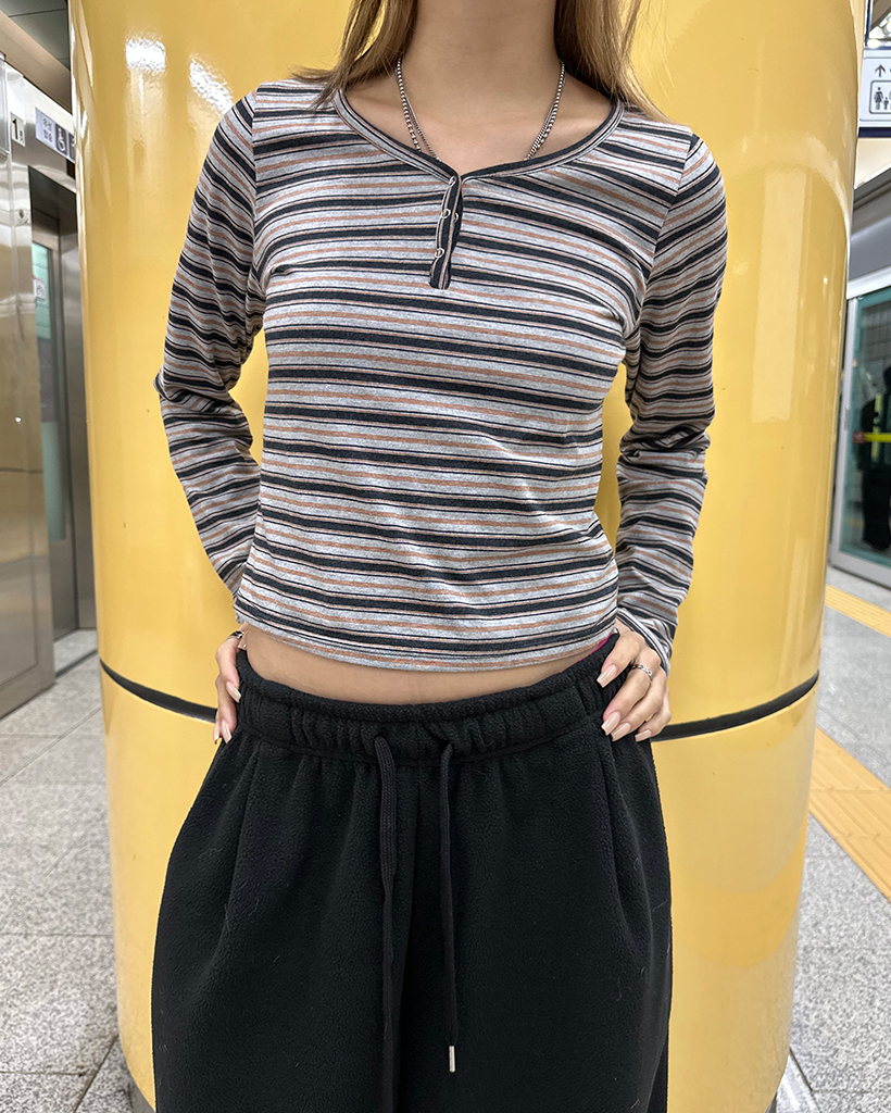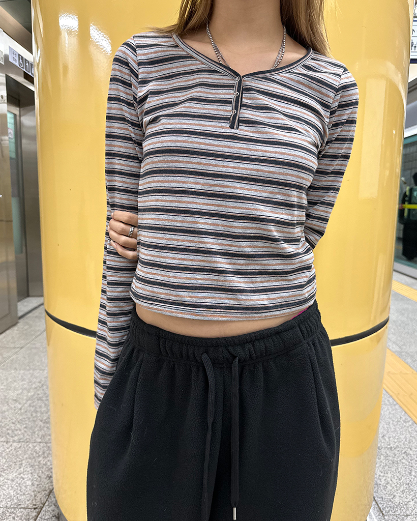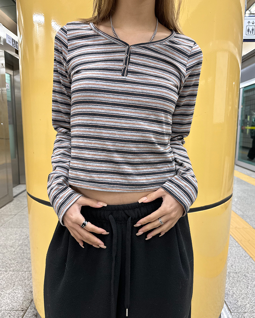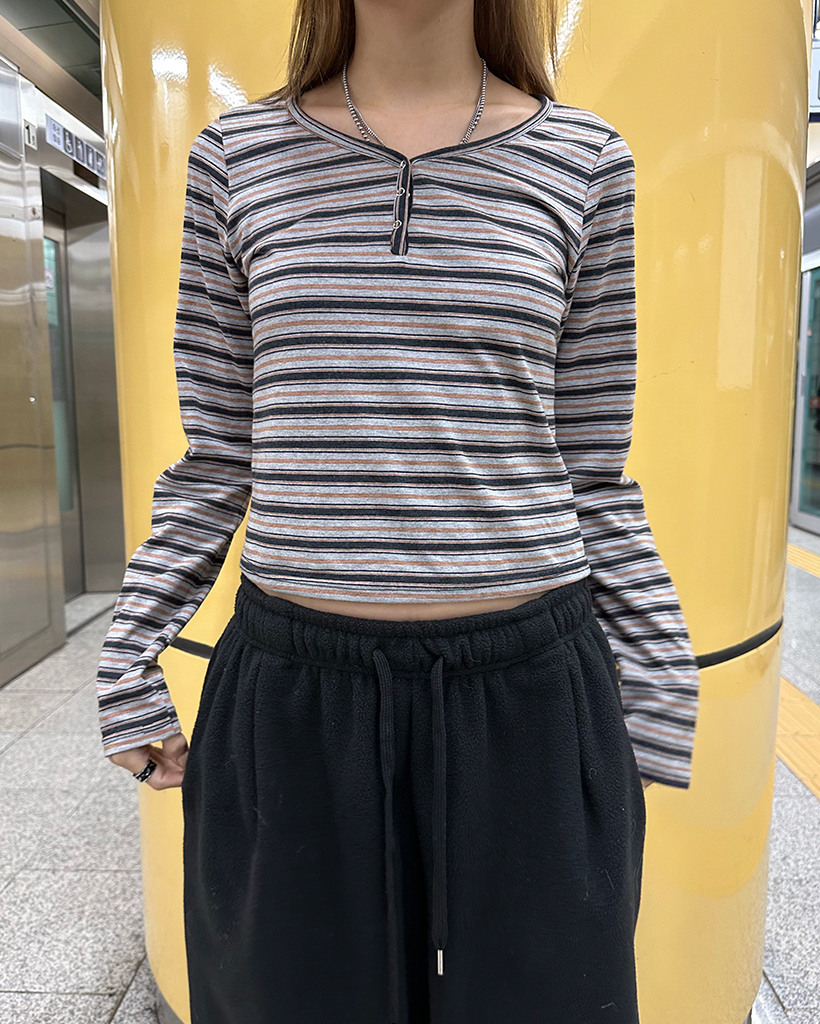 ヘンリーネックダブルボーダーセミクロップドカットソー