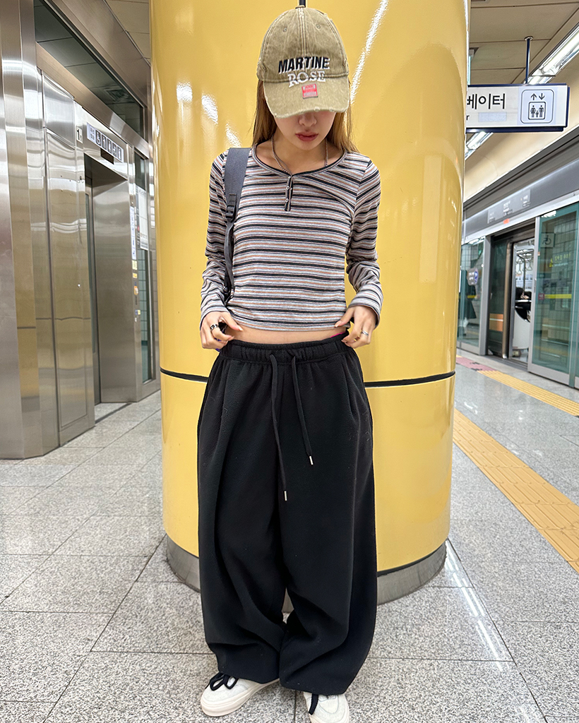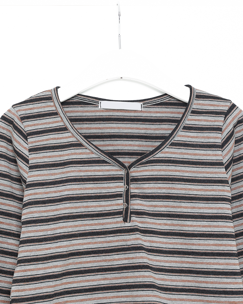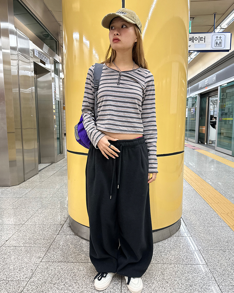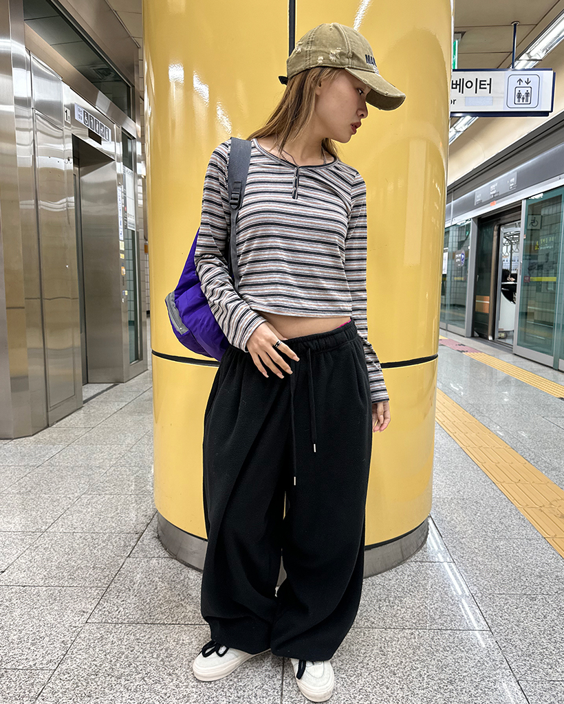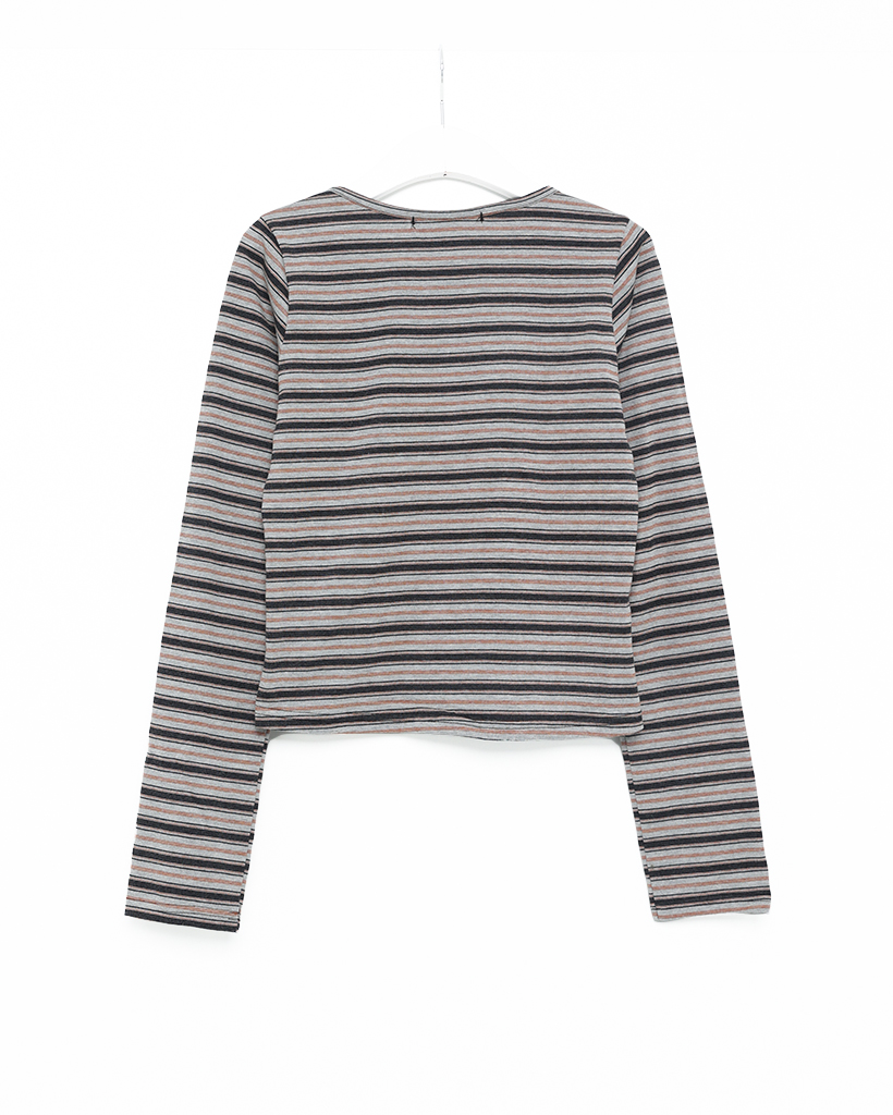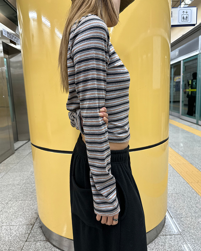 ヘンリーネックダブルボーダーセミクロップドカットソー