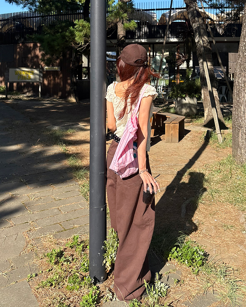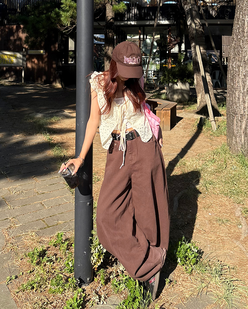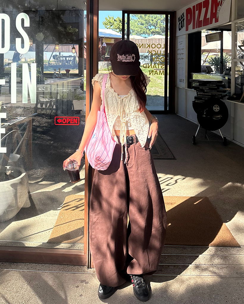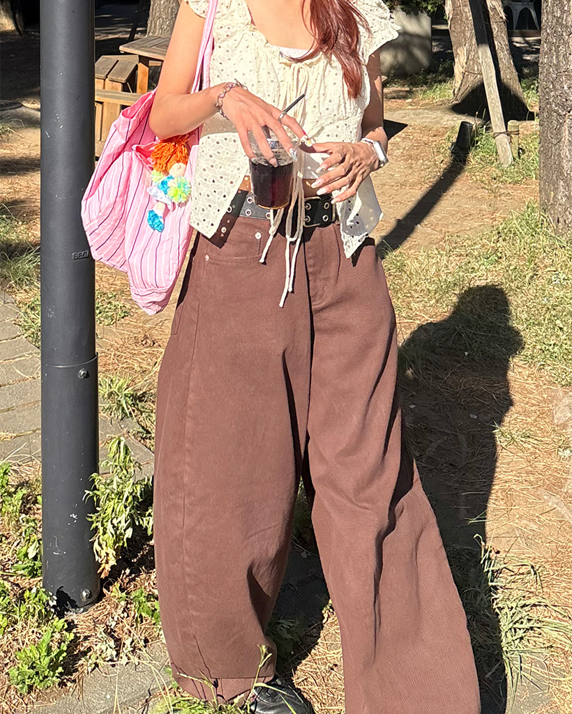(ユニセックス)ブラウンコットンバルーンパンツ