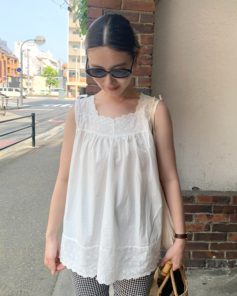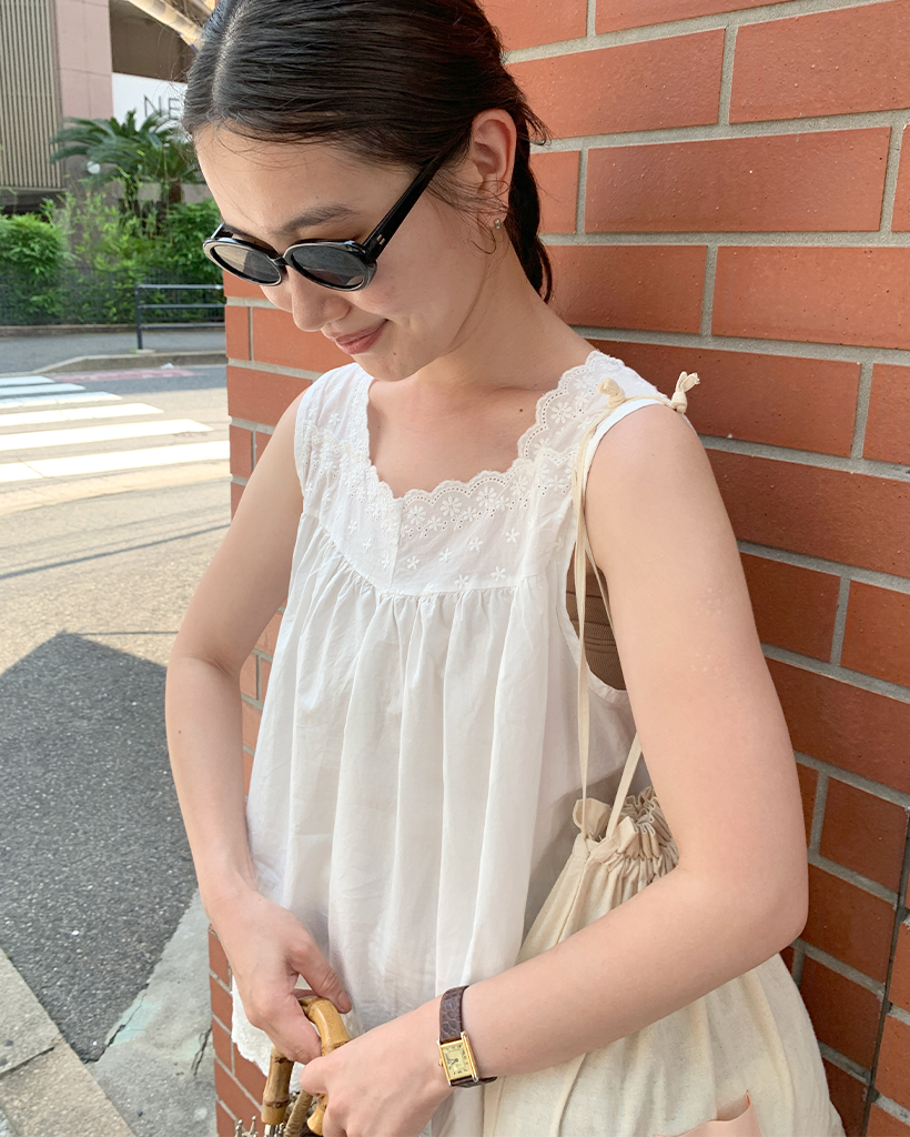 レーススクエアシャーリングスリーブレス