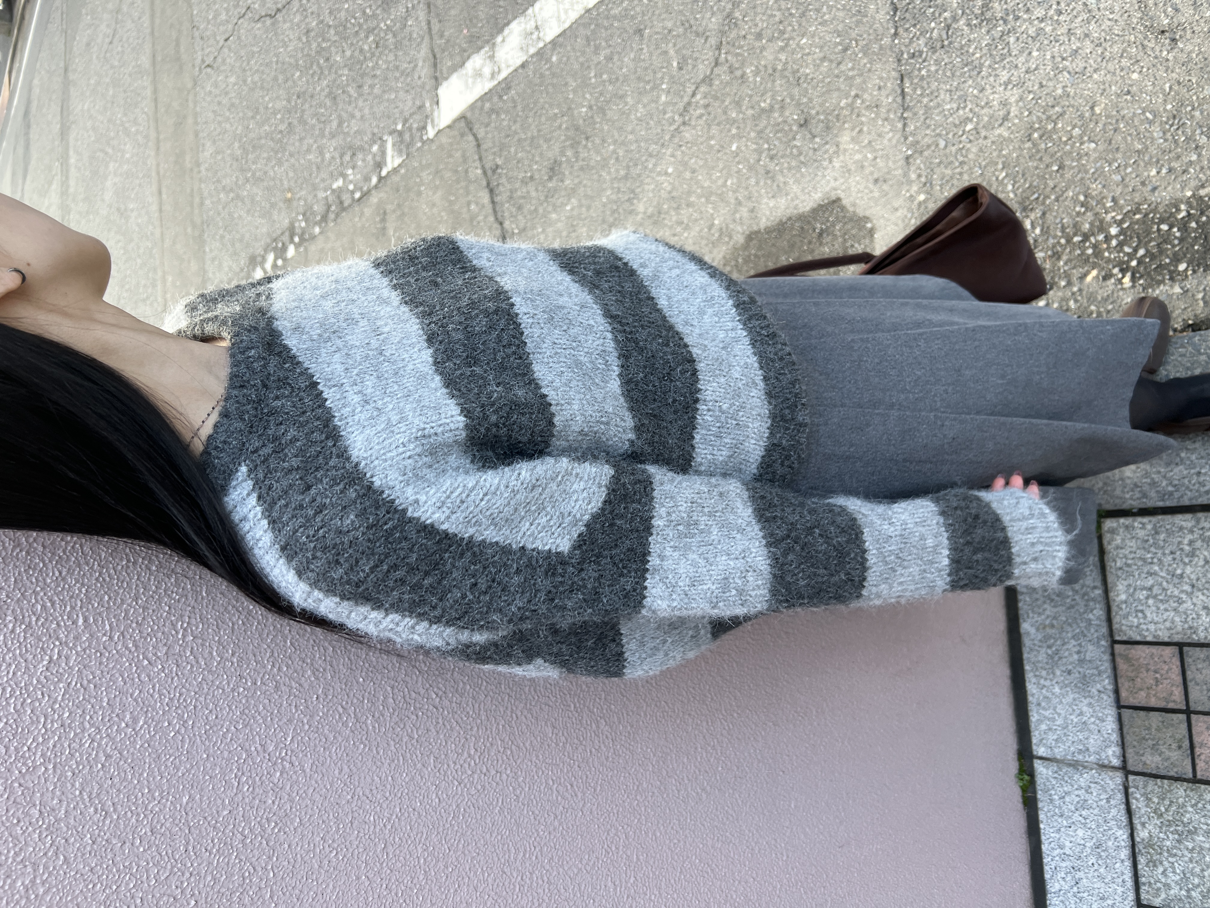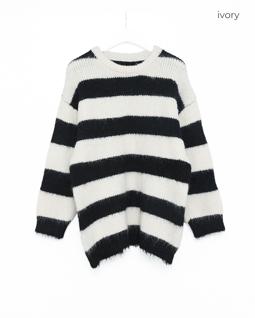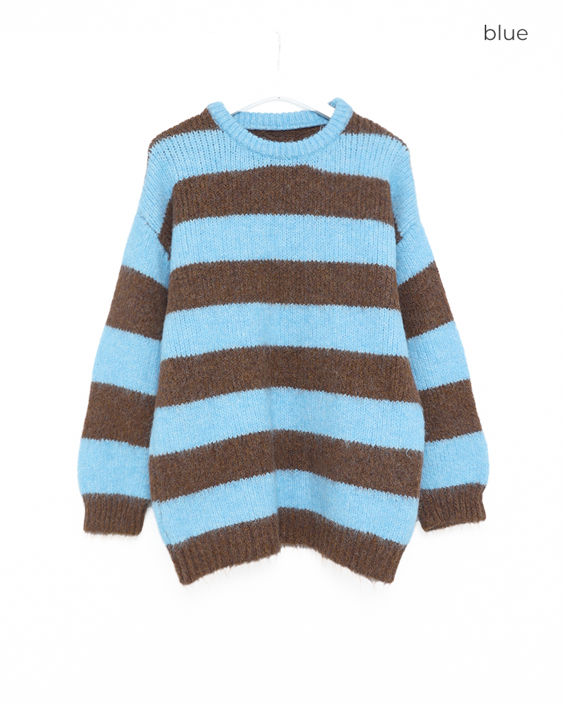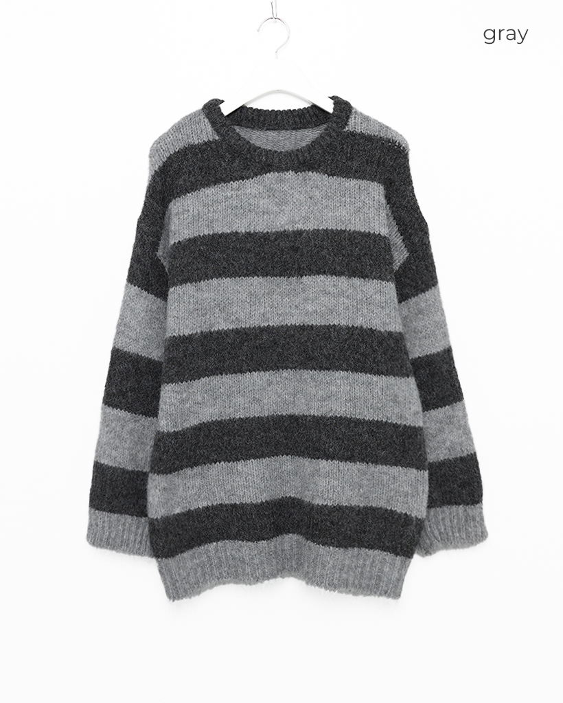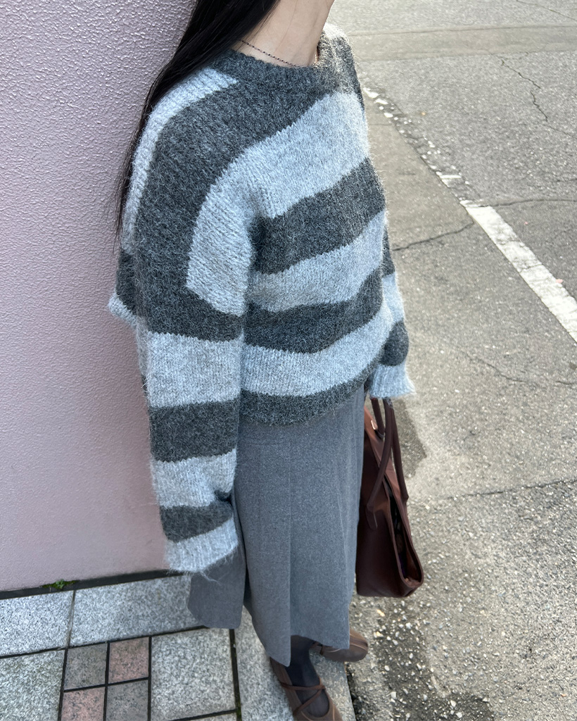 ボーダーバイカラー長袖ニット