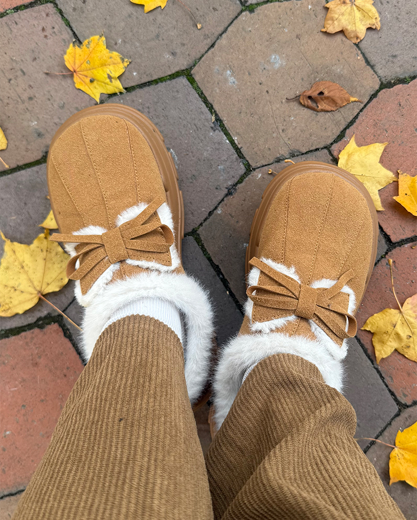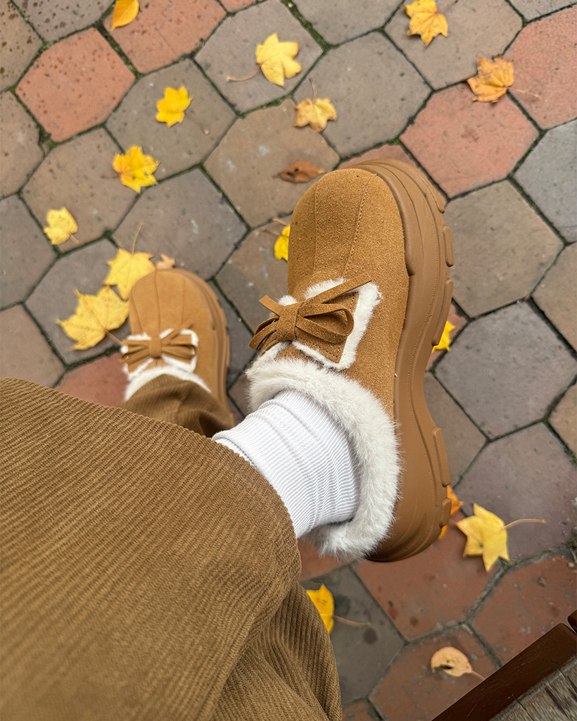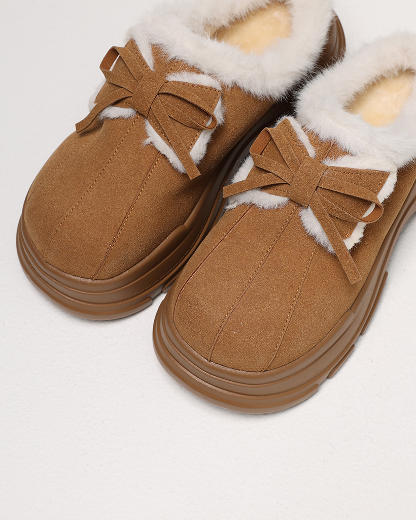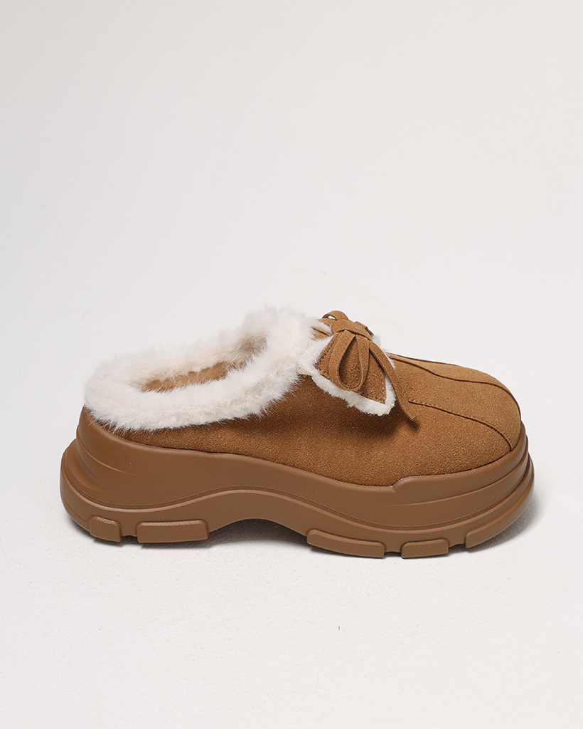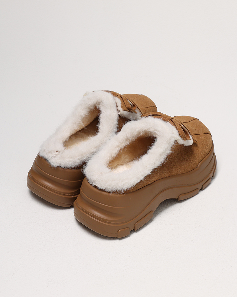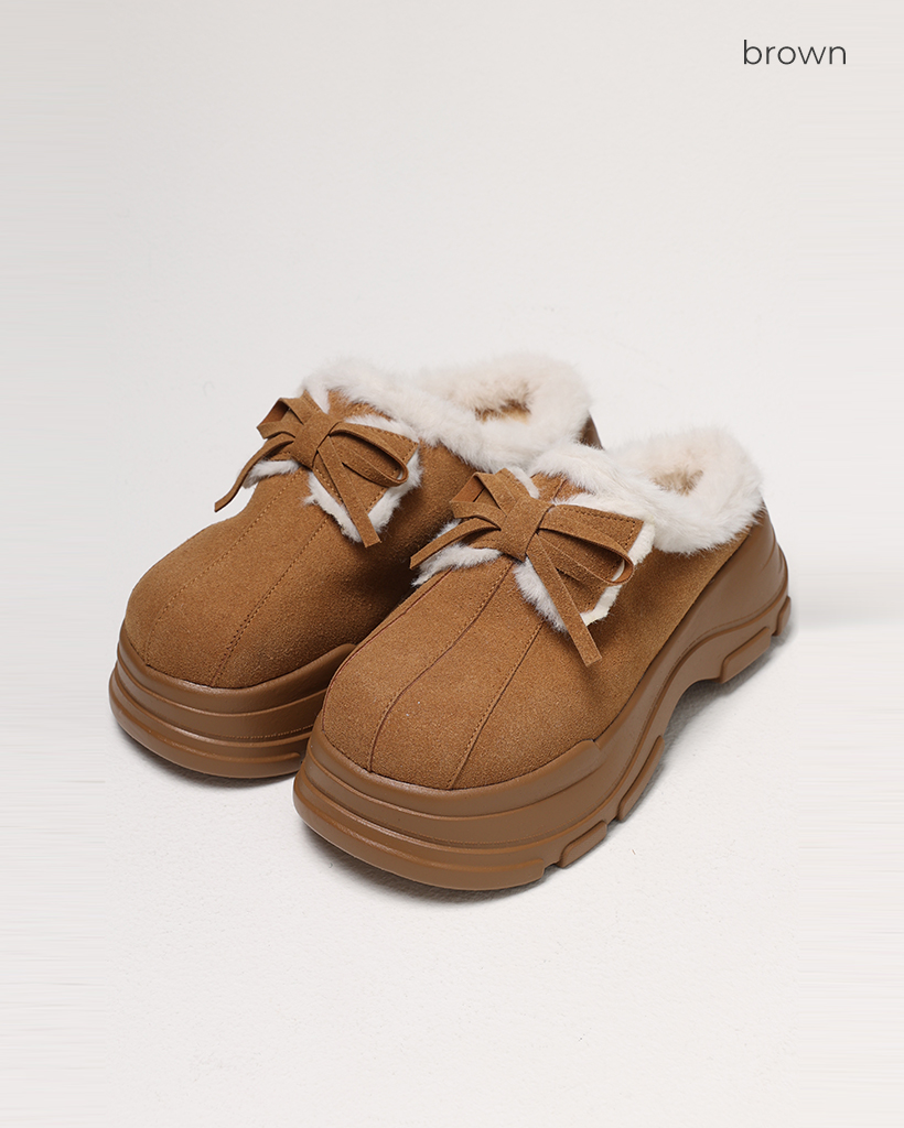 ダブルリボンムートンボールドハイソールクロッグサンダル