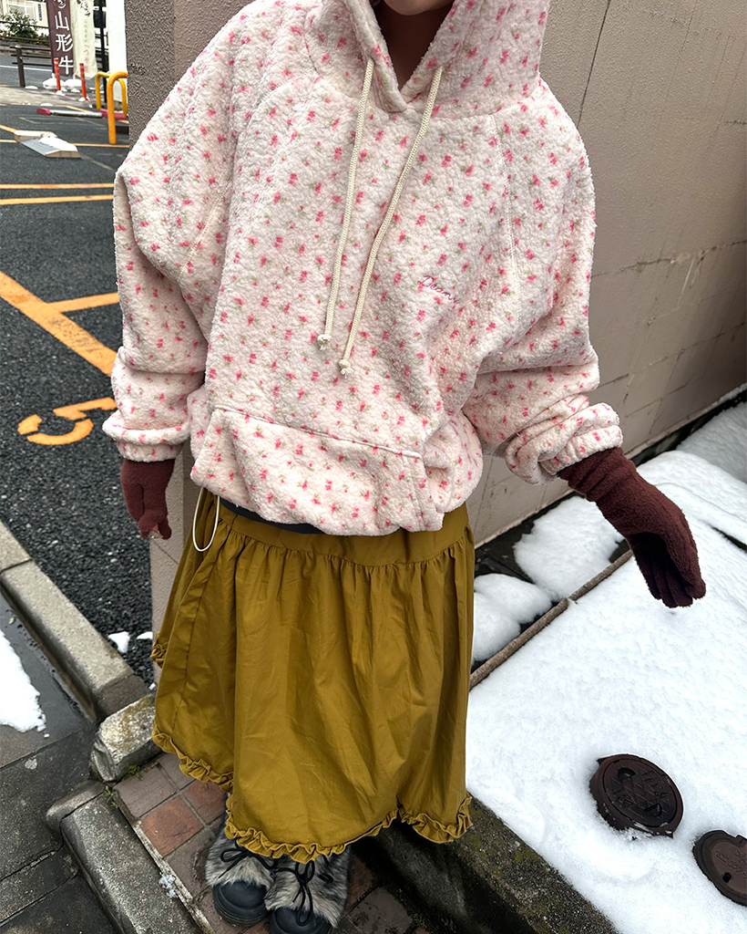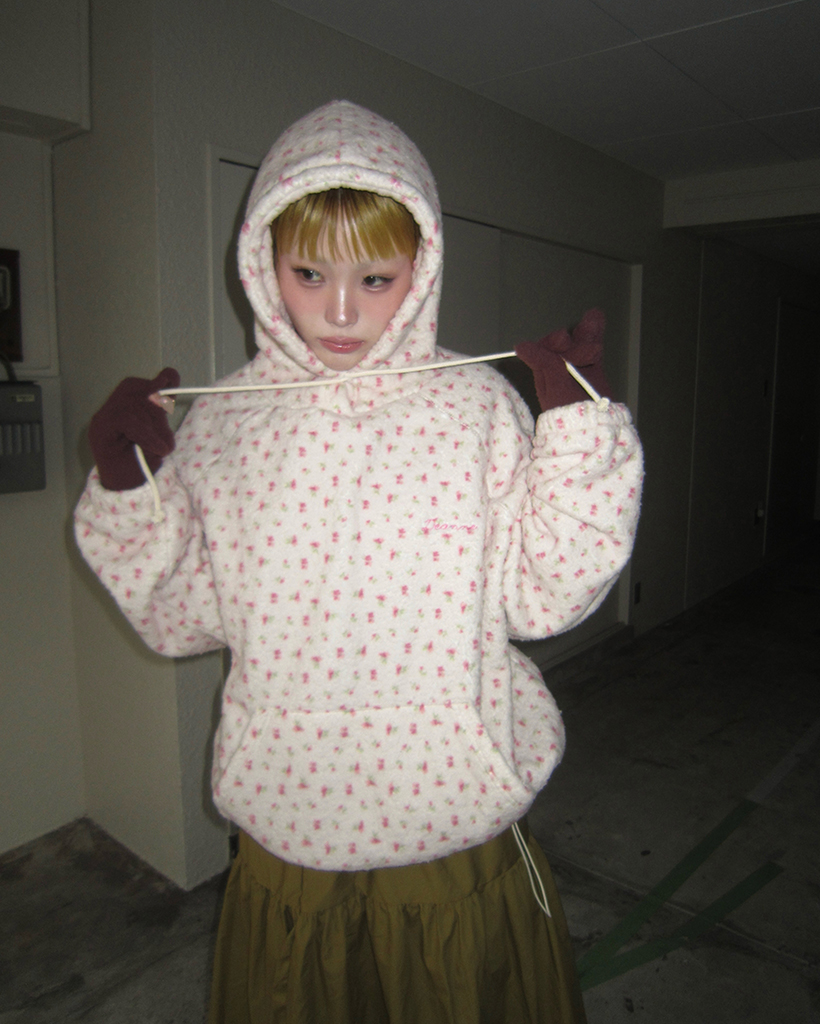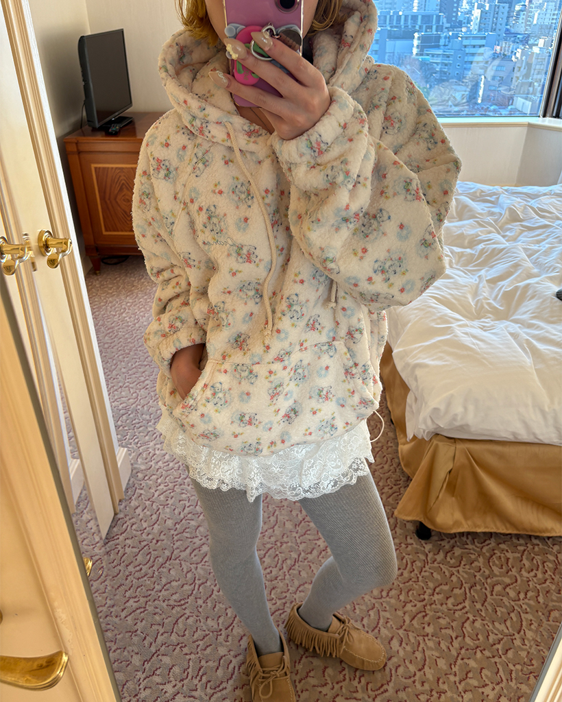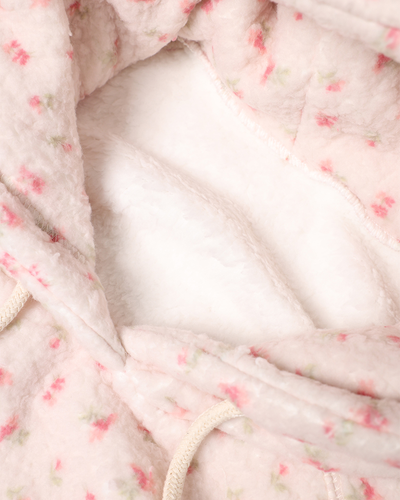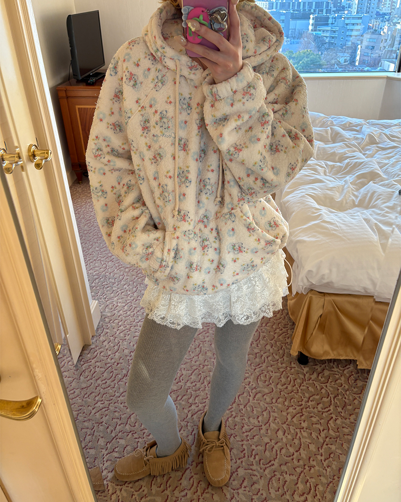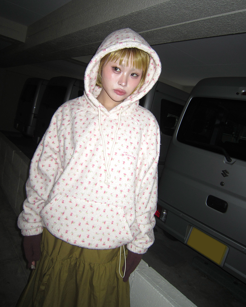 バストステッチラブリーパターンフリースパーカー