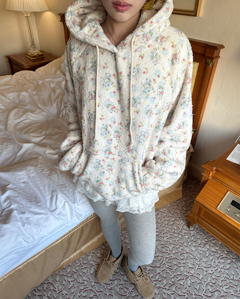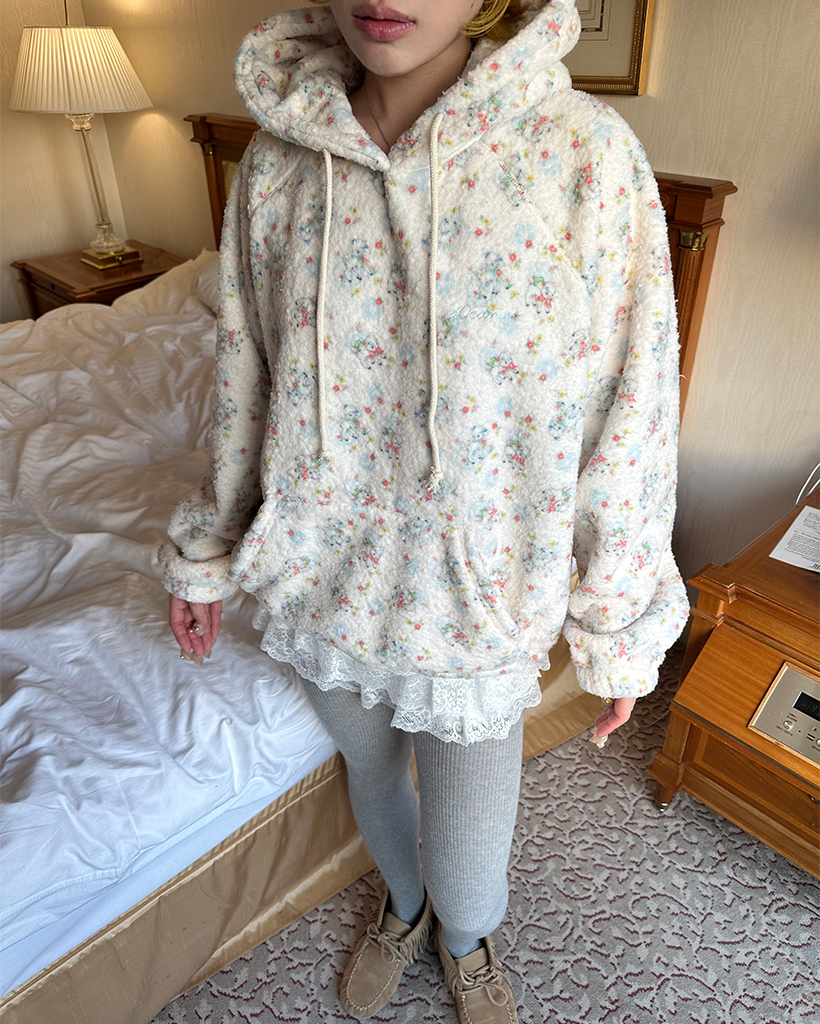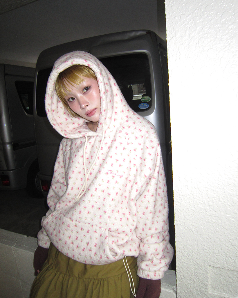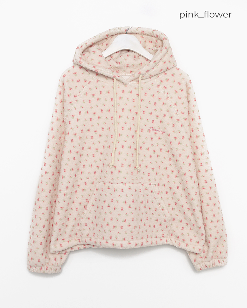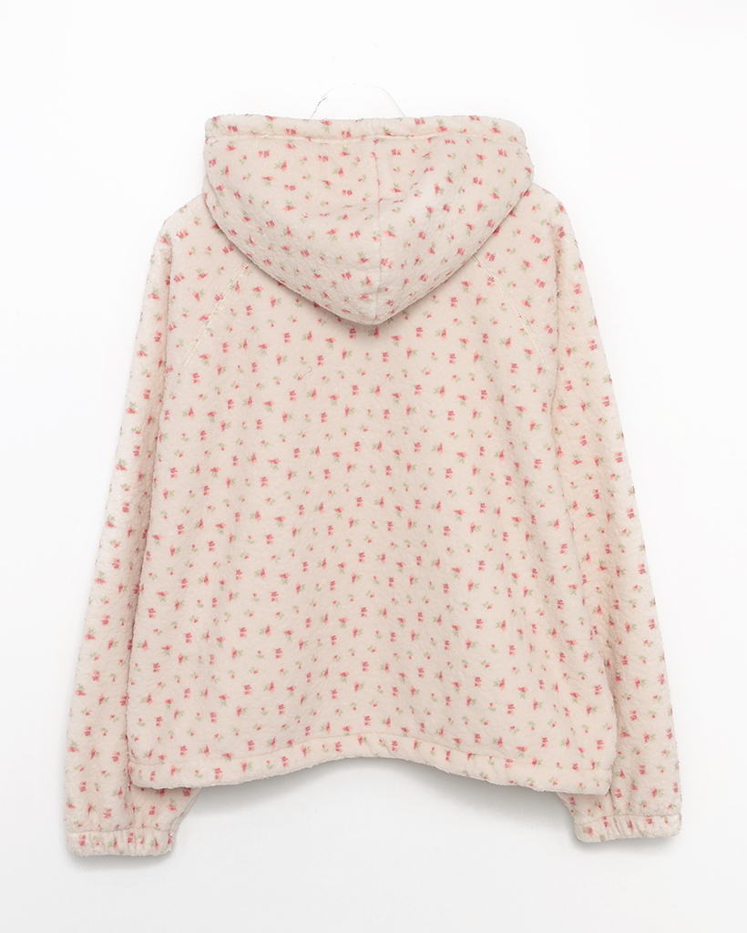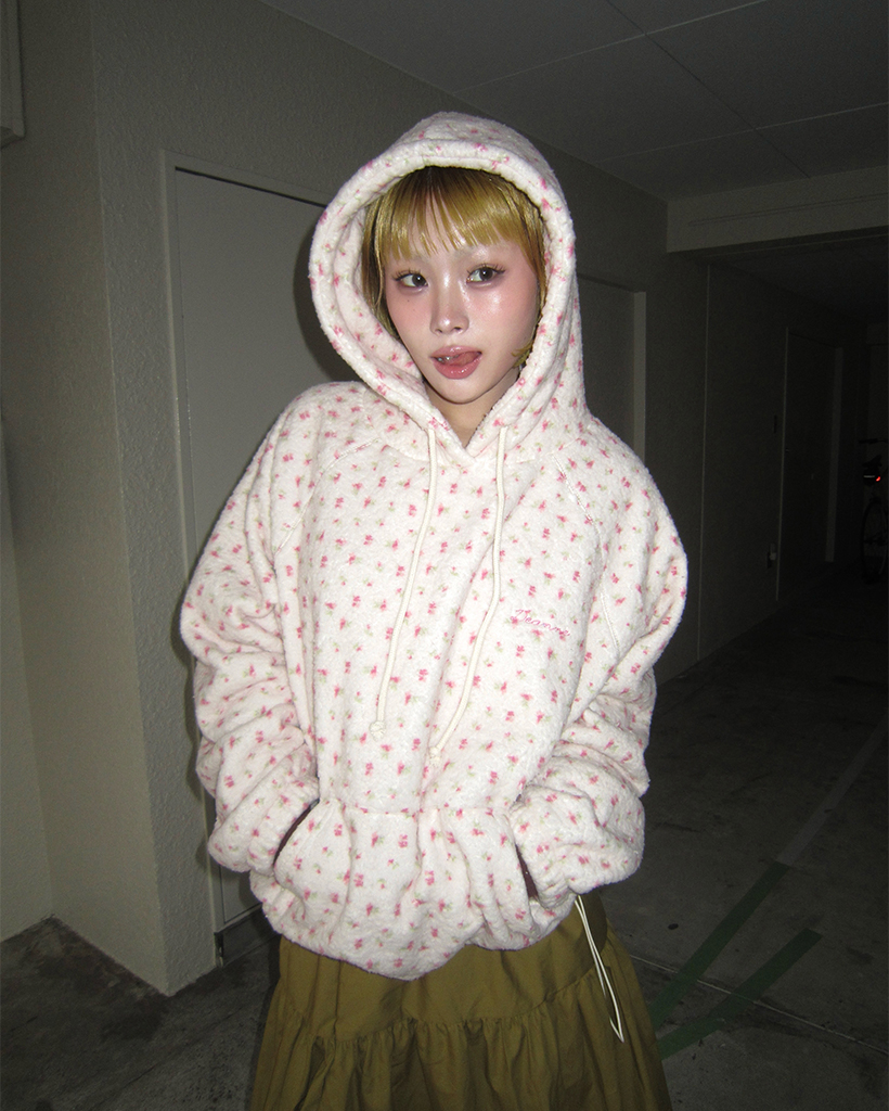 バストステッチラブリーパターンフリースパーカー