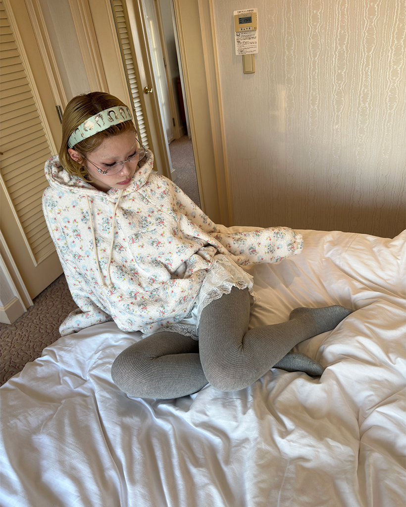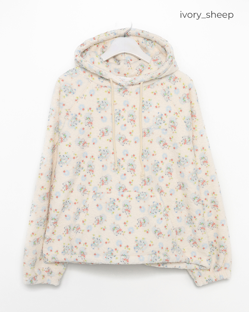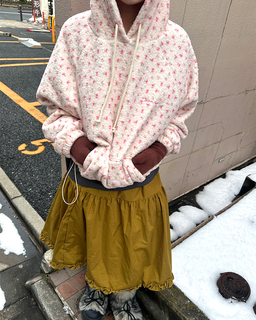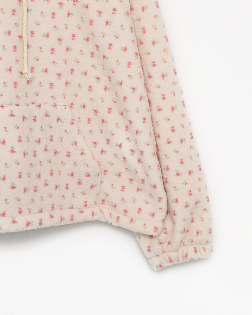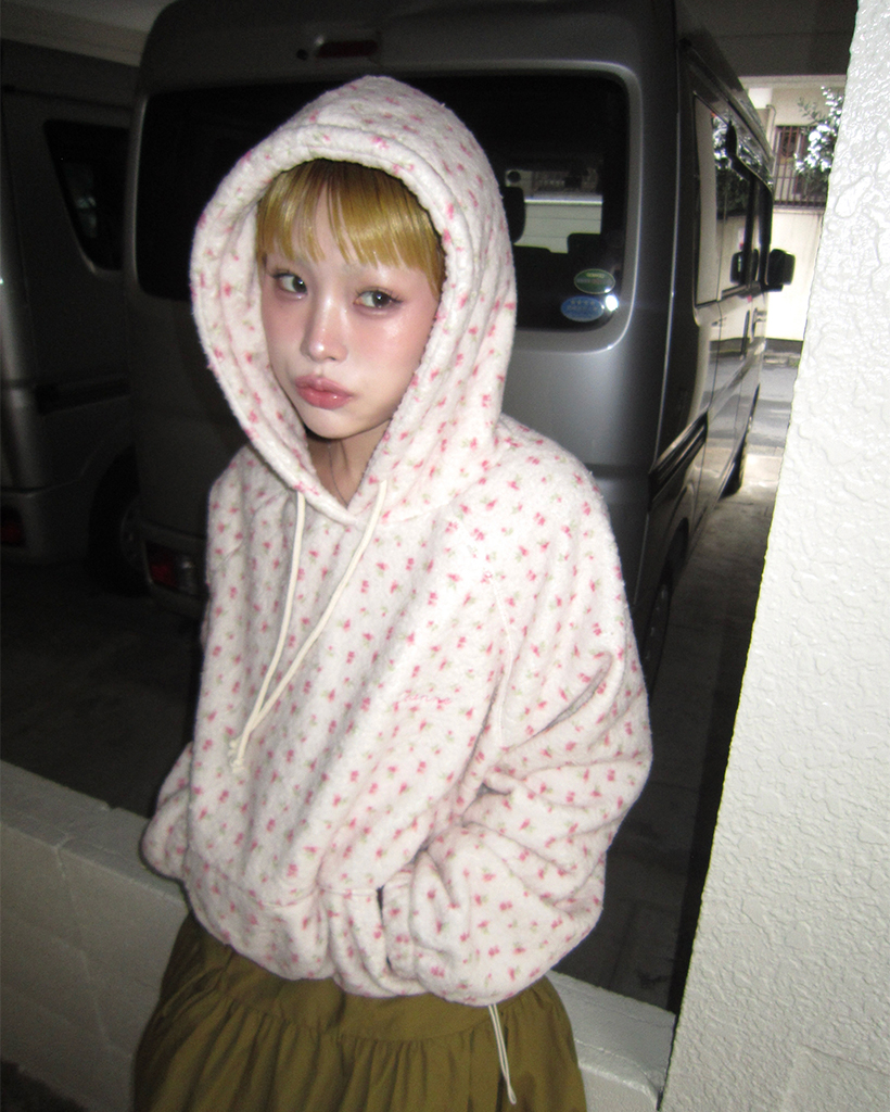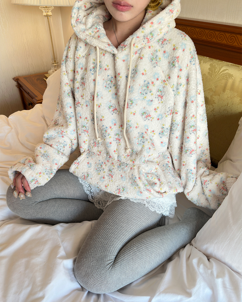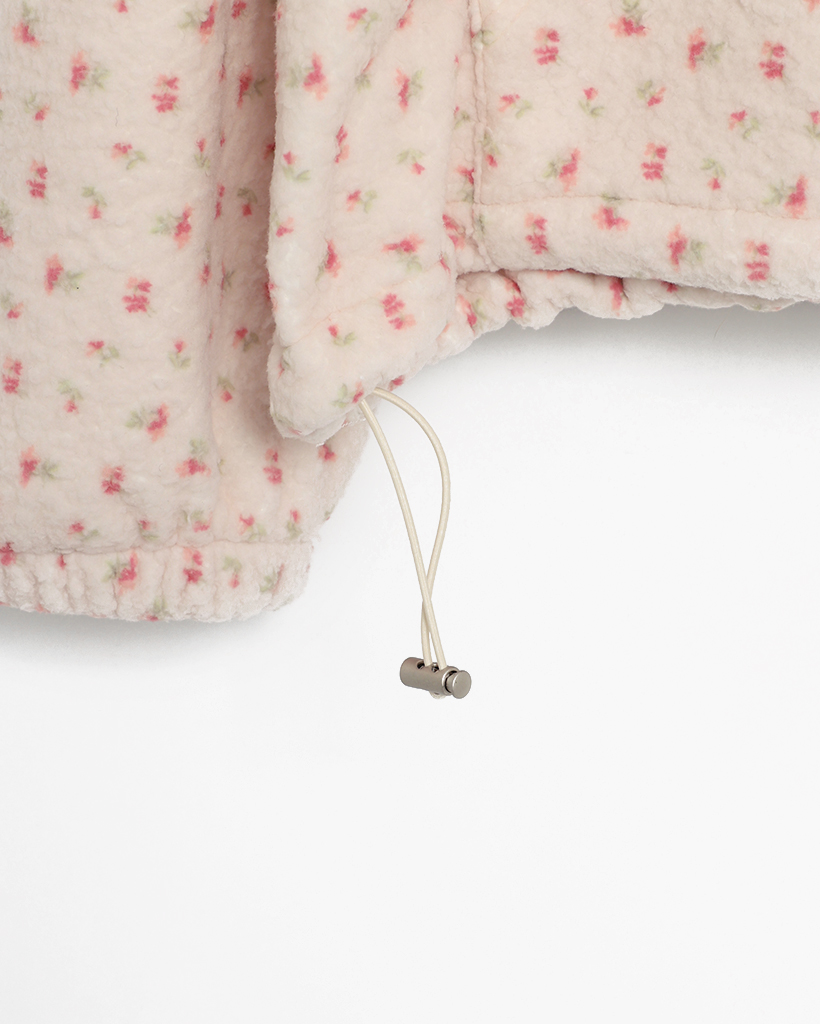 バストステッチラブリーパターンフリースパーカー