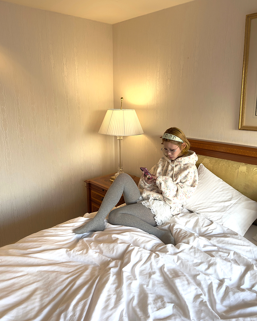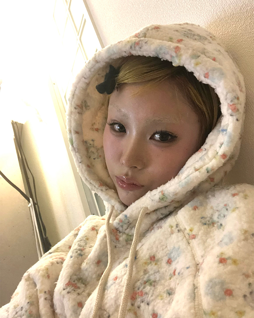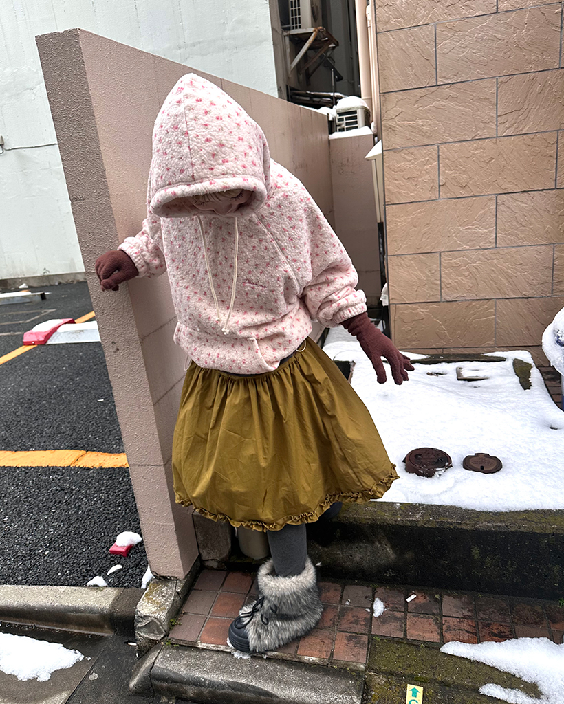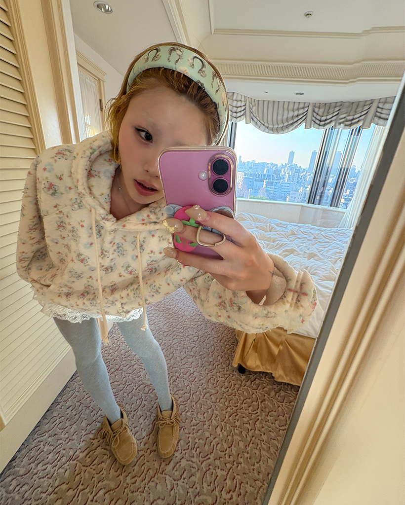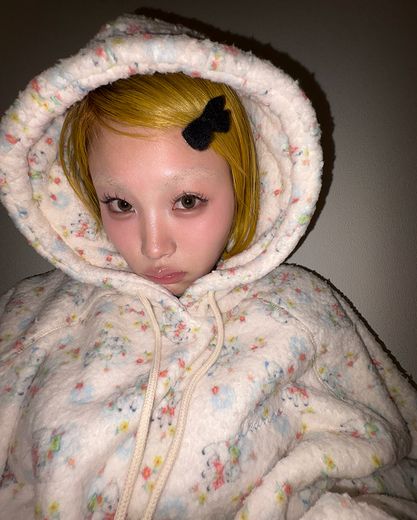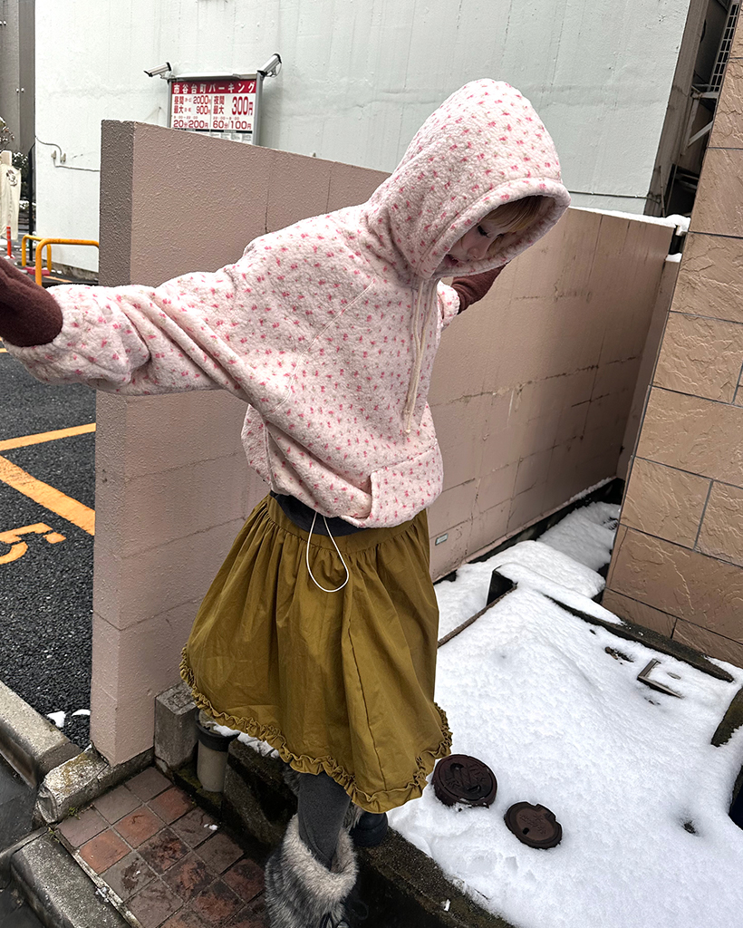 バストステッチラブリーパターンフリースパーカー