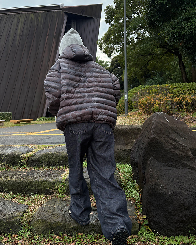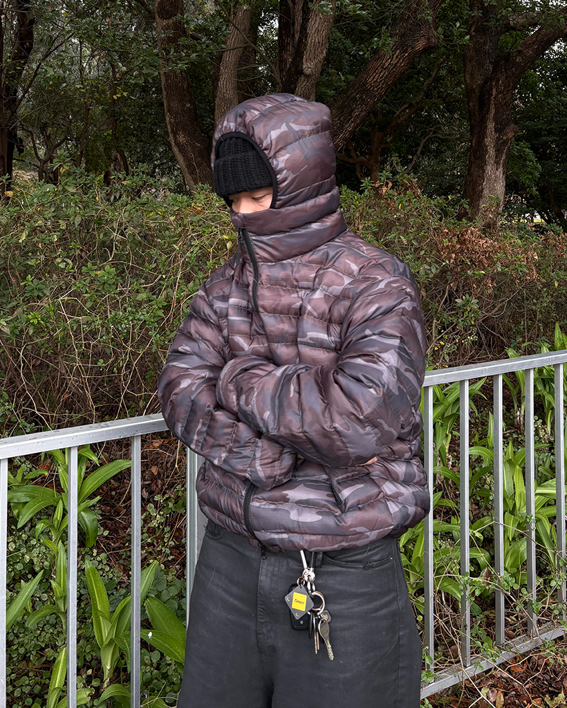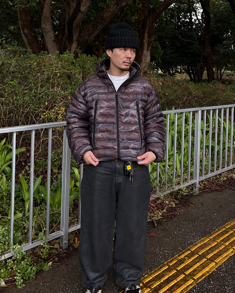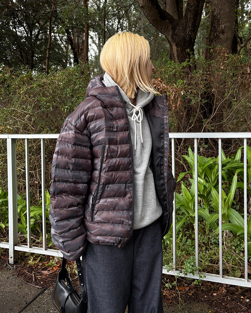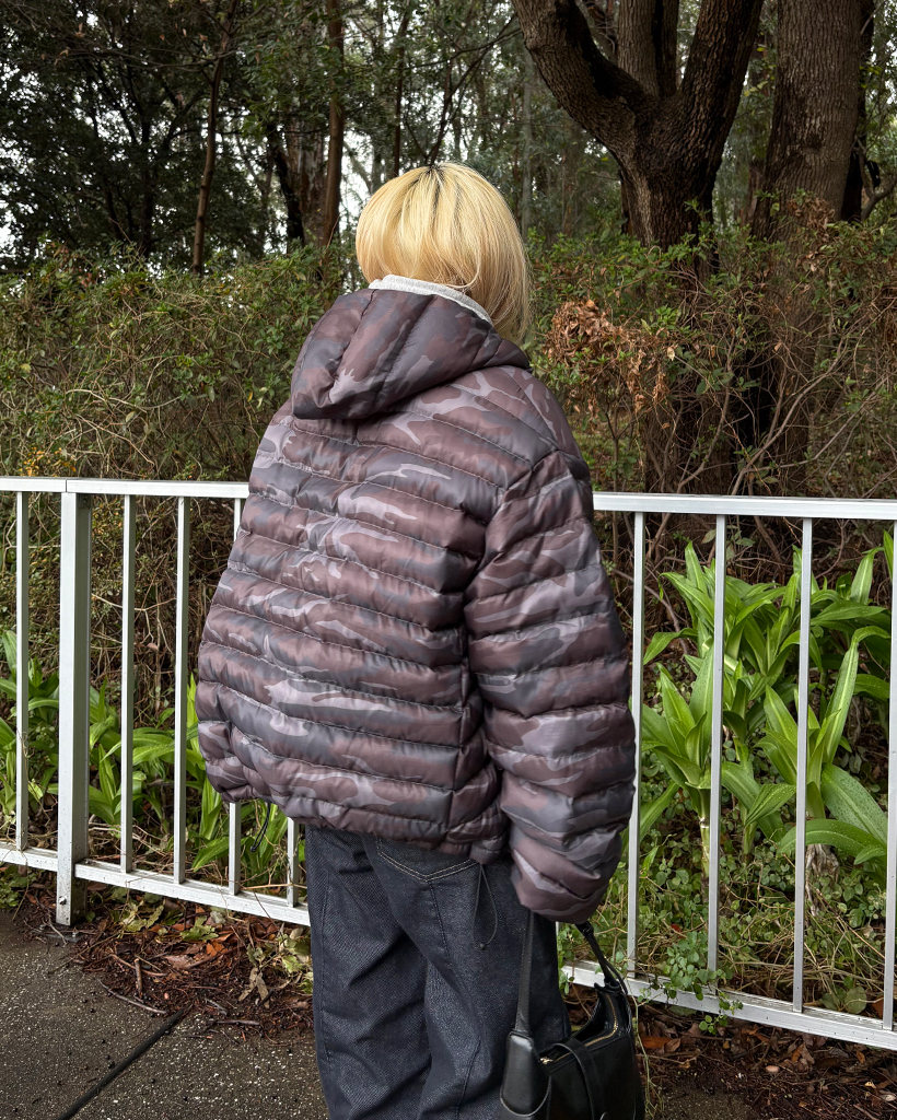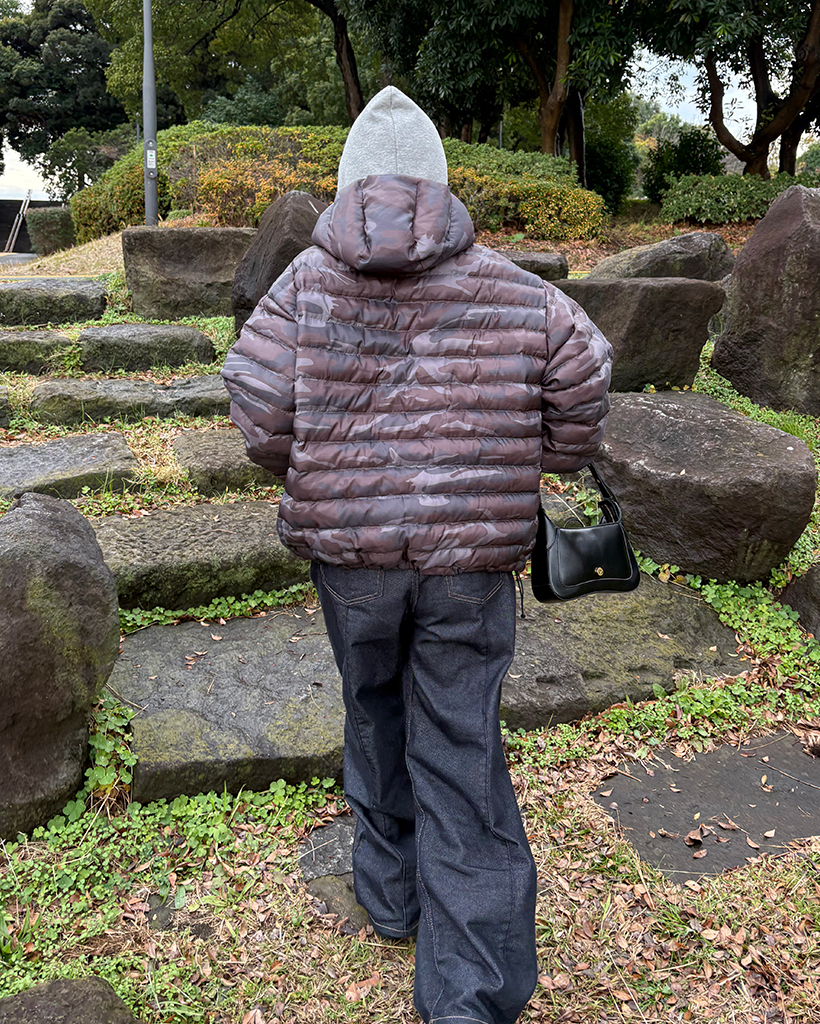 (ユニセックス)ワイドポケットカモフラウェイロンダウンジャケット
