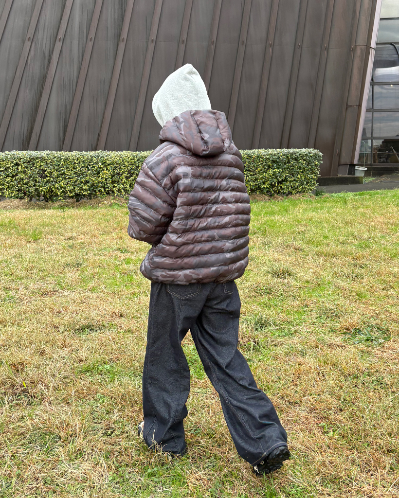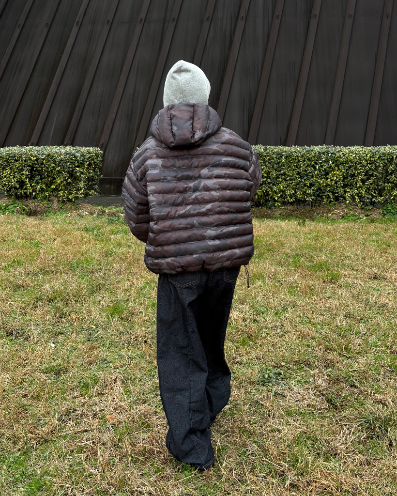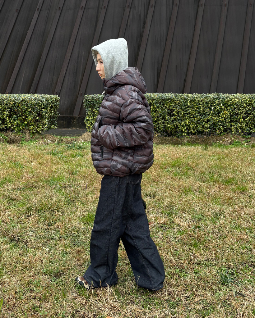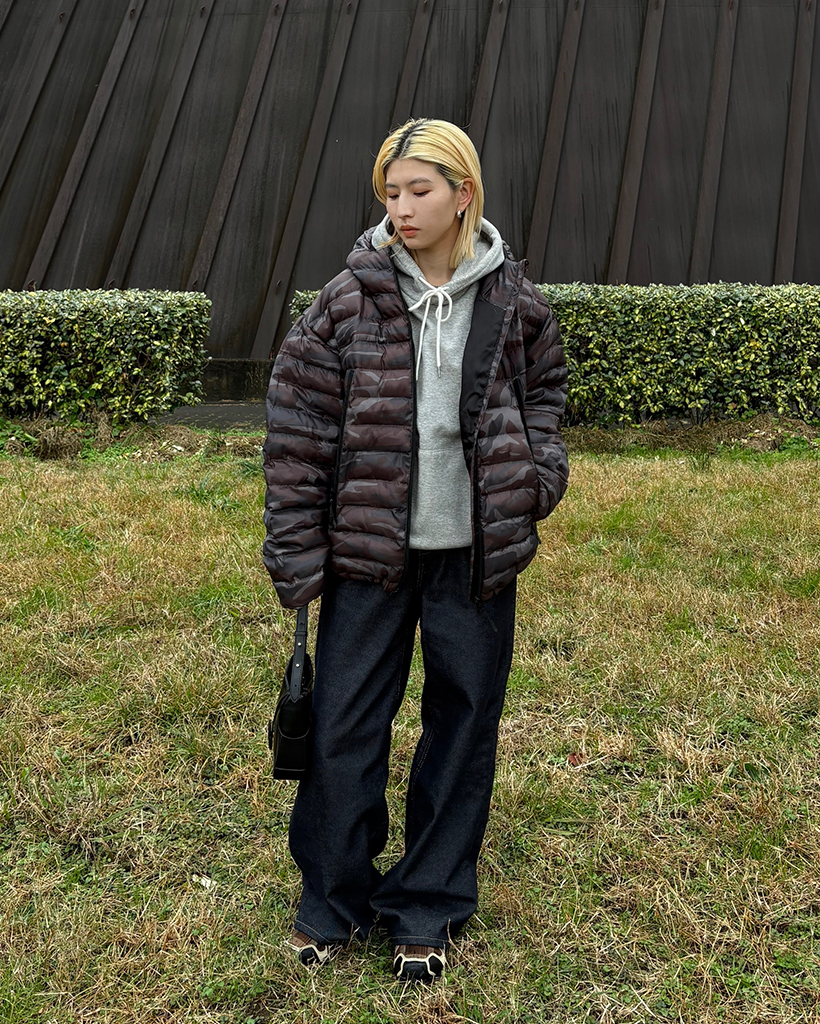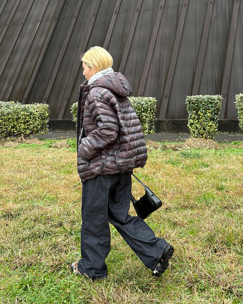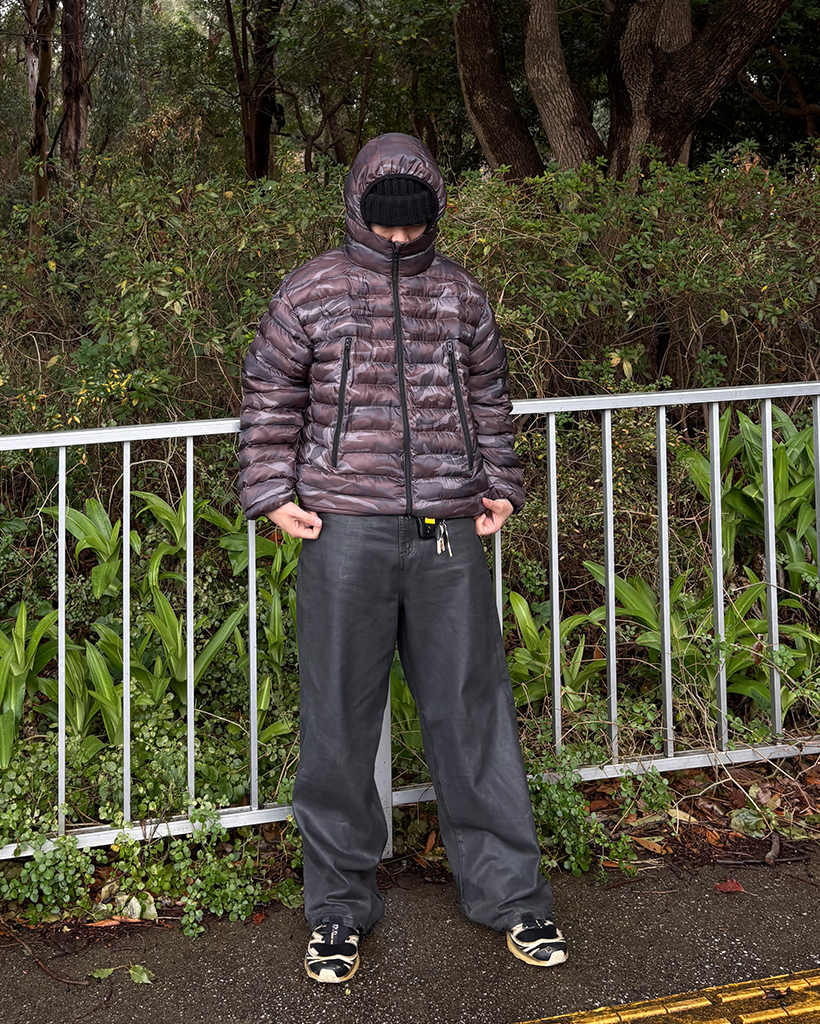 (ユニセックス)ワイドポケットカモフラウェイロンダウンジャケット