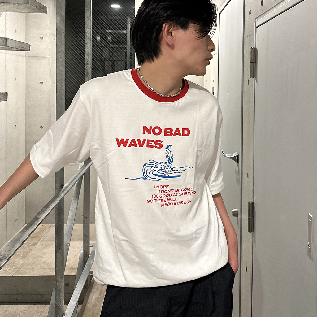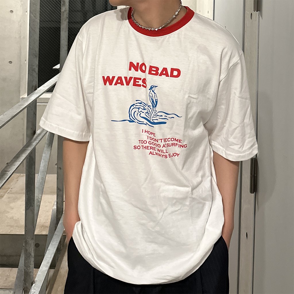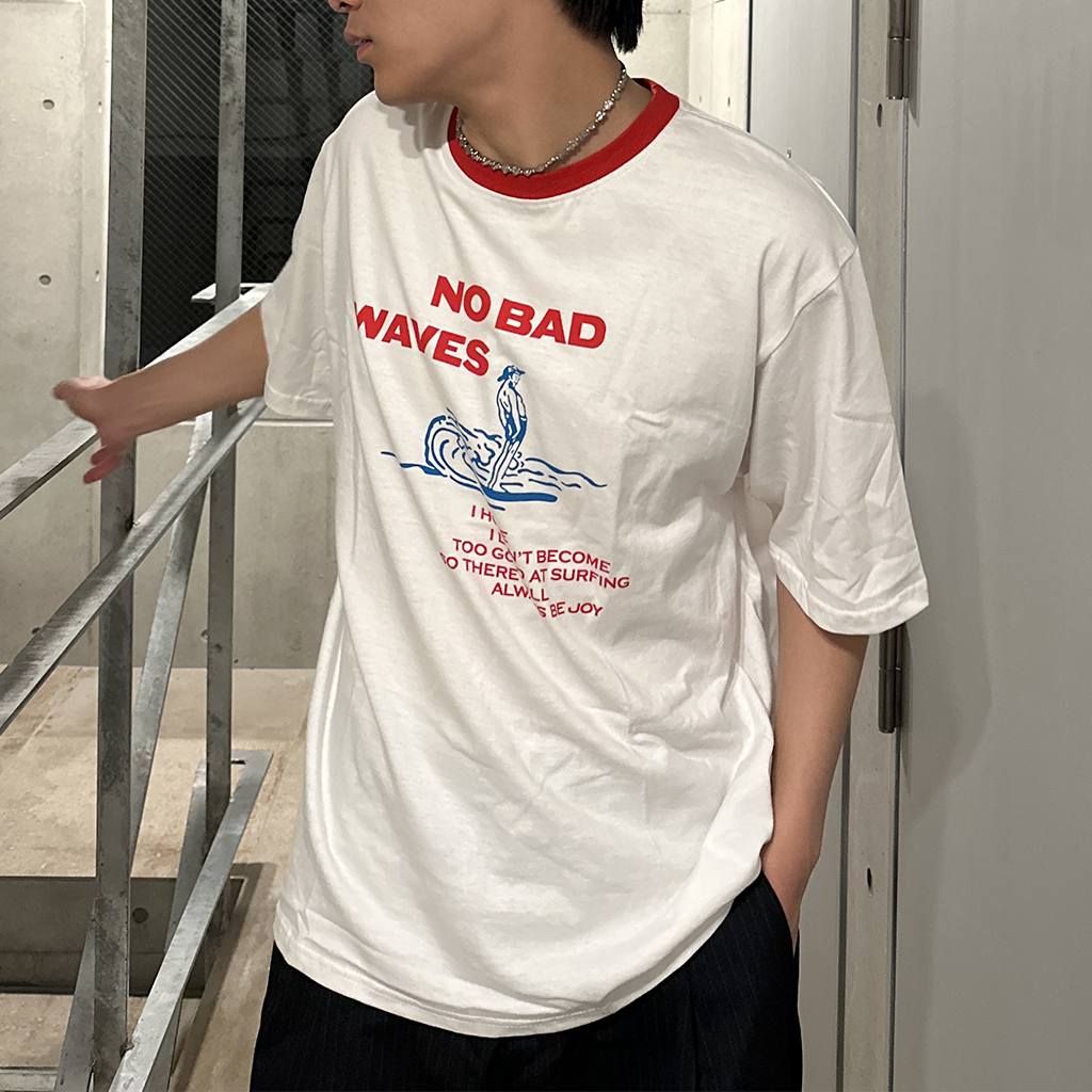 (ユニセックス) グラフィックリンガーネックTシャツ