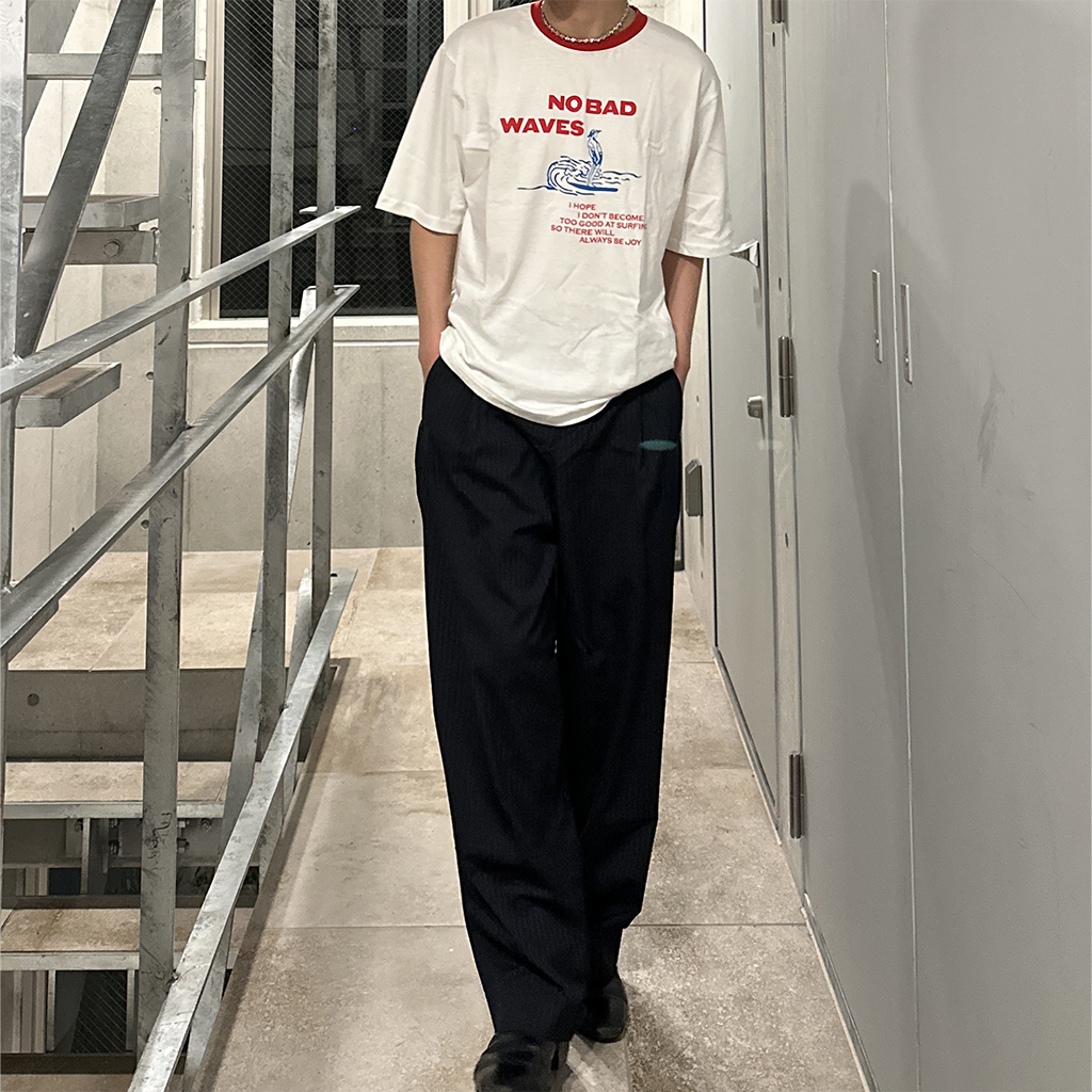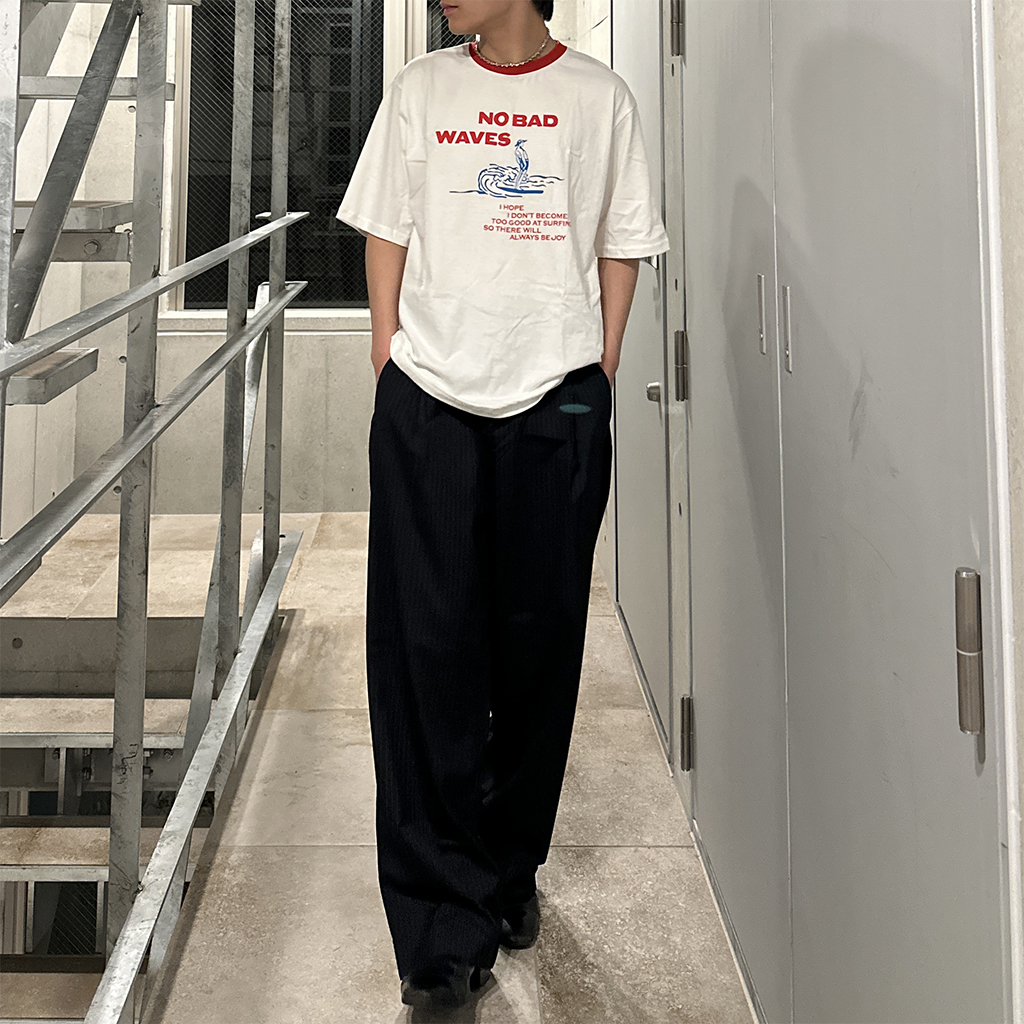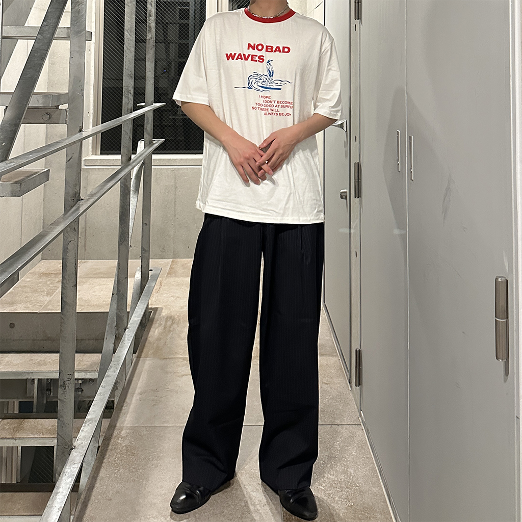 (ユニセックス) グラフィックリンガーネックTシャツ